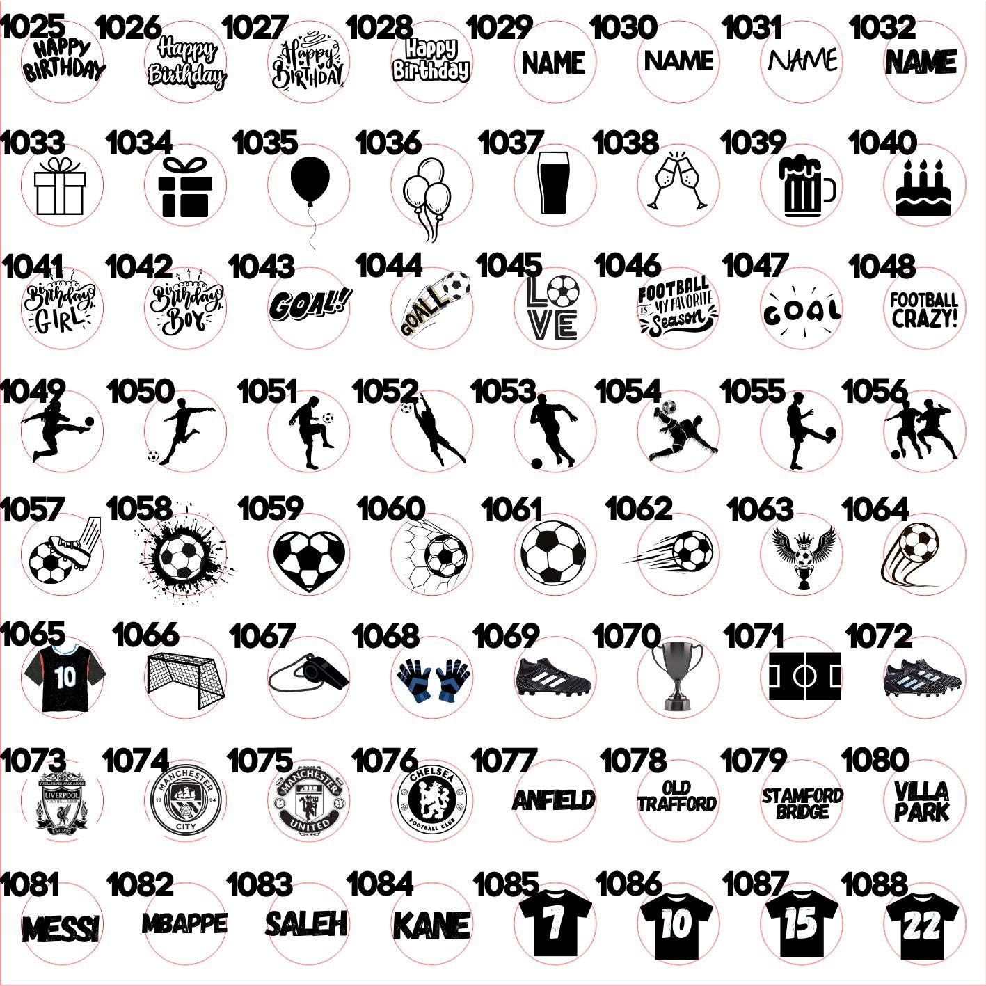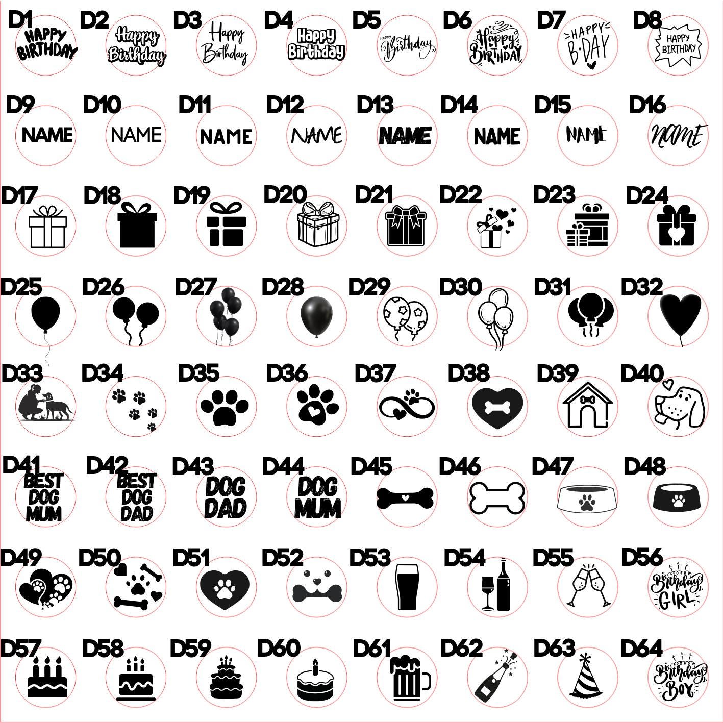 Images shown are to assist but others are available if required.