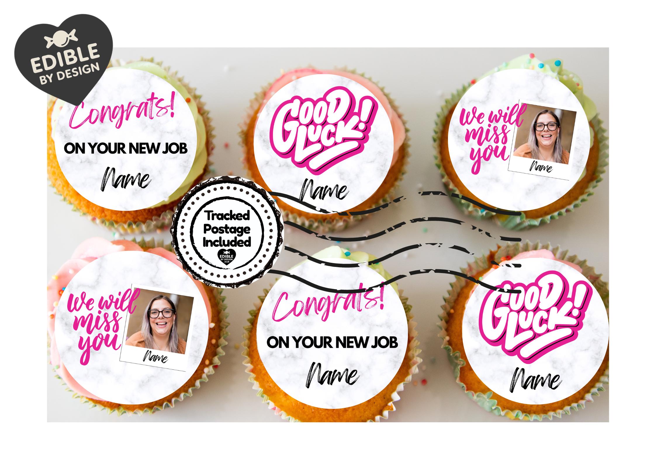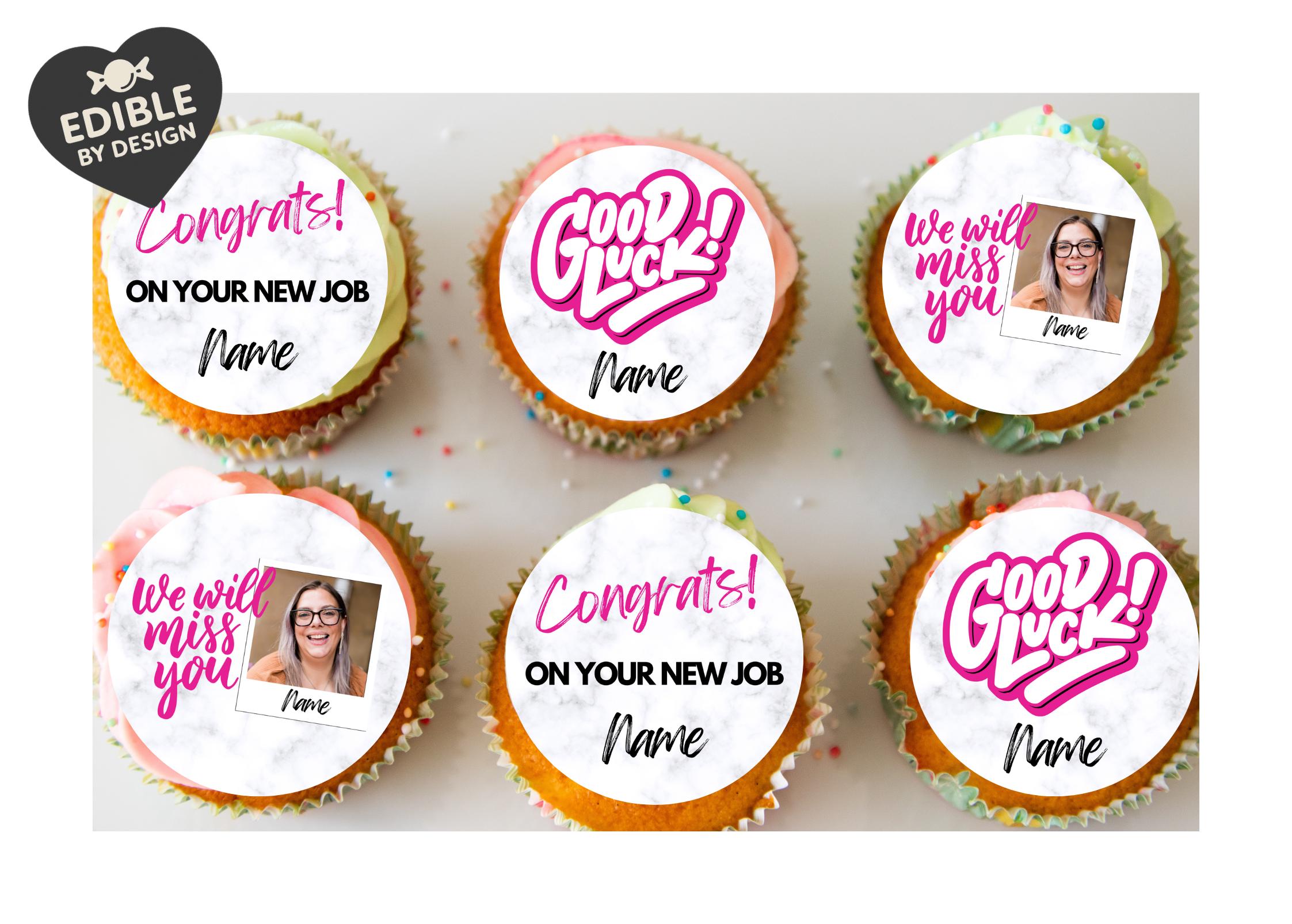 Precut Personalised Cake Toppers with edible ink. Suitable for leaving a job and starting a new one.