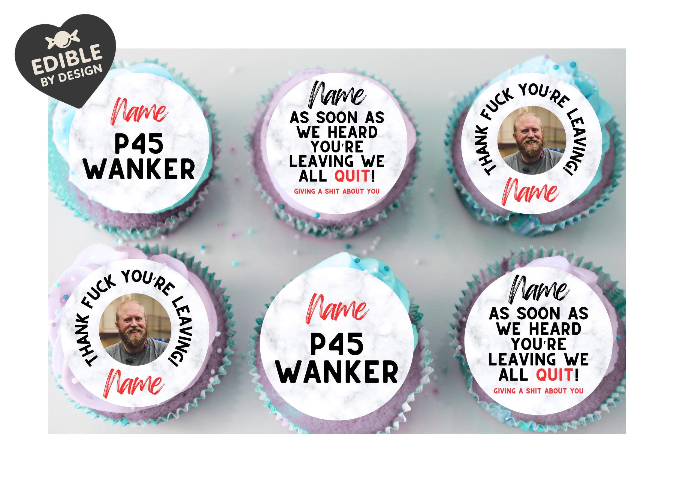 Rude Sweary Version. Suitable for leaving a job and or moving to a new job. Features your choice of name and a photo.