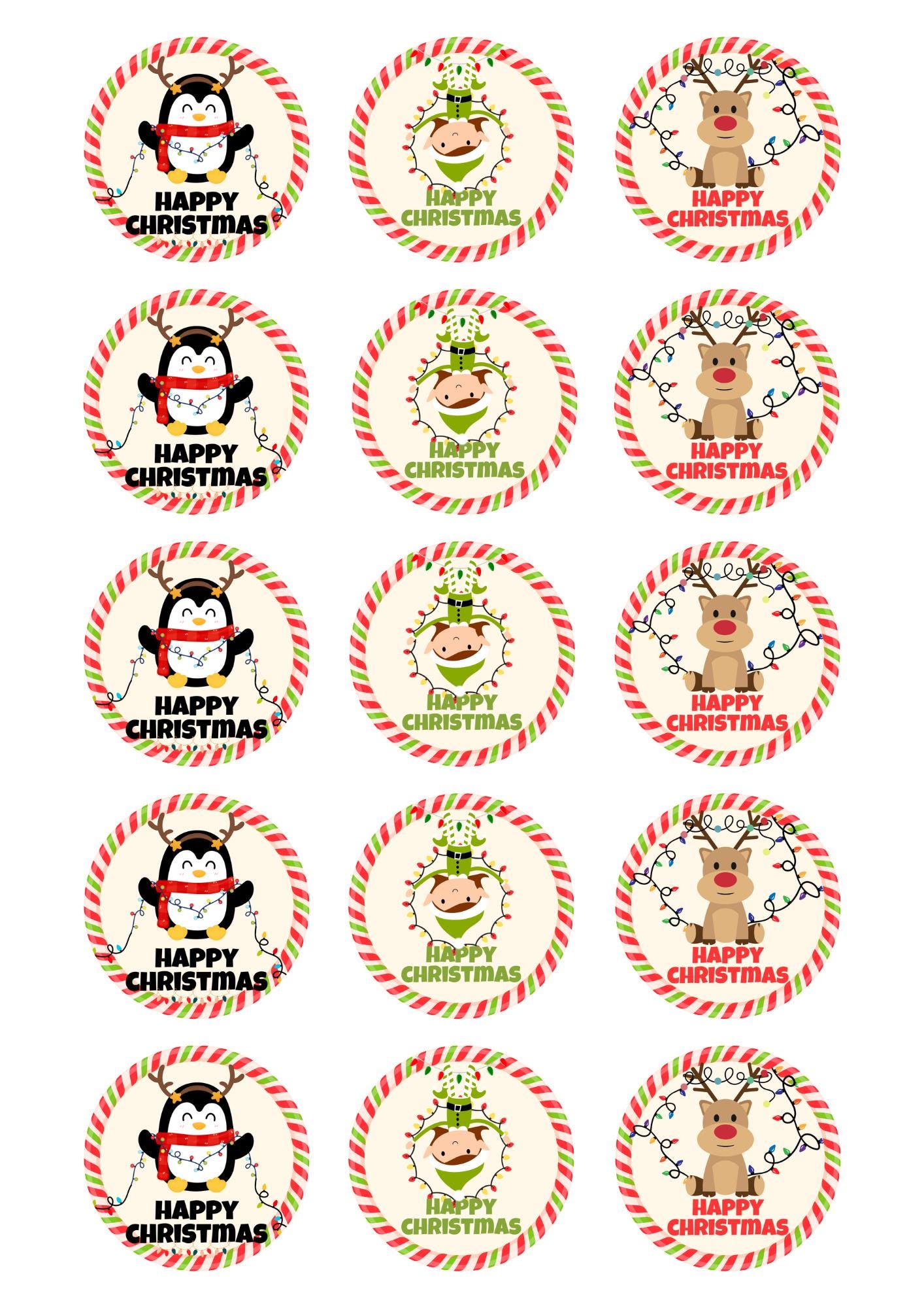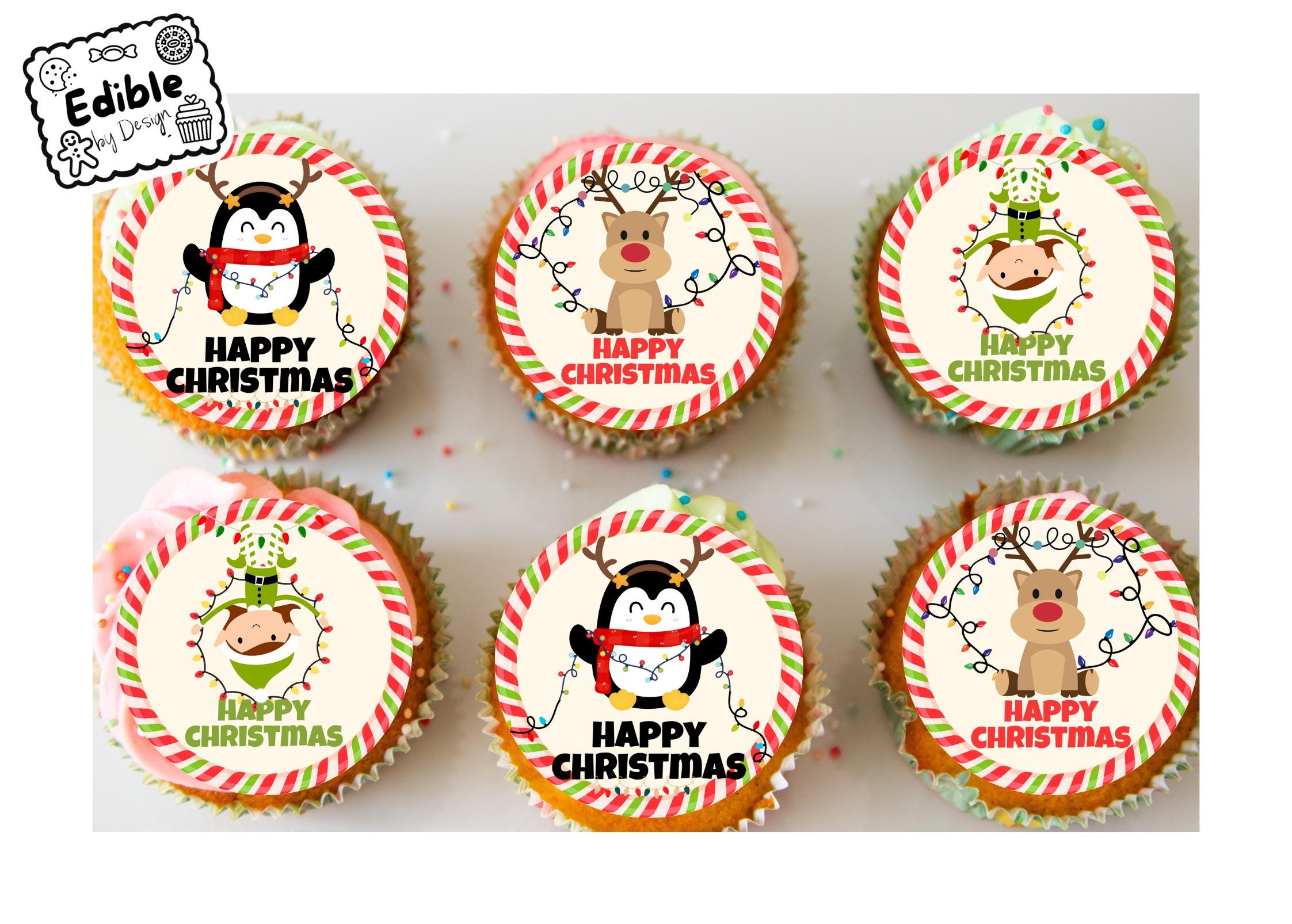 Cute Fun Theme Festive Cupcakes Toppers - additional names or text can be added.