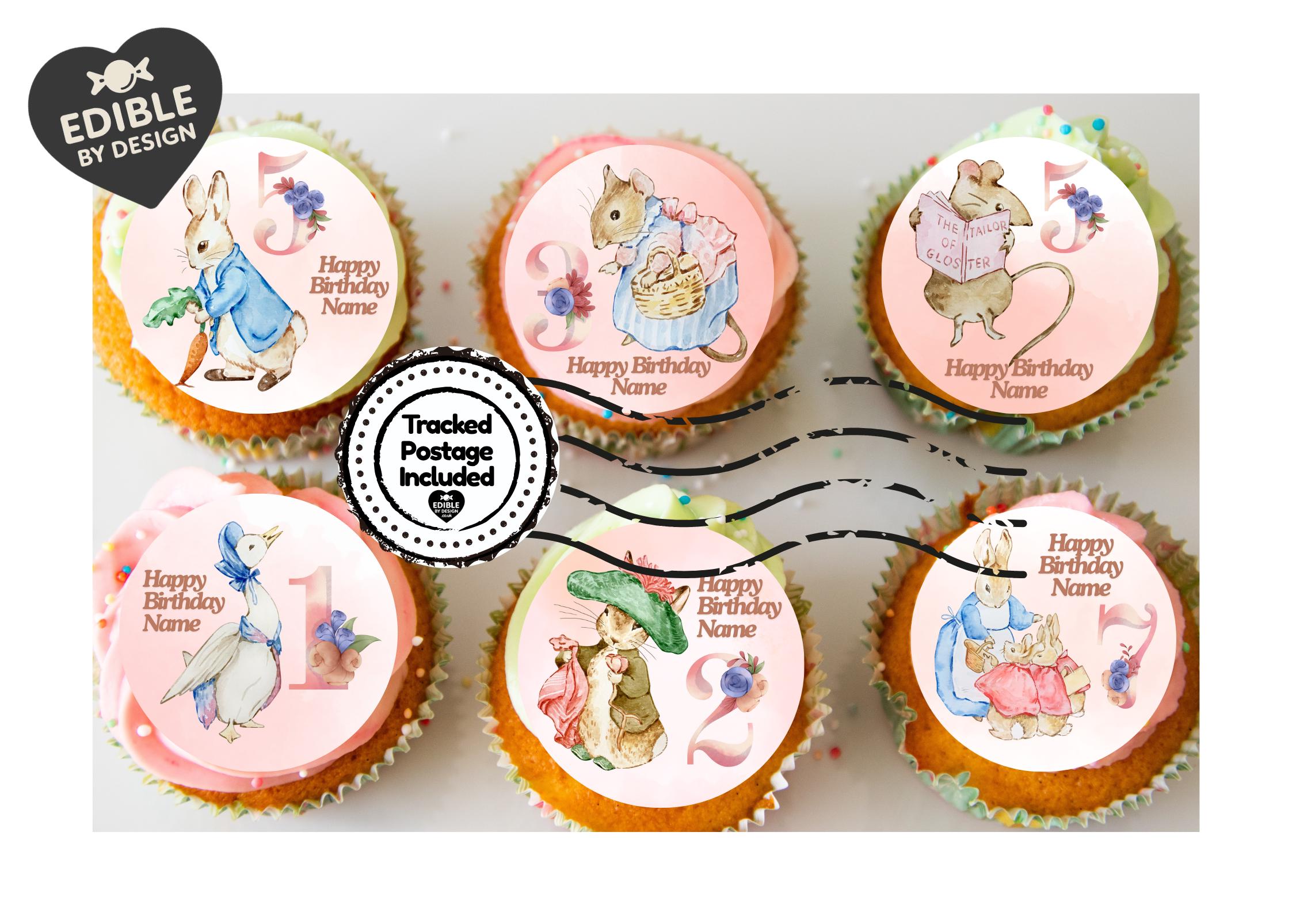 Precut Cake Toppers with edible ink. Super Cute Pink Beatrix Potter Peter Rabbit and Friends theme. Also available matching Invitations, Stickers, Foil Balloon and complete party pack.
