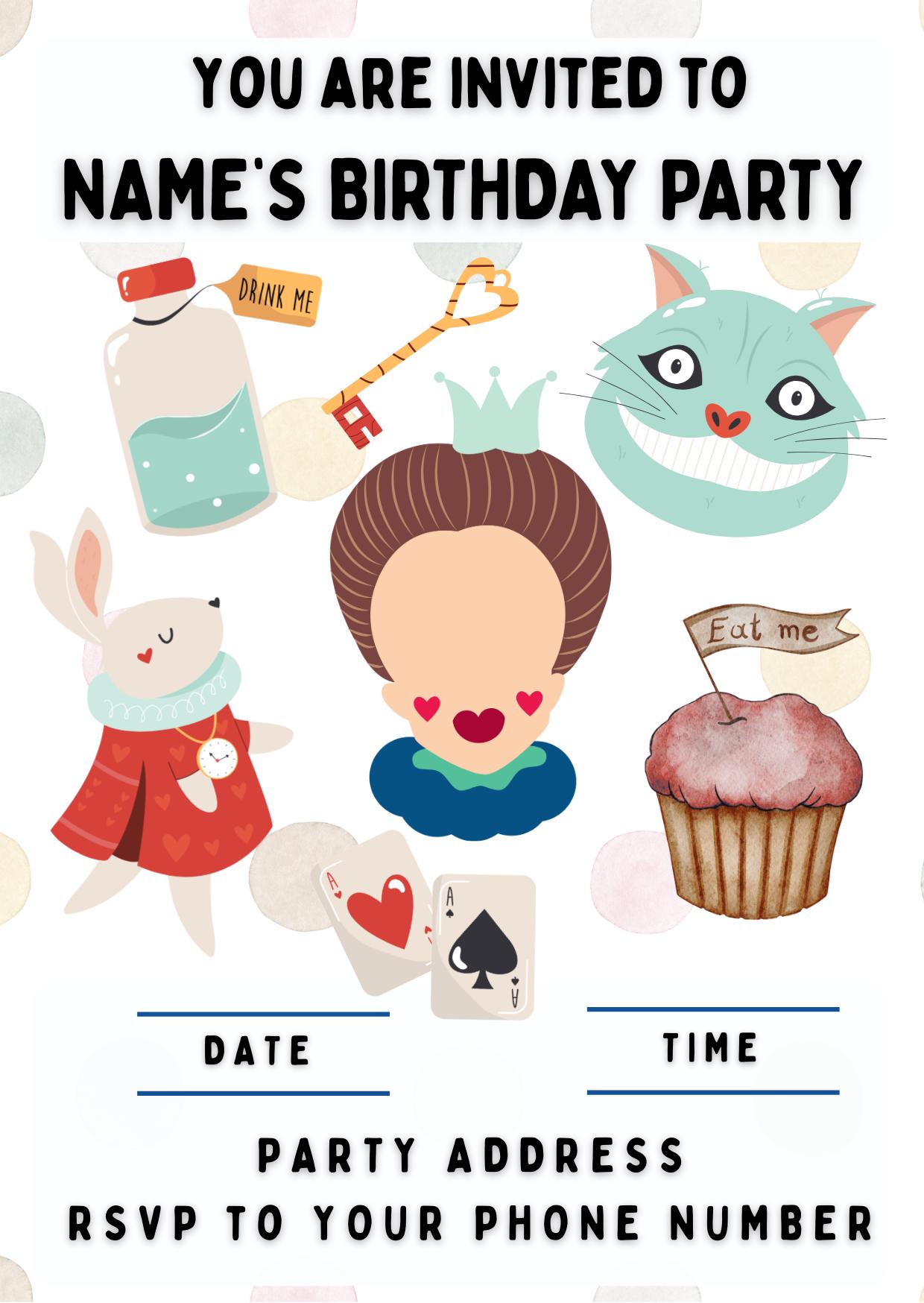Super Cute Alice in Wonderland theme. These include your choice of name and age.