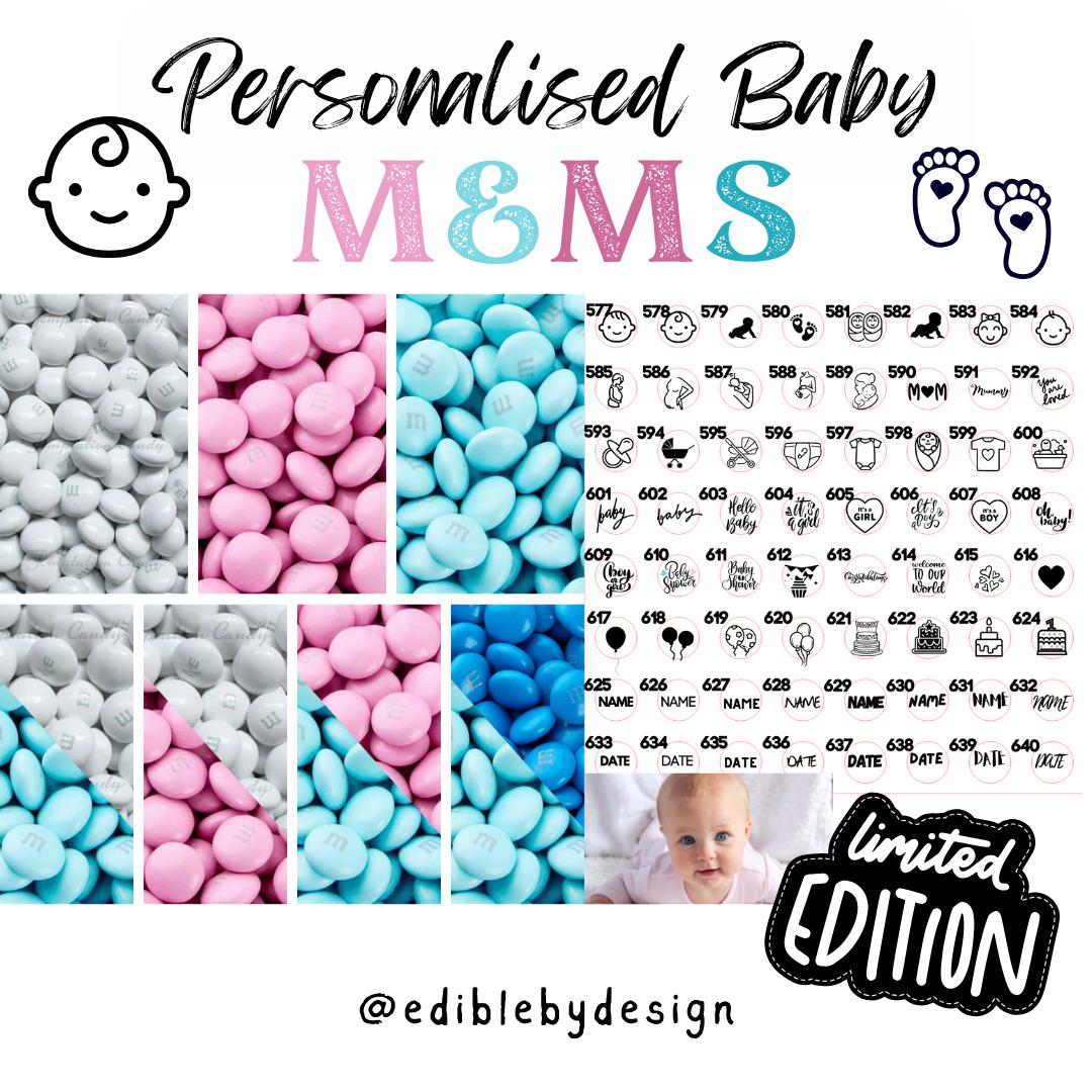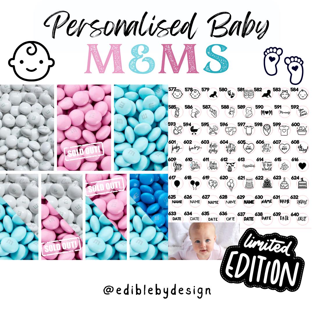 Chocolate M&Ms personalised with edible ink your choice of images and text. Choose up to 8 images/text.