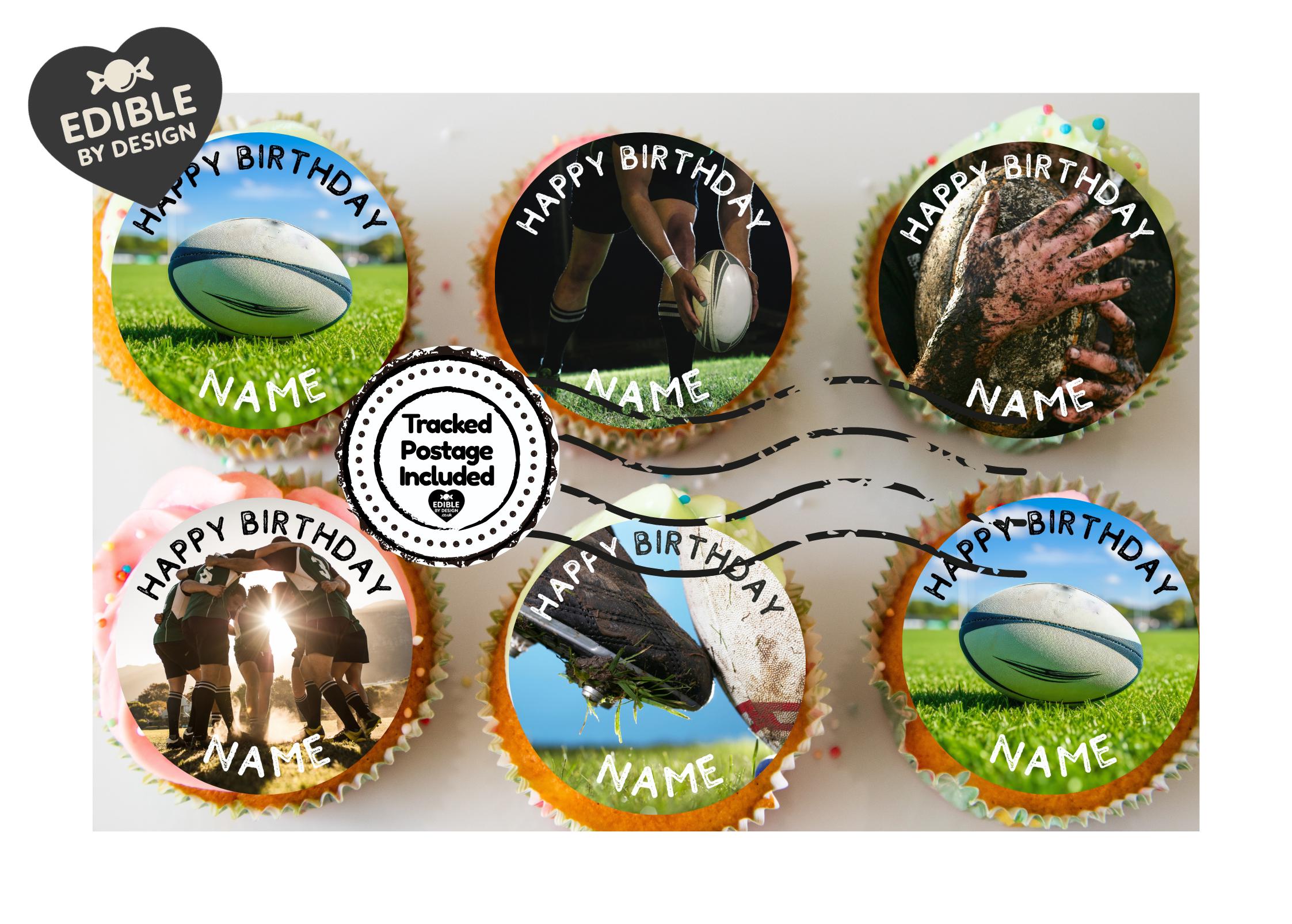 Rugby Football theme Cupcake Toppers. Perfect for decoration of cakes.