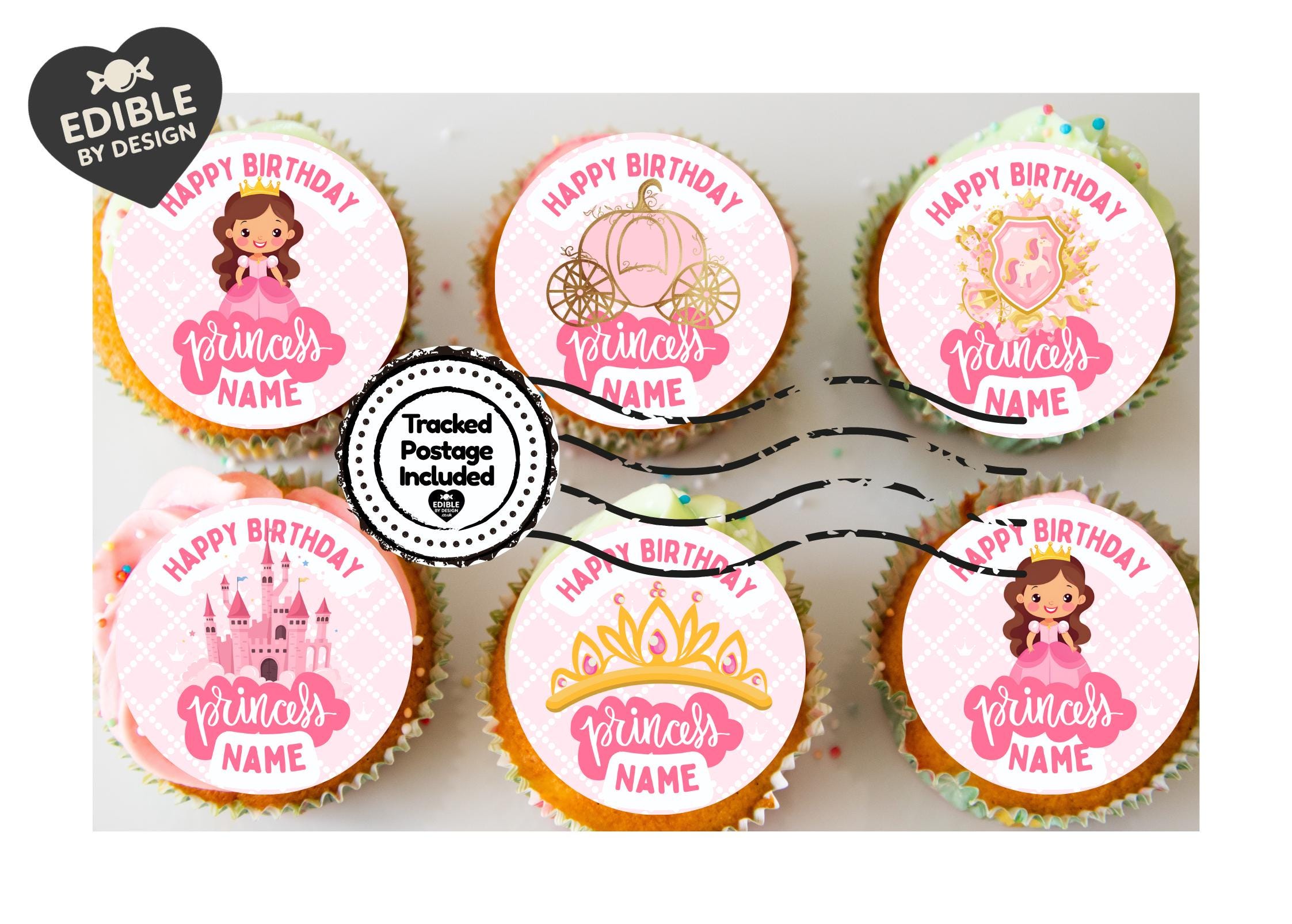 These toppers are personalised with the name and age of your choice.