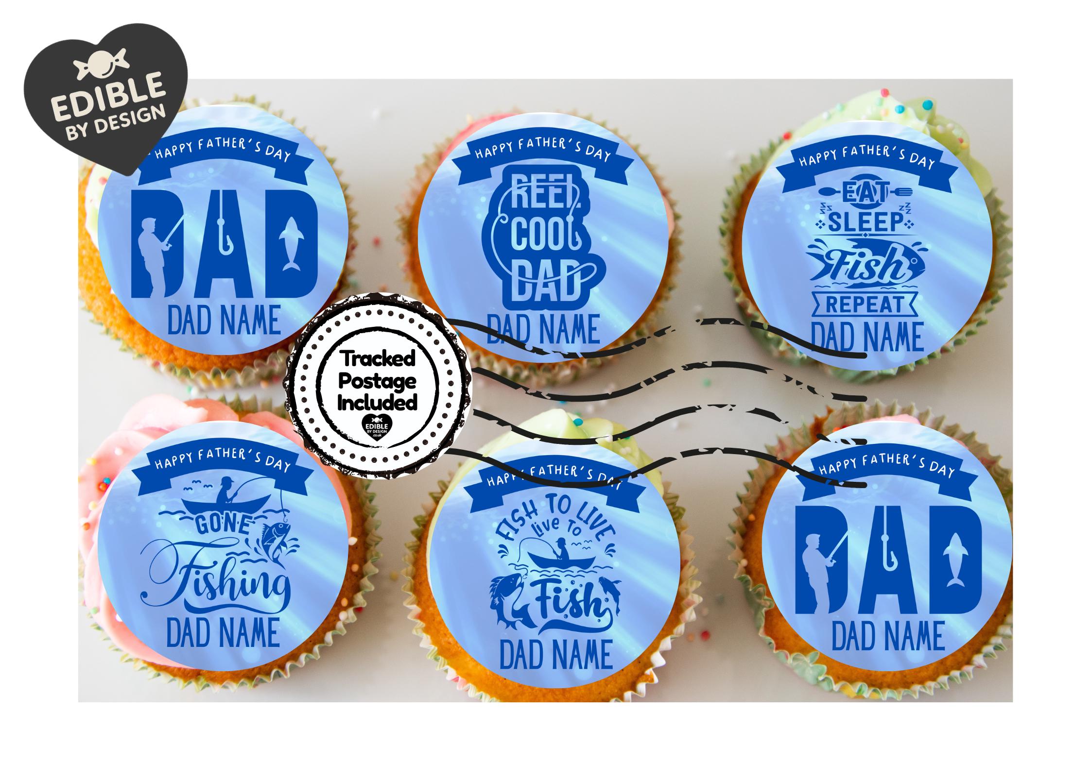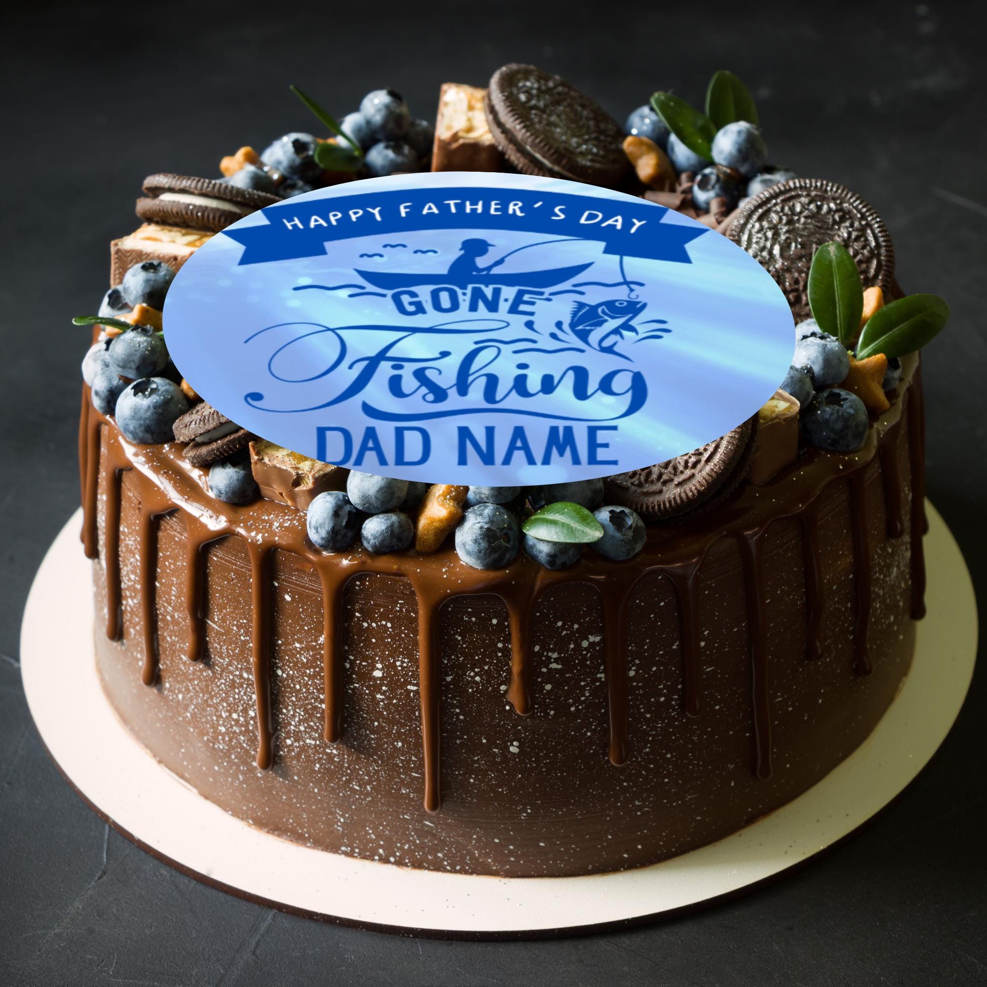 Cake Toppers printed with edible ink. Fishing theme cake toppers for perfect fathers day cake decoration. These include your choice of name.