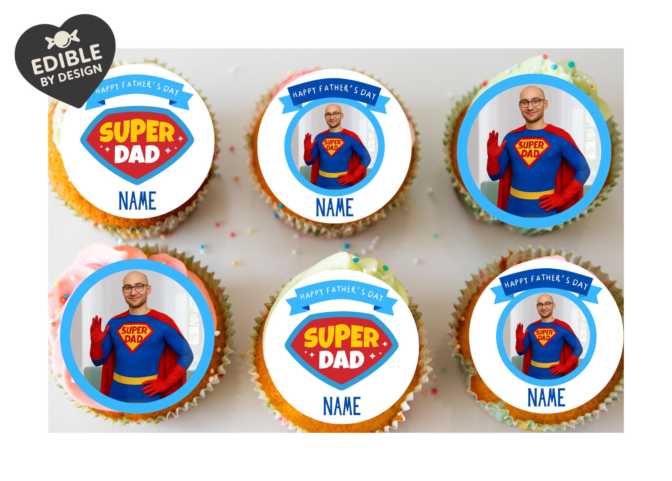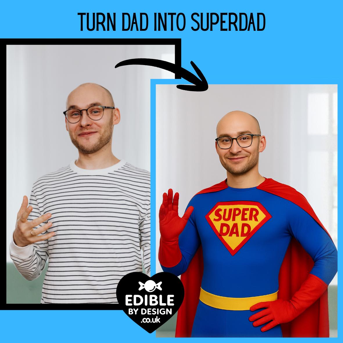Superdad Fathers Day theme, personalised with your choice of name. Send over you photo of Dad and I will turn him into Superdad!