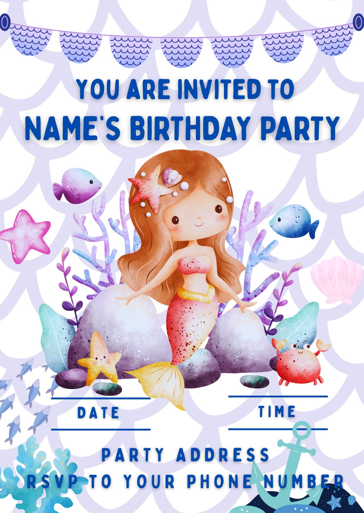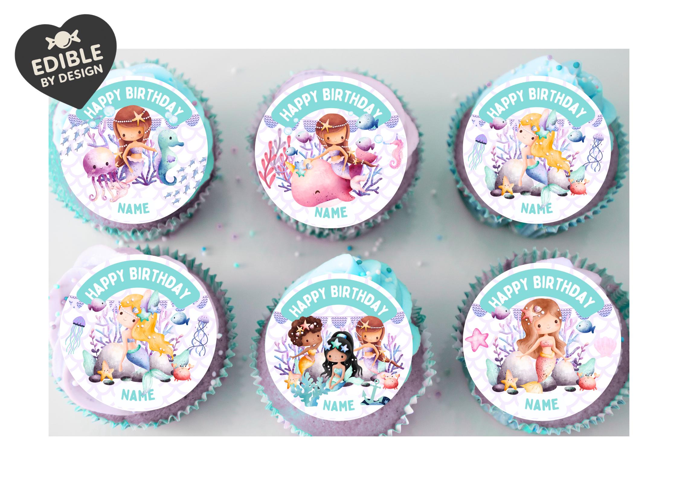 Mermaid Under the Sea Birthday Party Theme Cake Toppers. Features Mermaids, Shells, Fish, Jellyfish, Starfish, Seahorses etc. Personalised with your choice of name and age if required.