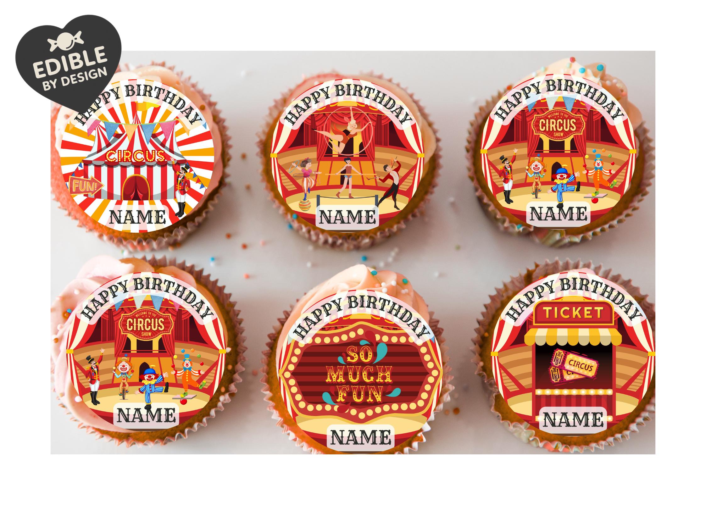 Circus theme Cake Toppers. Featuring Circus Performers, Acrobats, Clowns, Circus Master and Big Top Tent.