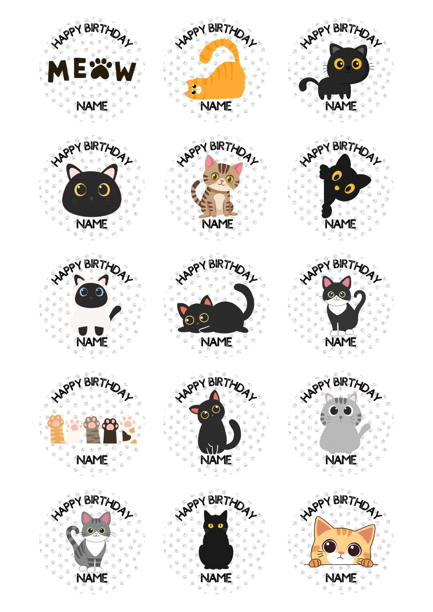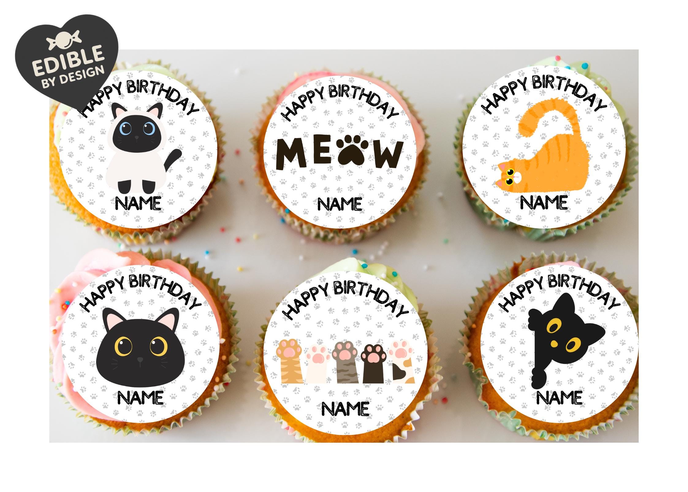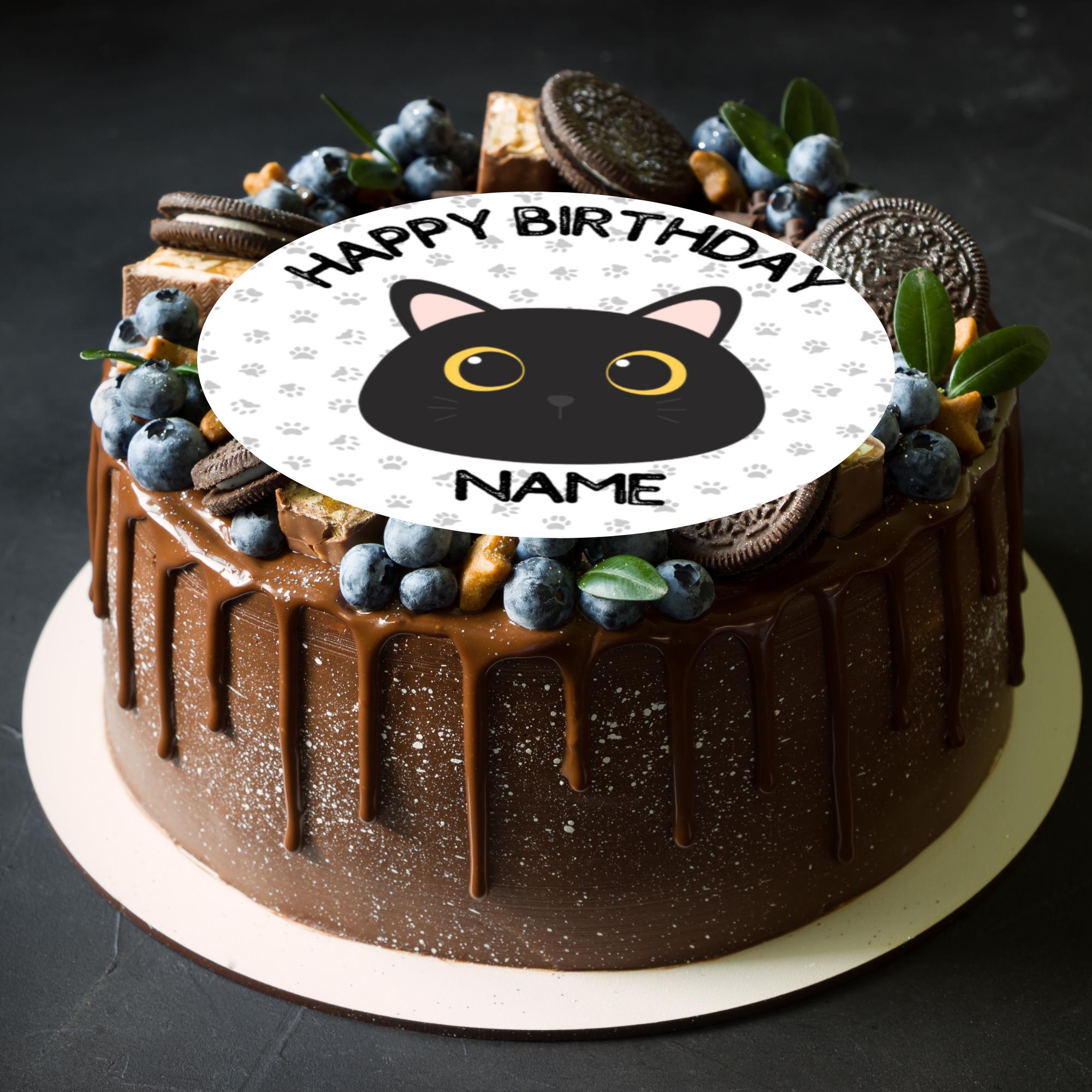 Cute Cat theme cake toppers. Features your choice of name and age.