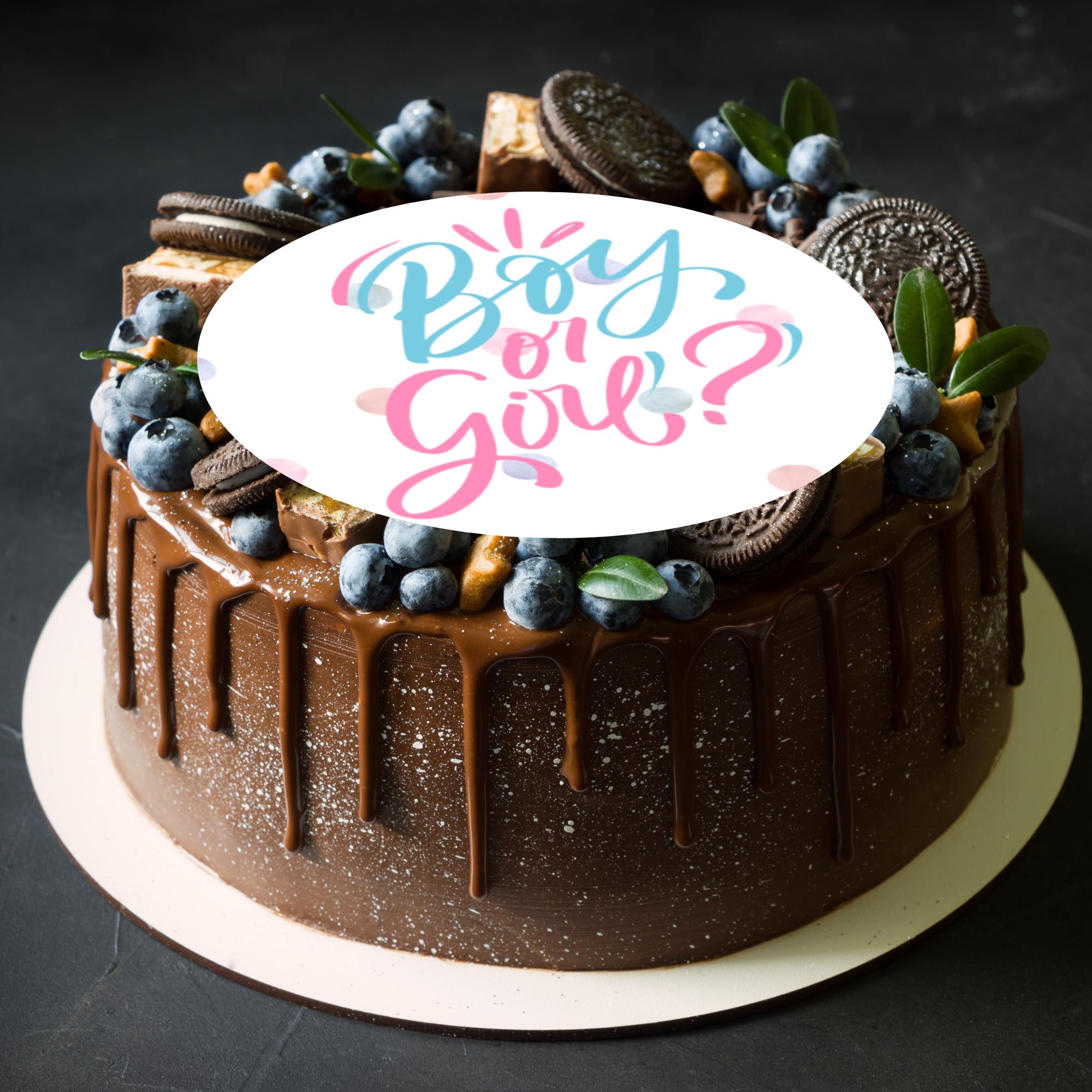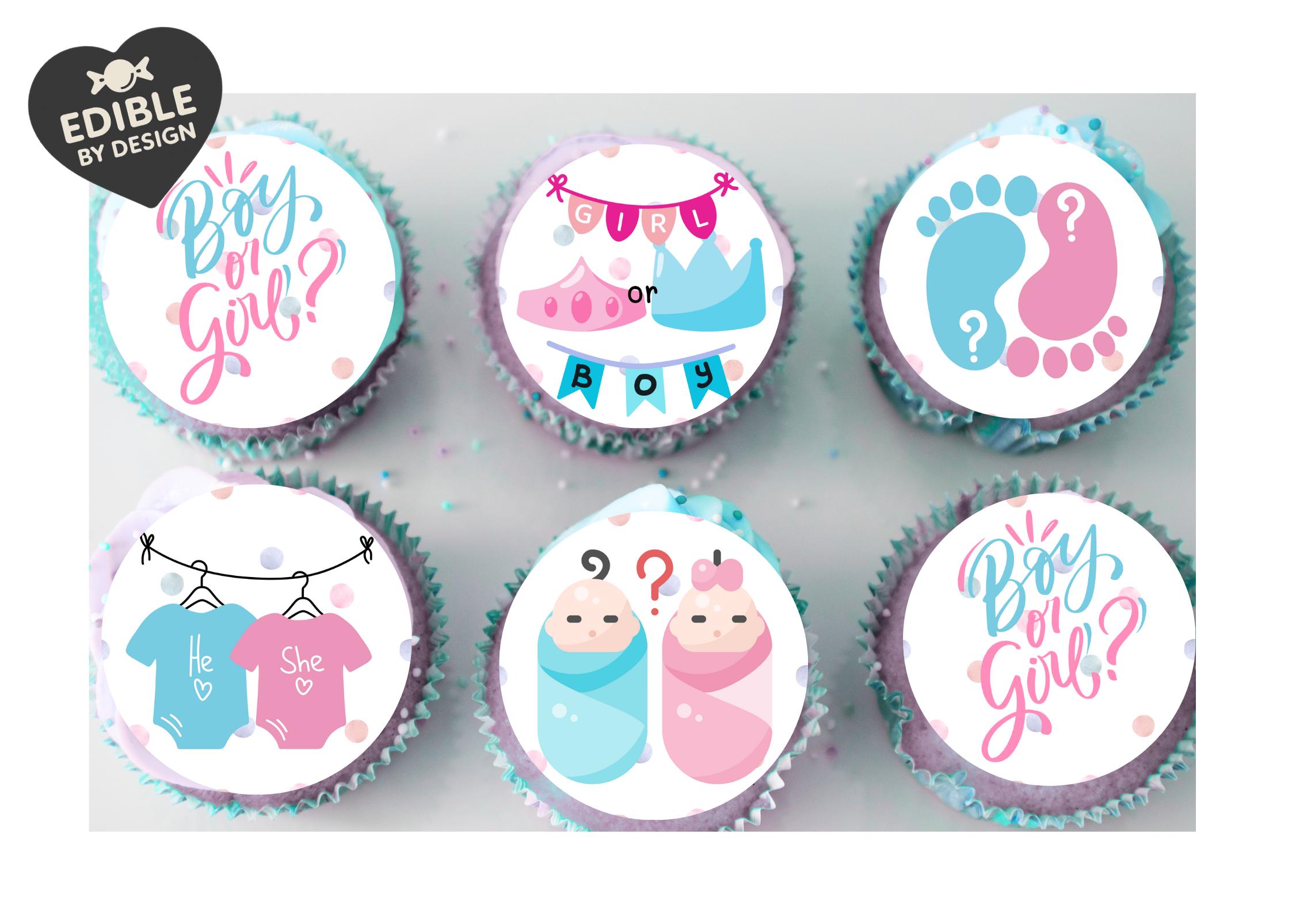 Precut Cake Toppers with edible ink. Gender Reveal Baby Shower Party Cake Toppers in gorgeous pink and blue tones. Features Sleeping Babies, Baby Grows, Crowns, Baby Feet etc. This item can be personalised. Matching Foil Balloon and Stickers available.