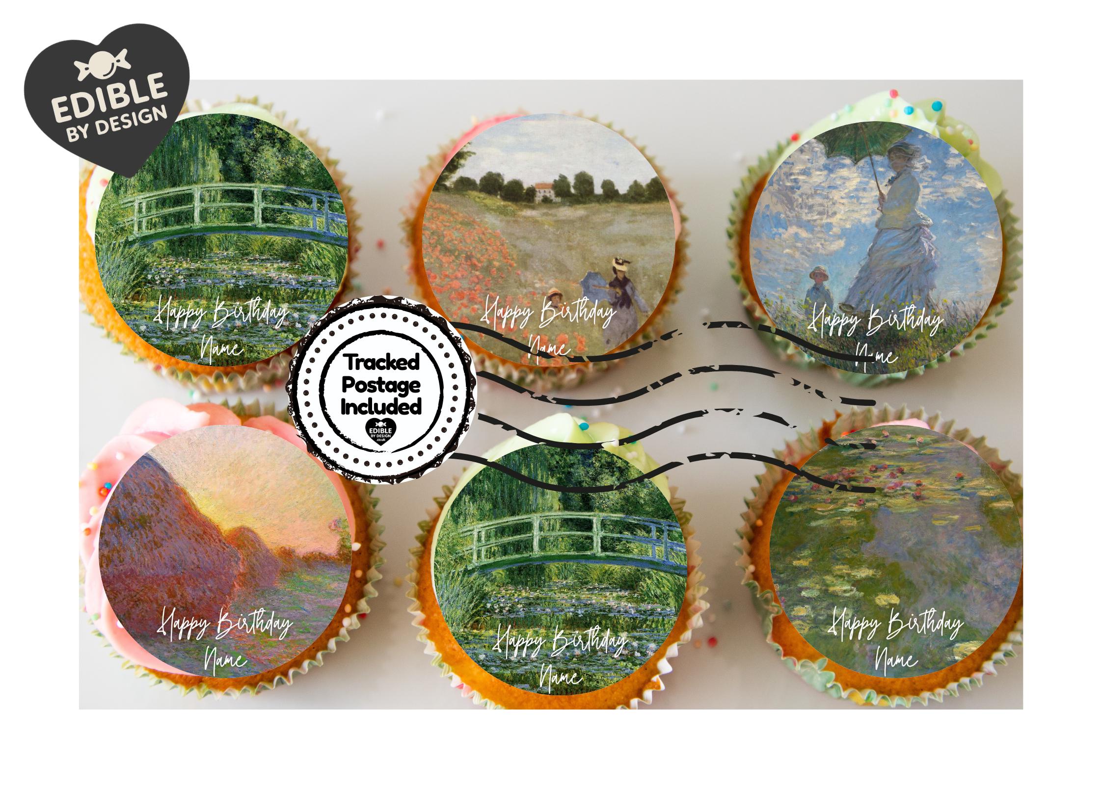 Precut Birthday Cake Toppers with edible ink. Monet theme with Water Lilies, Japanese Bridge etc.