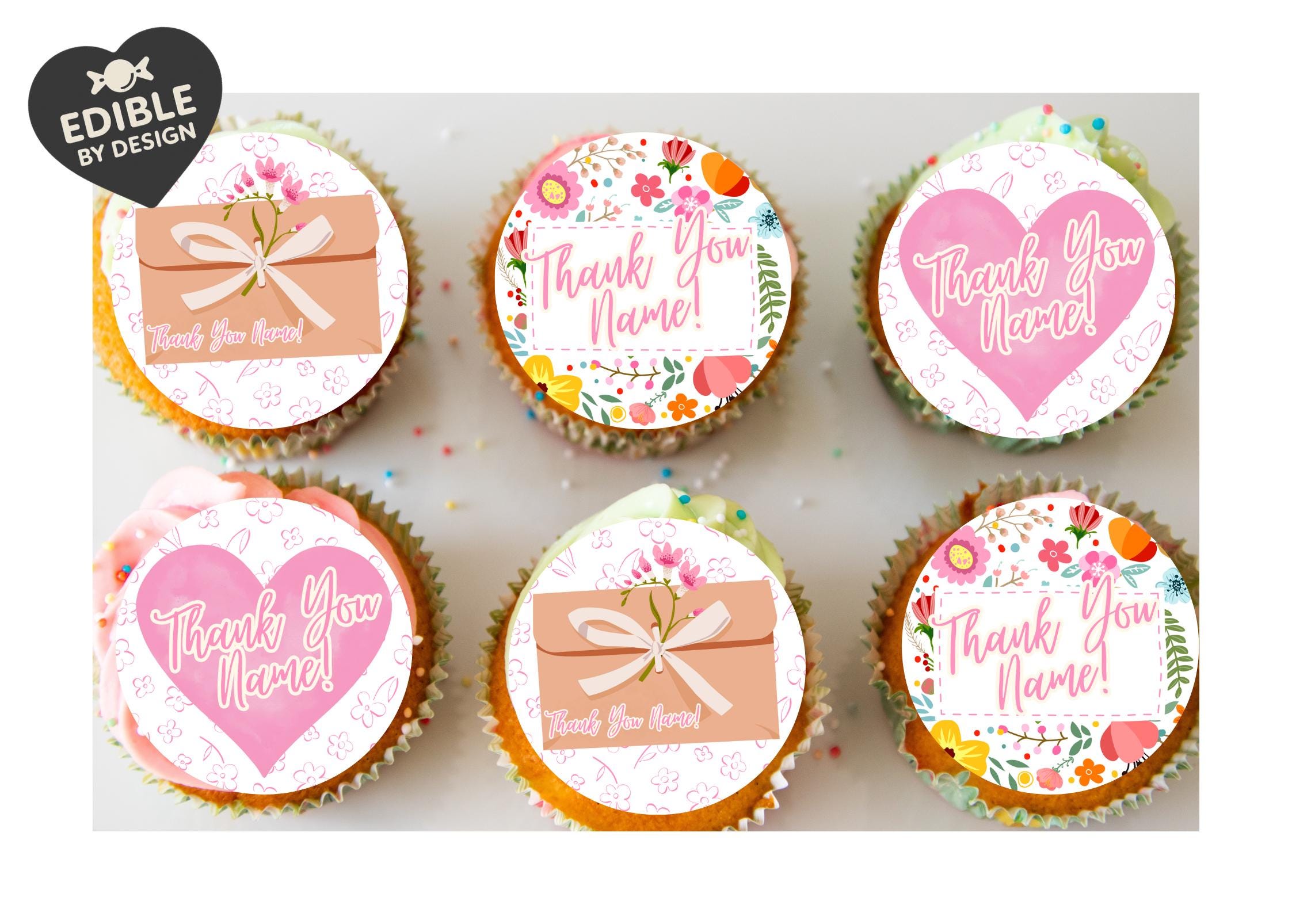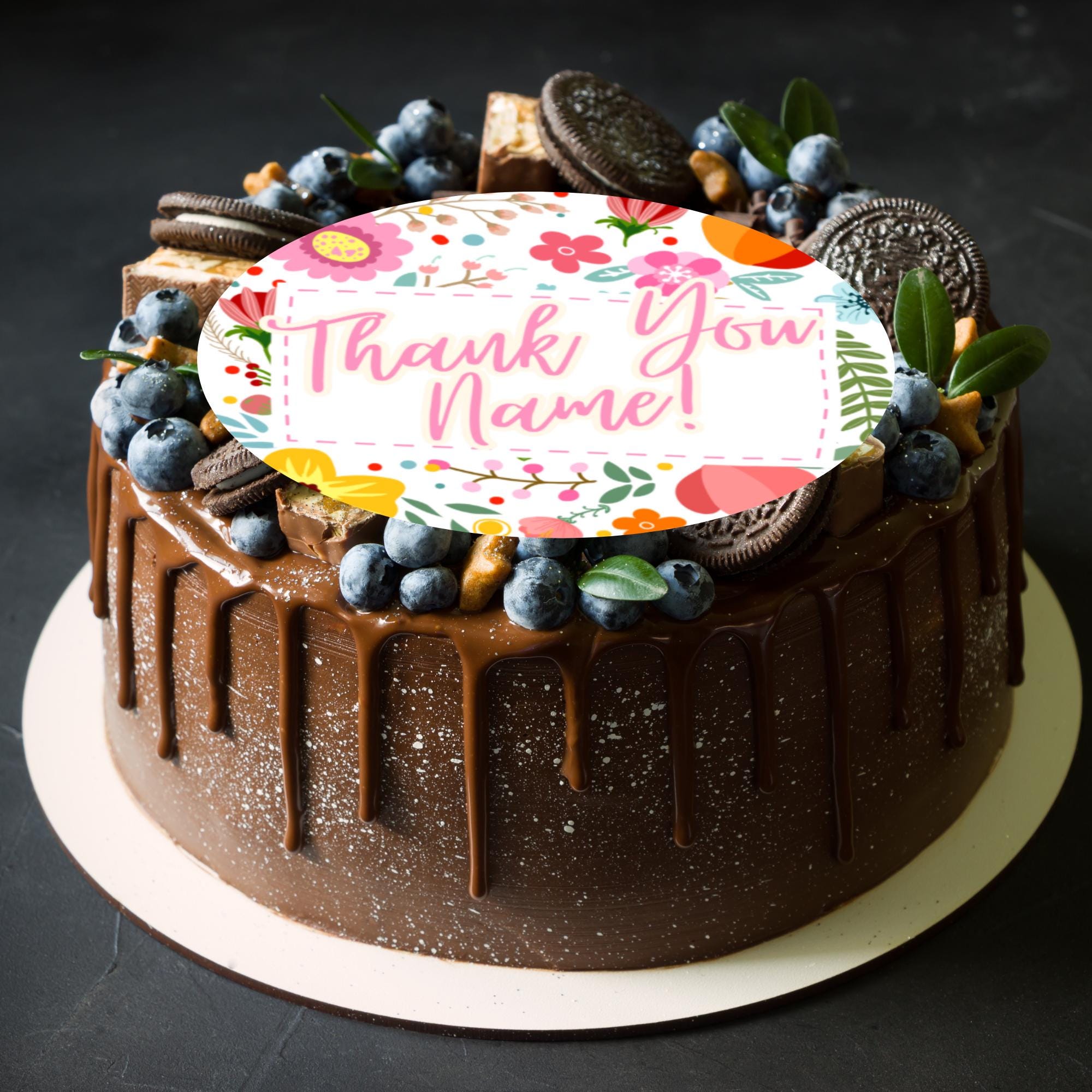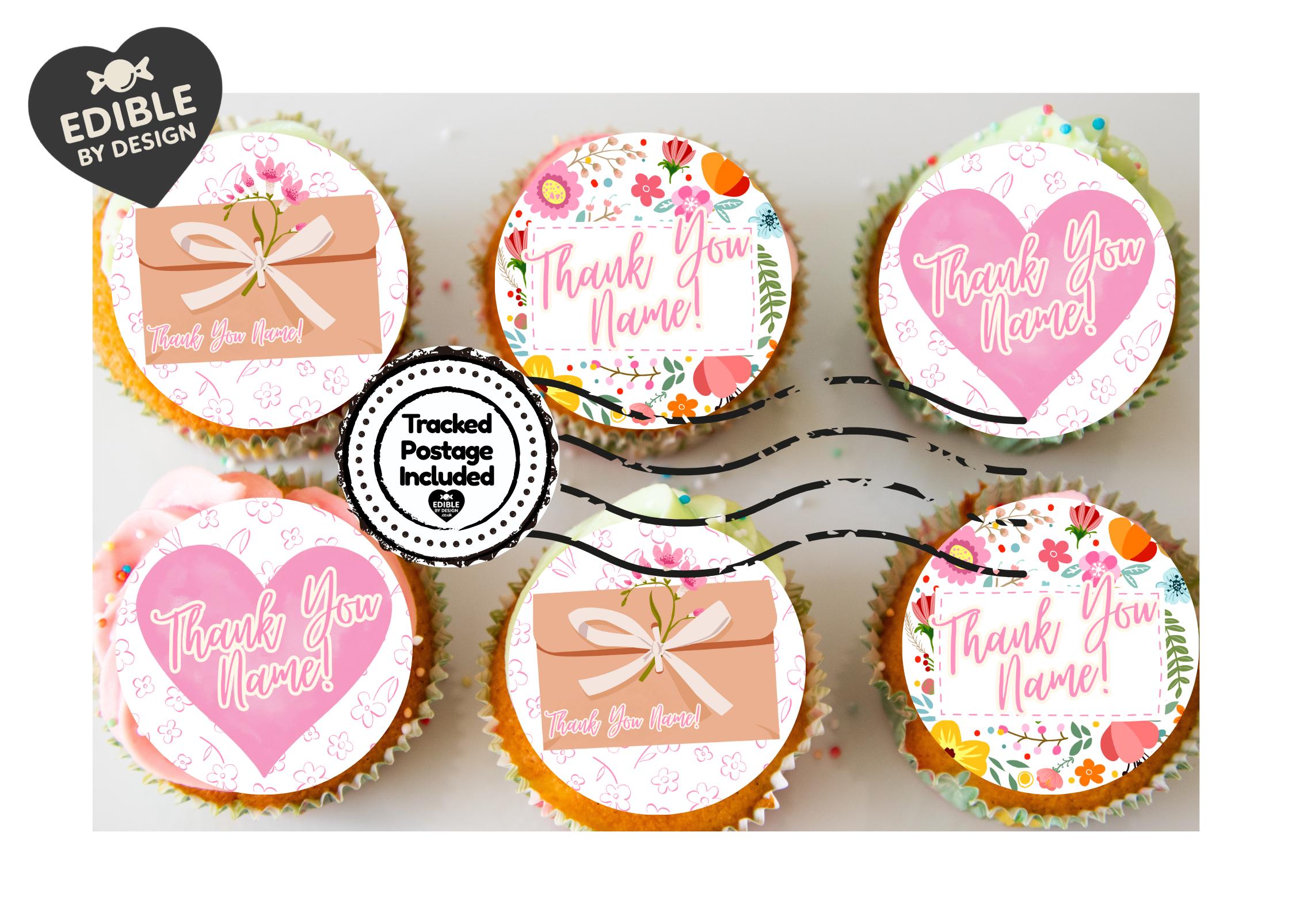 Precut Personalised Thank You Cake Toppers with edible ink.