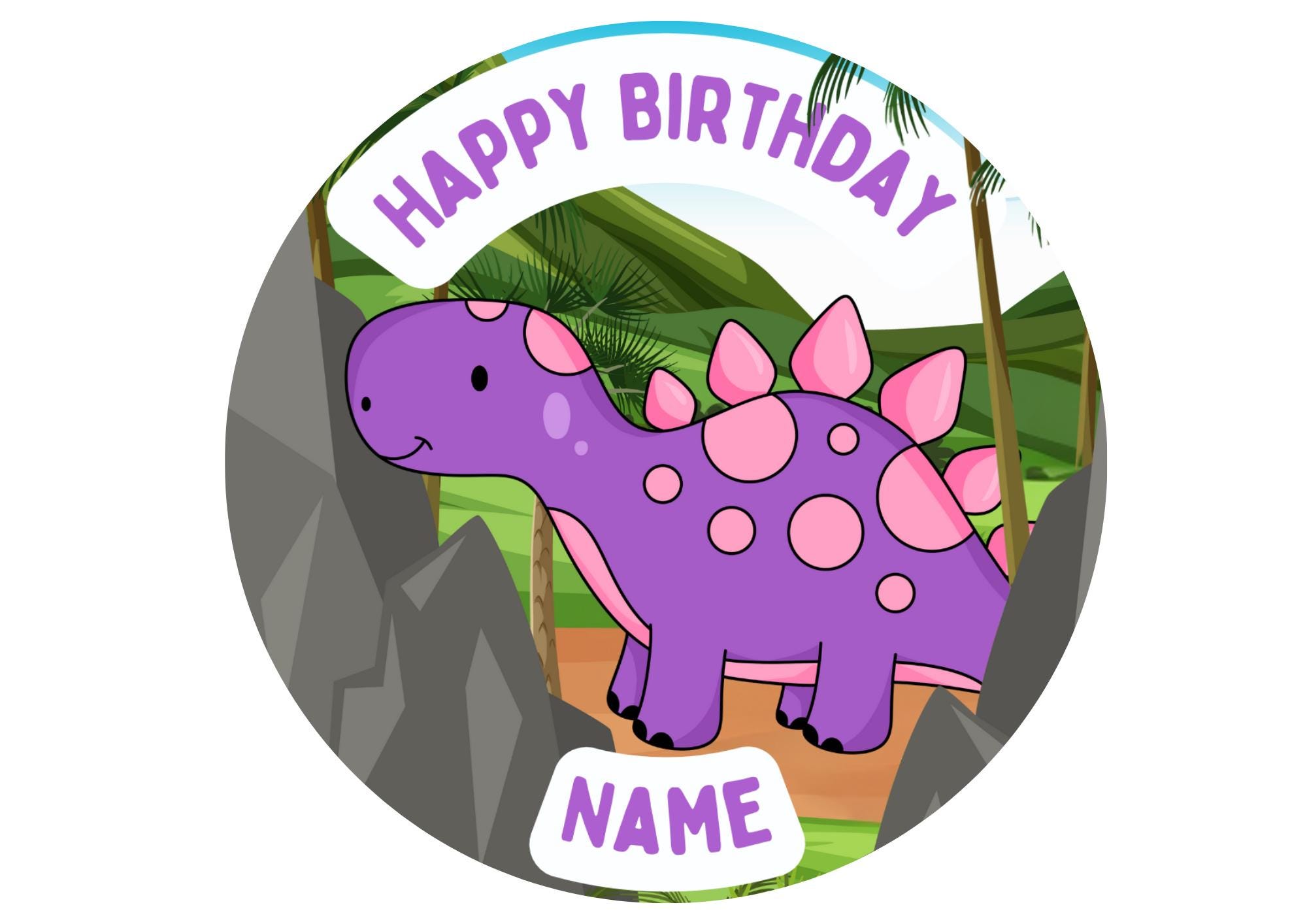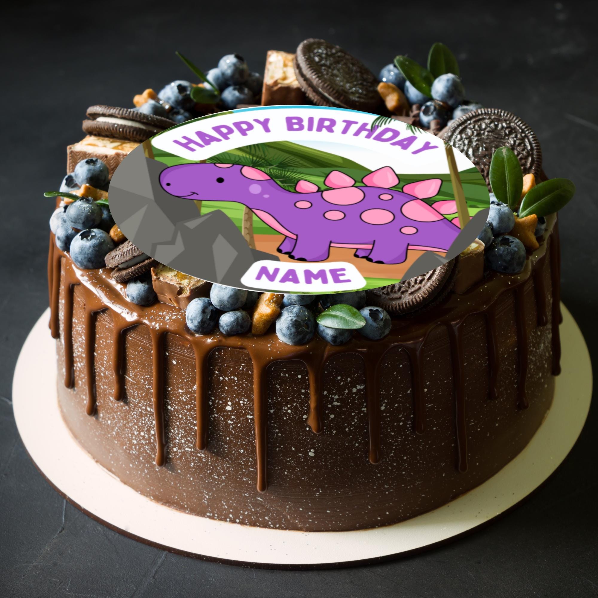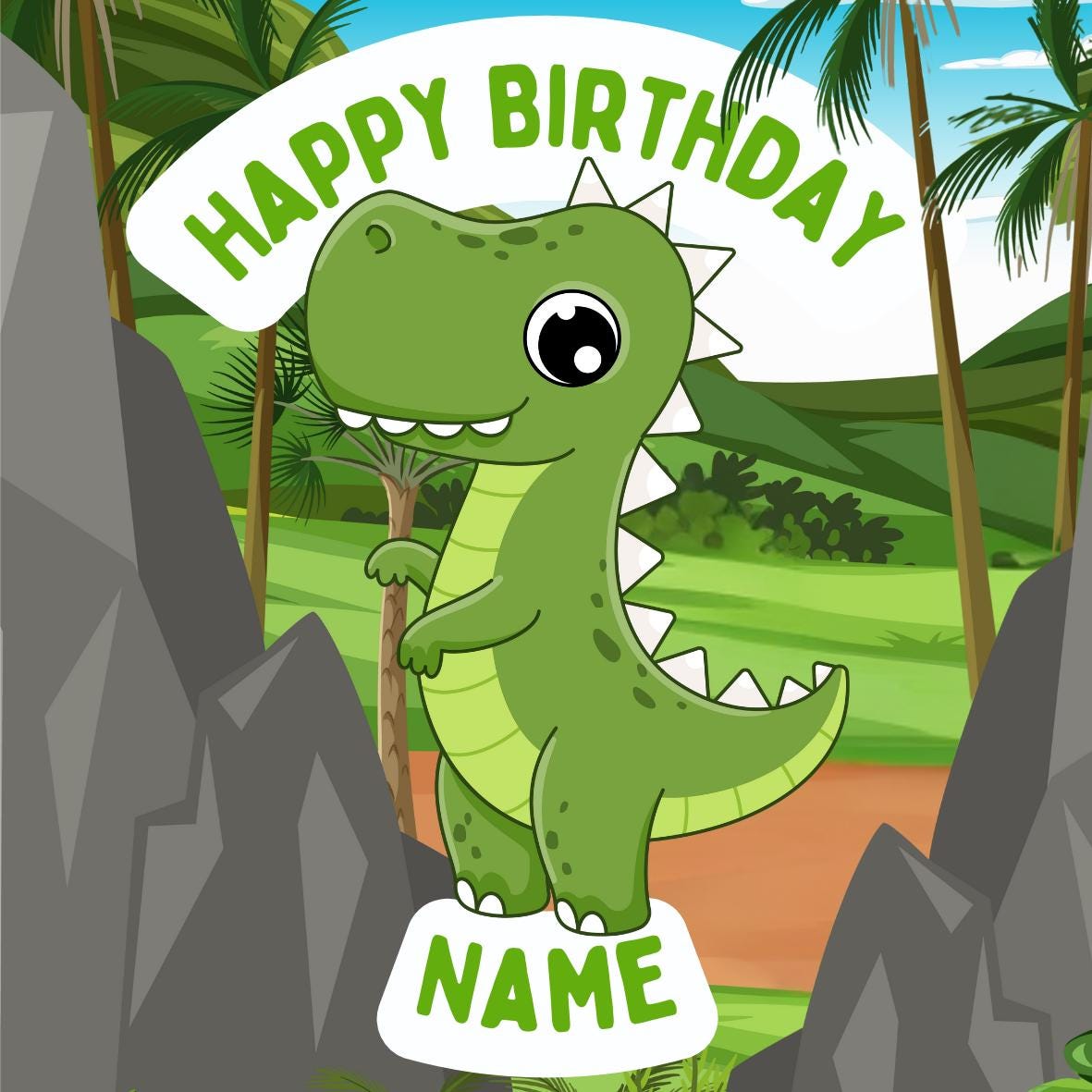Cartoon Dinosaur Theme Cake Topper. Personalised with your choice of design and name.