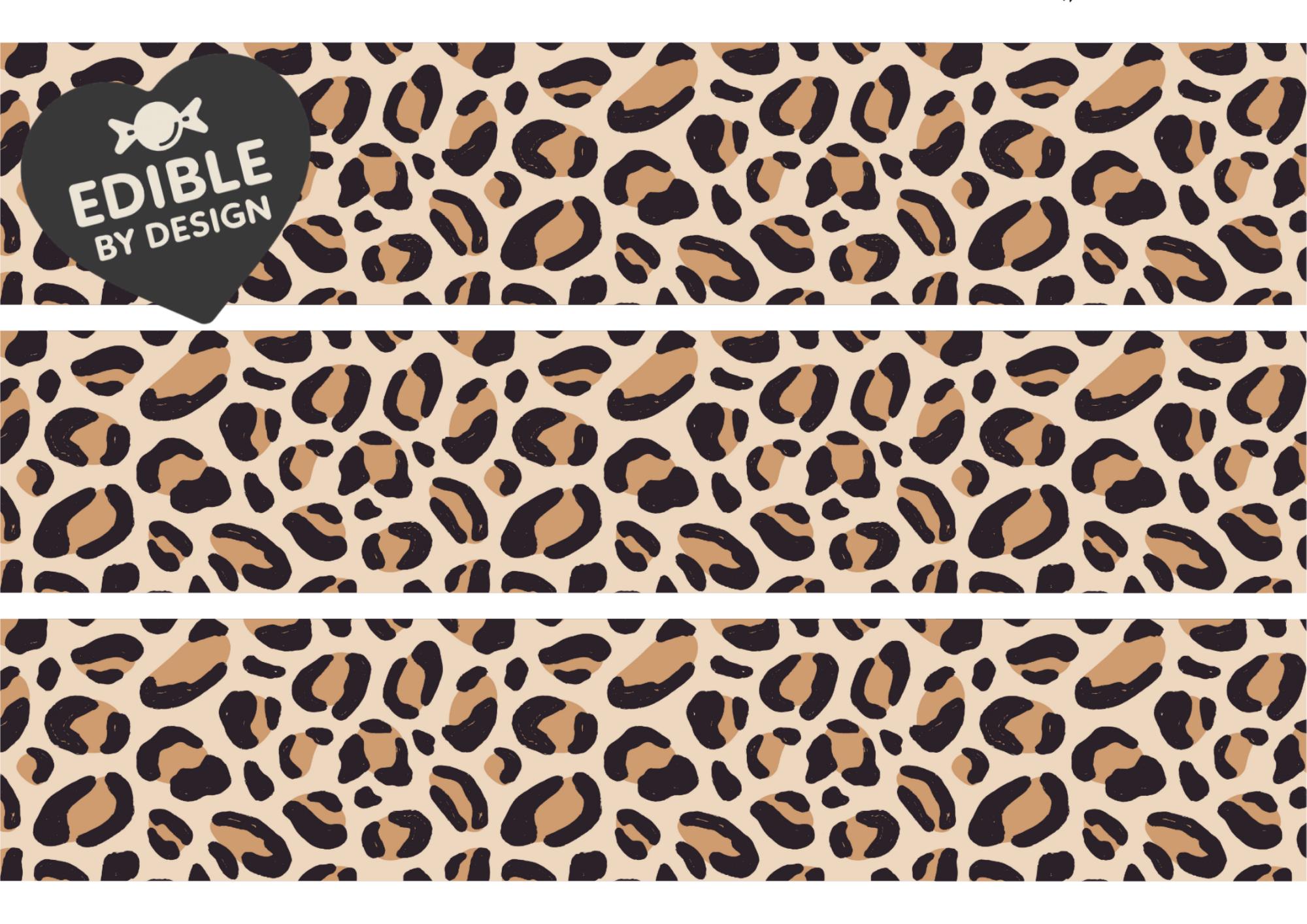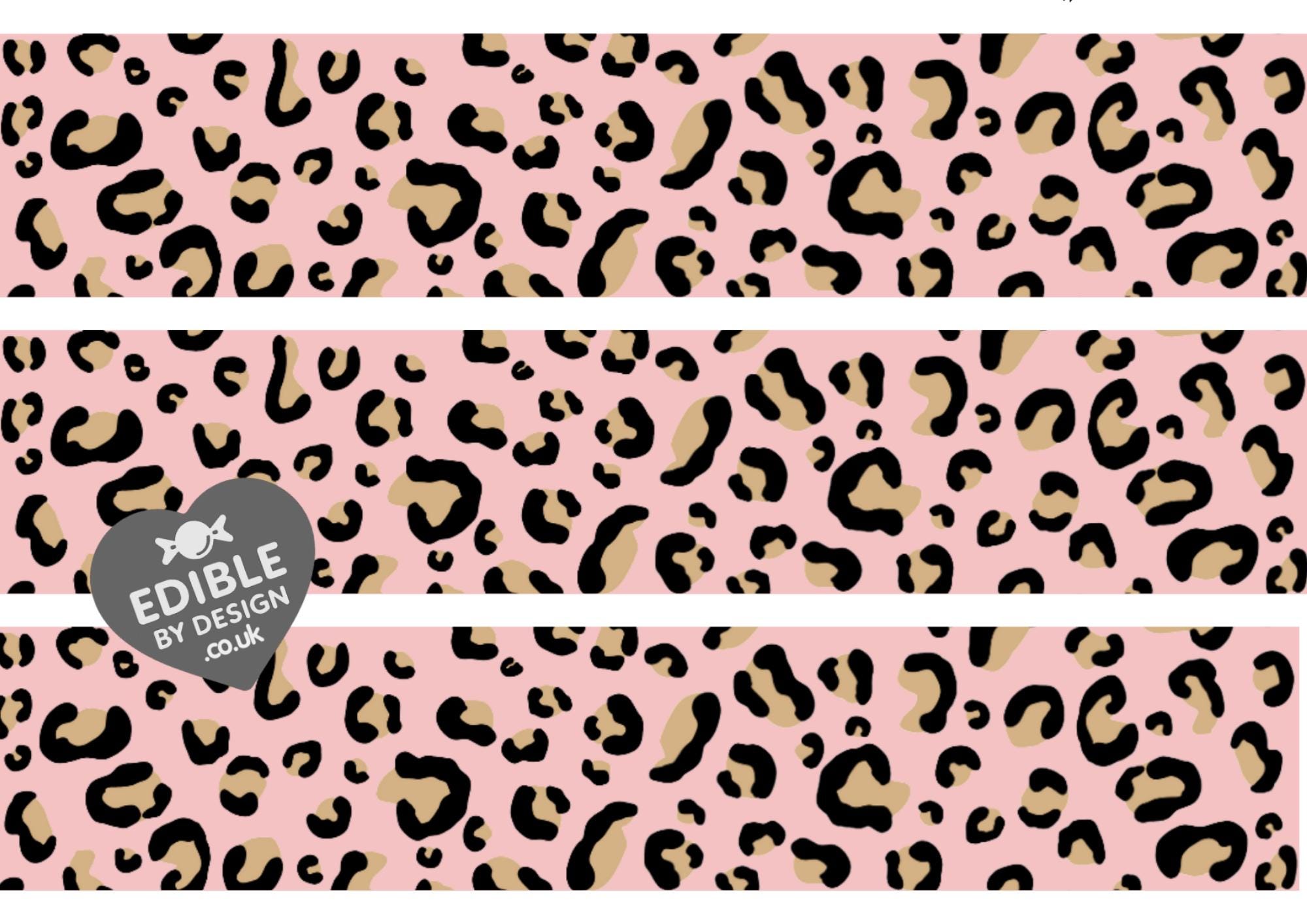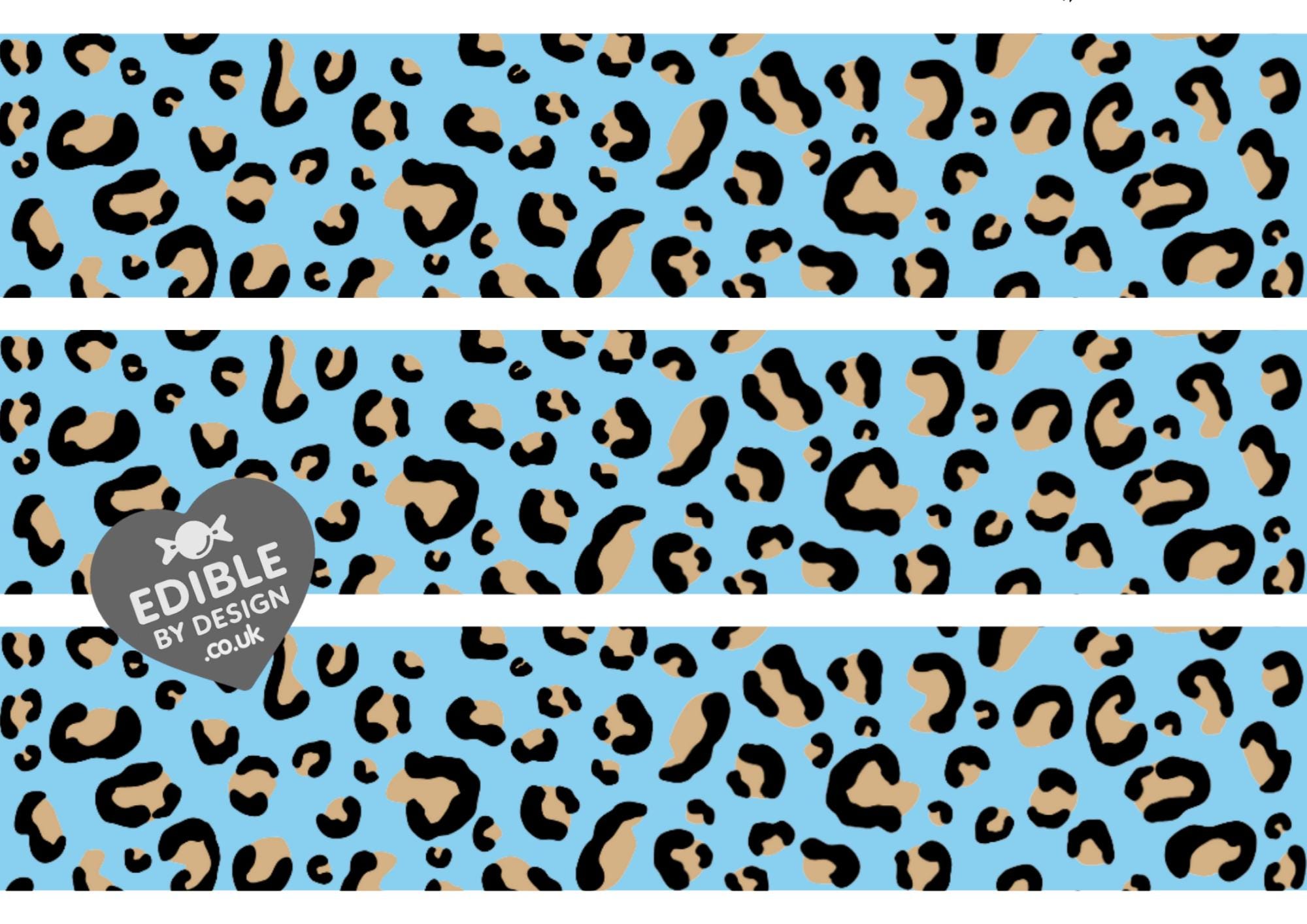 Leopard print Ribbon Border Edging for Cakes printed with edible ink on a flexible Icing Sheet. Choose from Natural, Baby Pink, Baby Blue or Special colour of your choice (please message details).