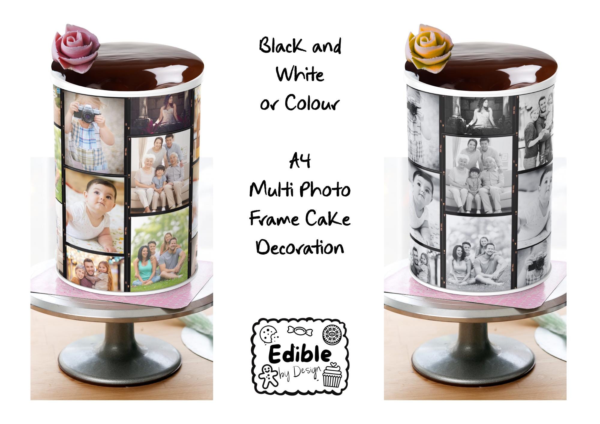 Multi Photo Frame A4 Sheet printed with edible ink. Can be used around the sides or on the top of your cake.