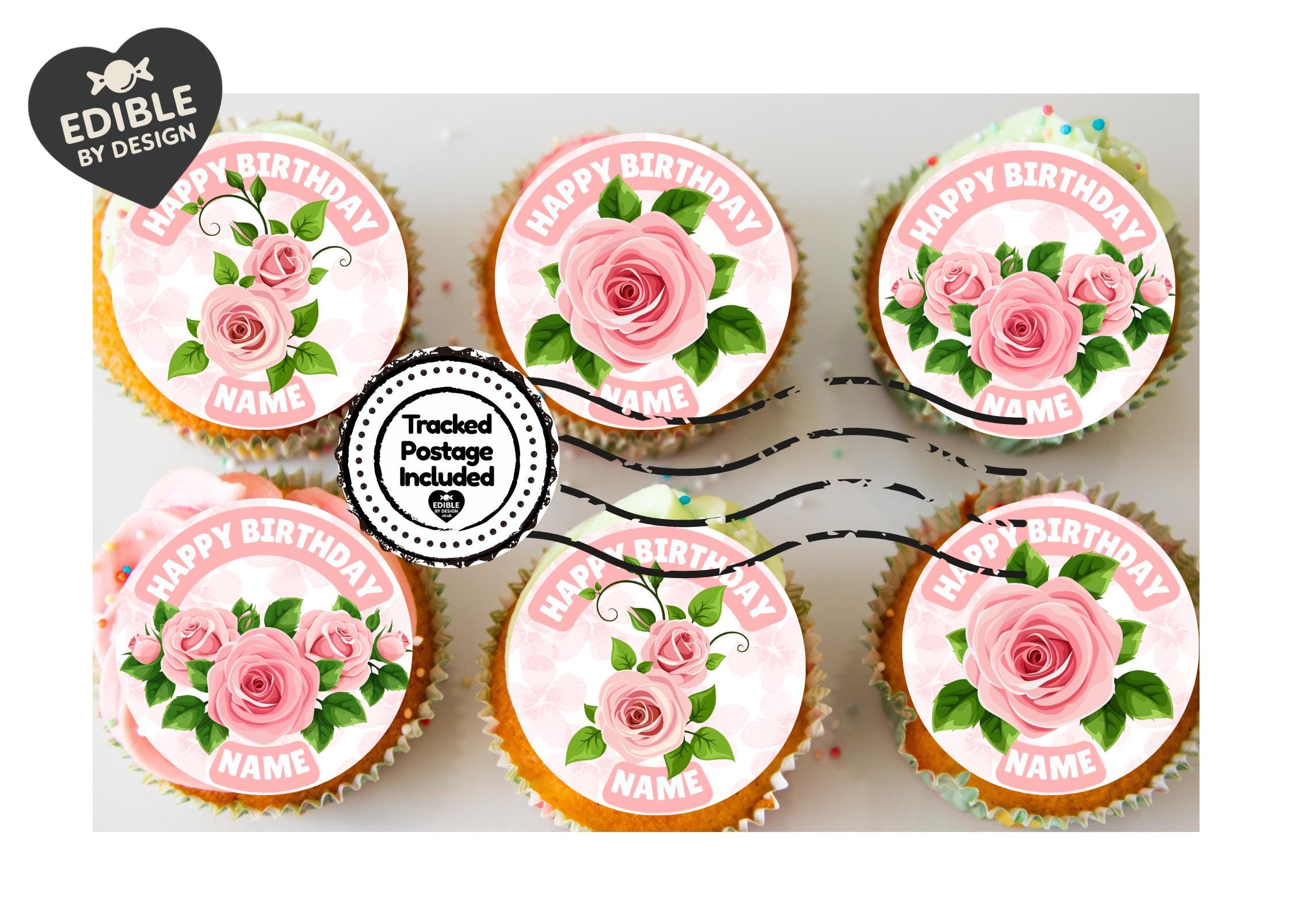 Pre-cut Cake Toppers with edible ink. Beautiful Pink Rose theme Cake Toppers. Matching Balloon available.