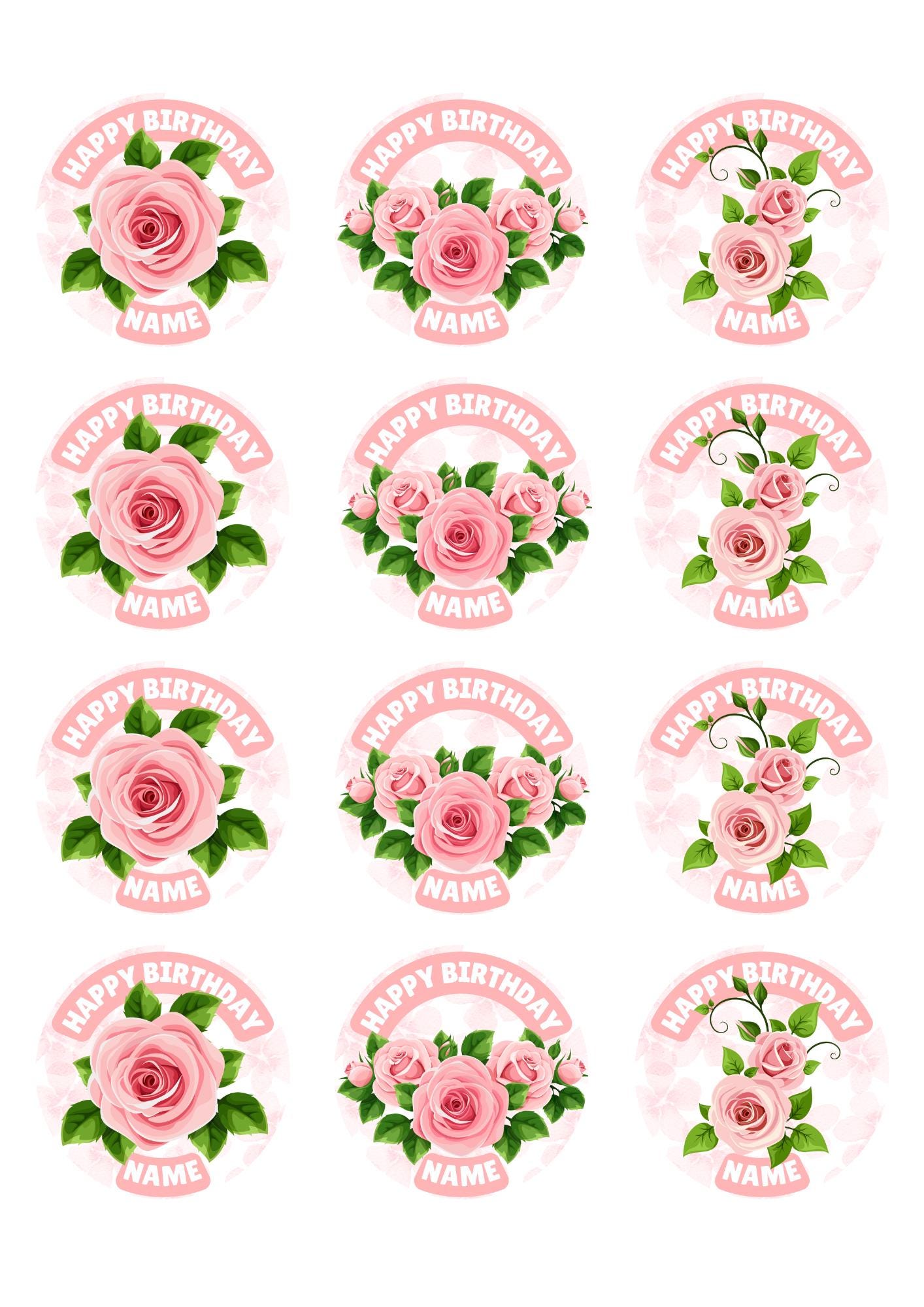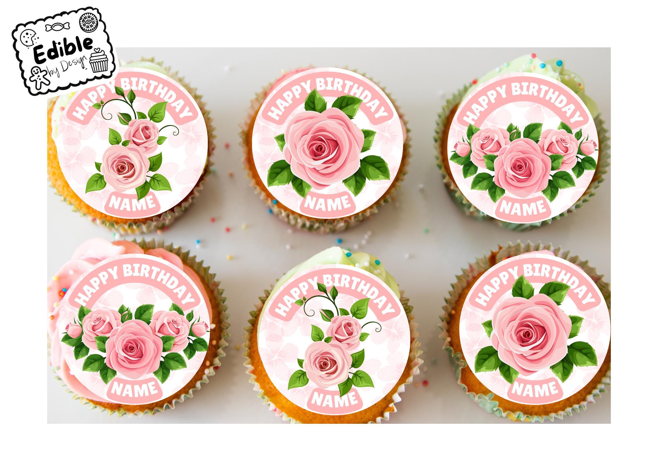 Beautiful Pink Rose theme Cupcake Toppers. Perfect for decoration of cupcakes with pretty floral design.