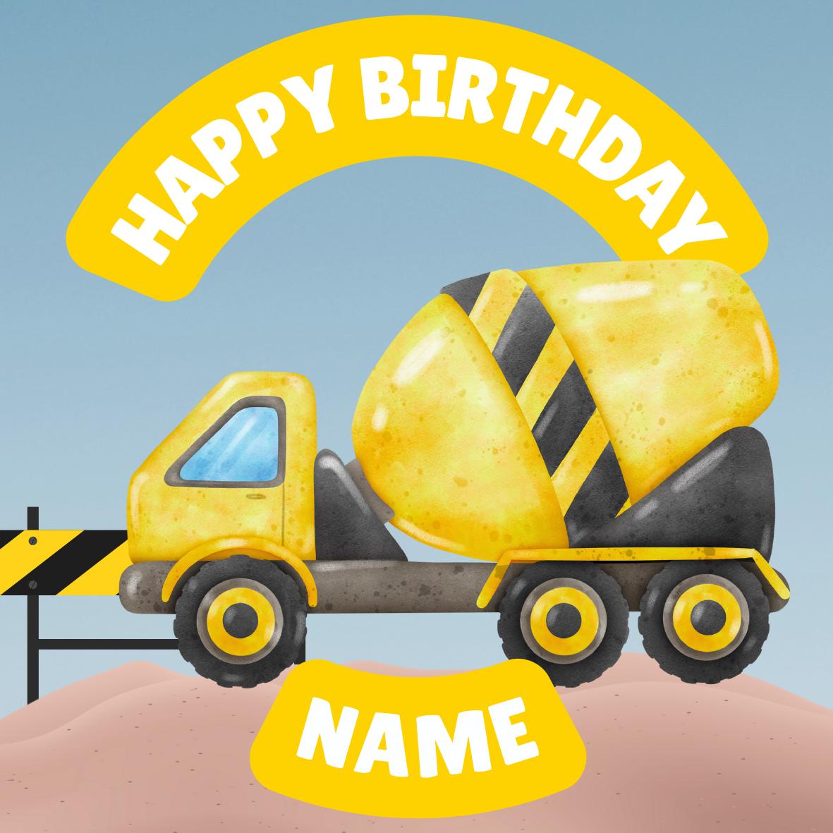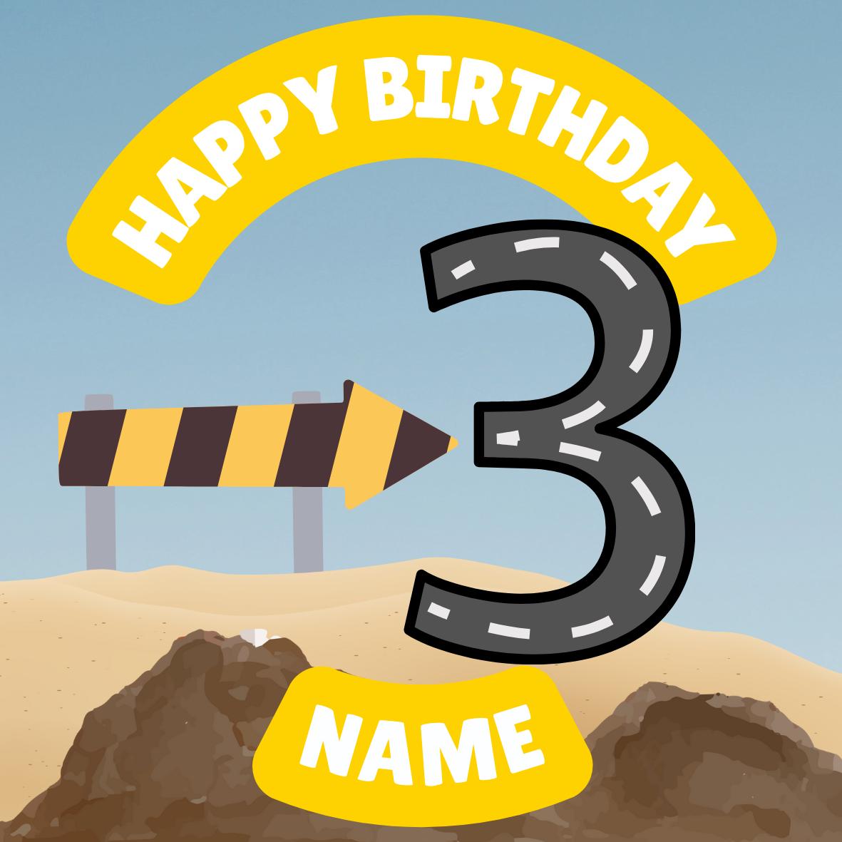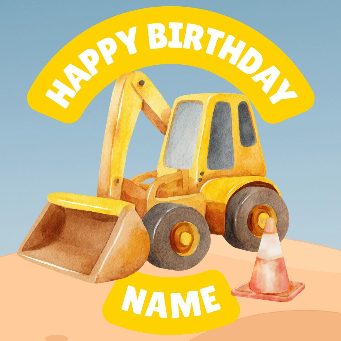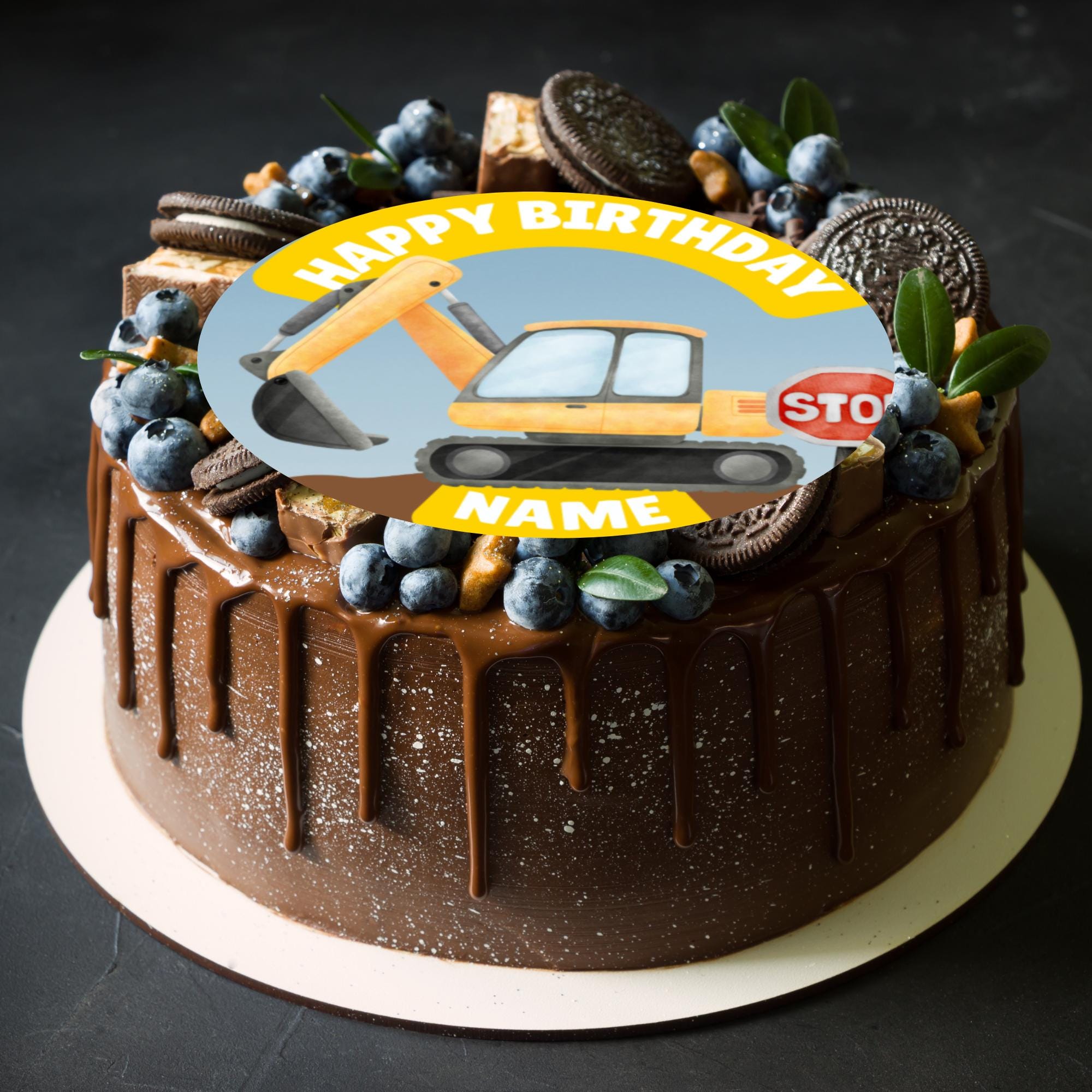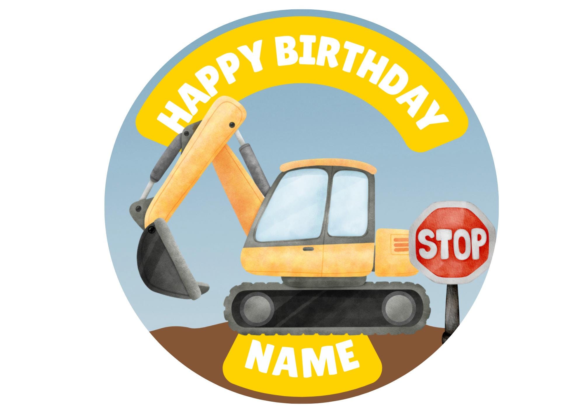 Construction Site Theme Cake Topper. Features Diggers, Tractors, Mixers etc. Personalised with your choice of design, age and name. Age will also be reflected on track design number.