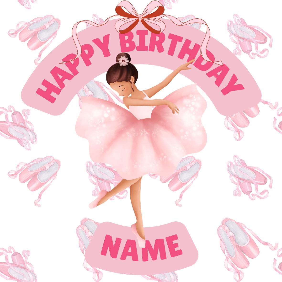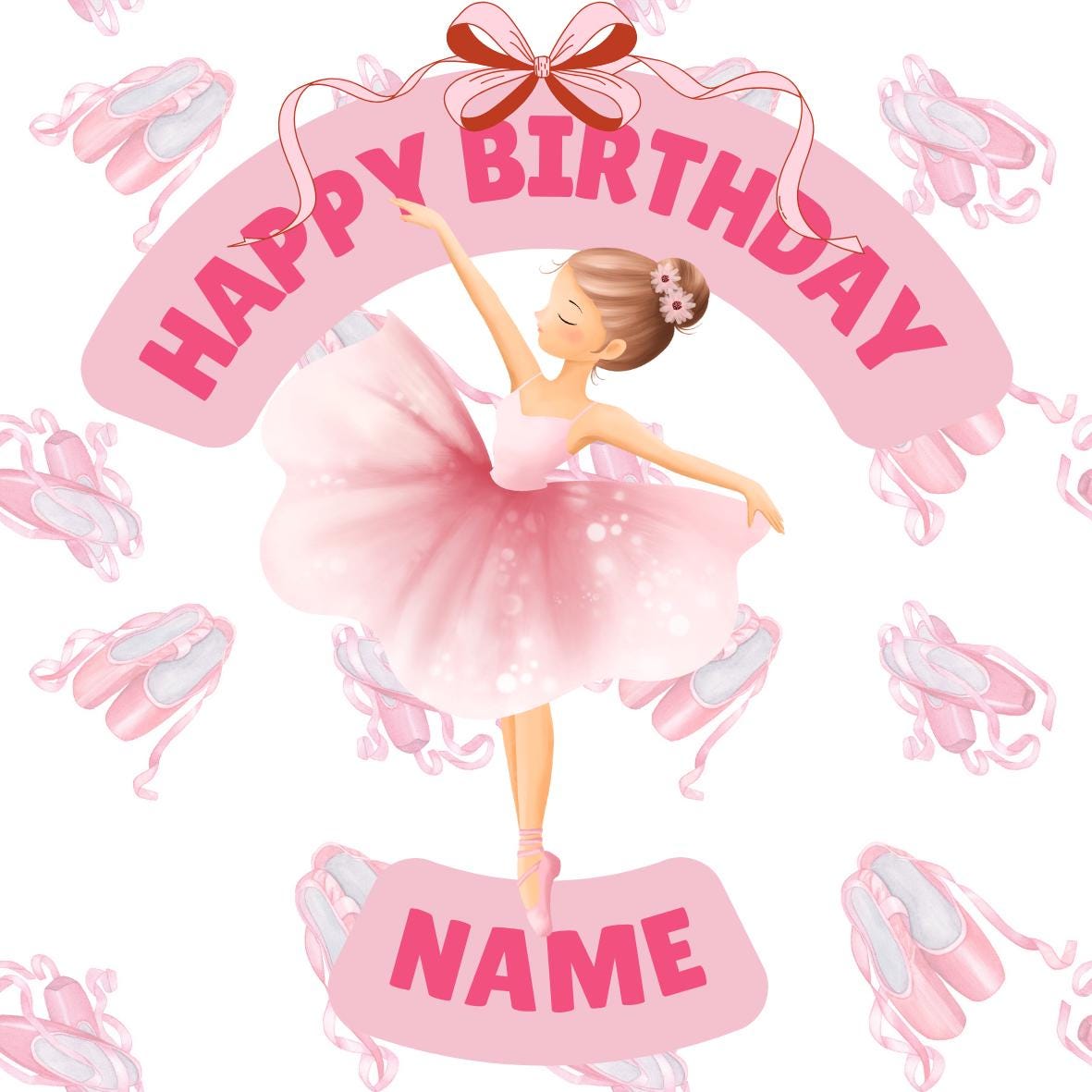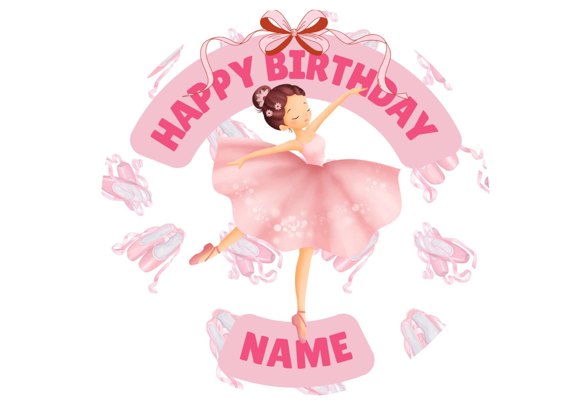 Pink Ballerina theme topper personalised with choice of design, name and age.