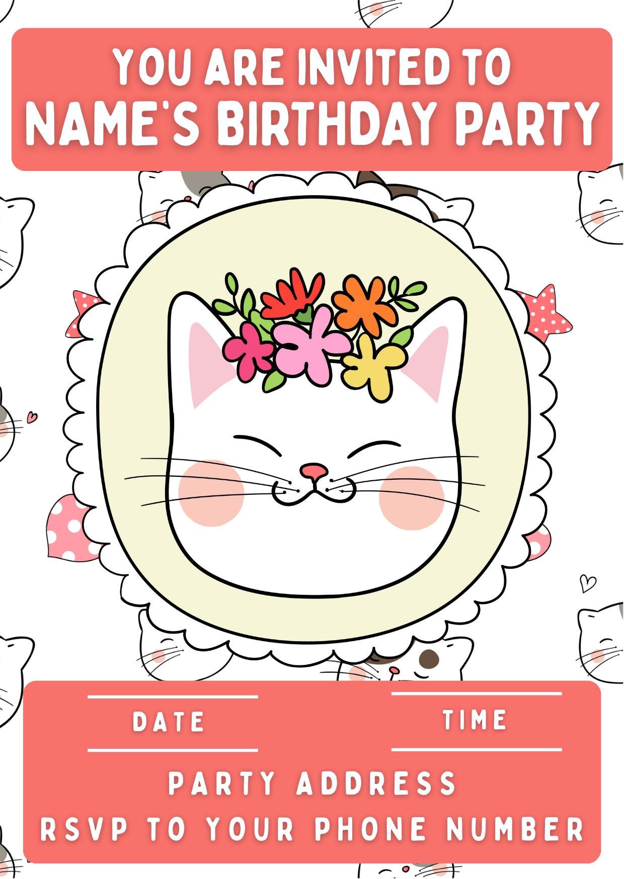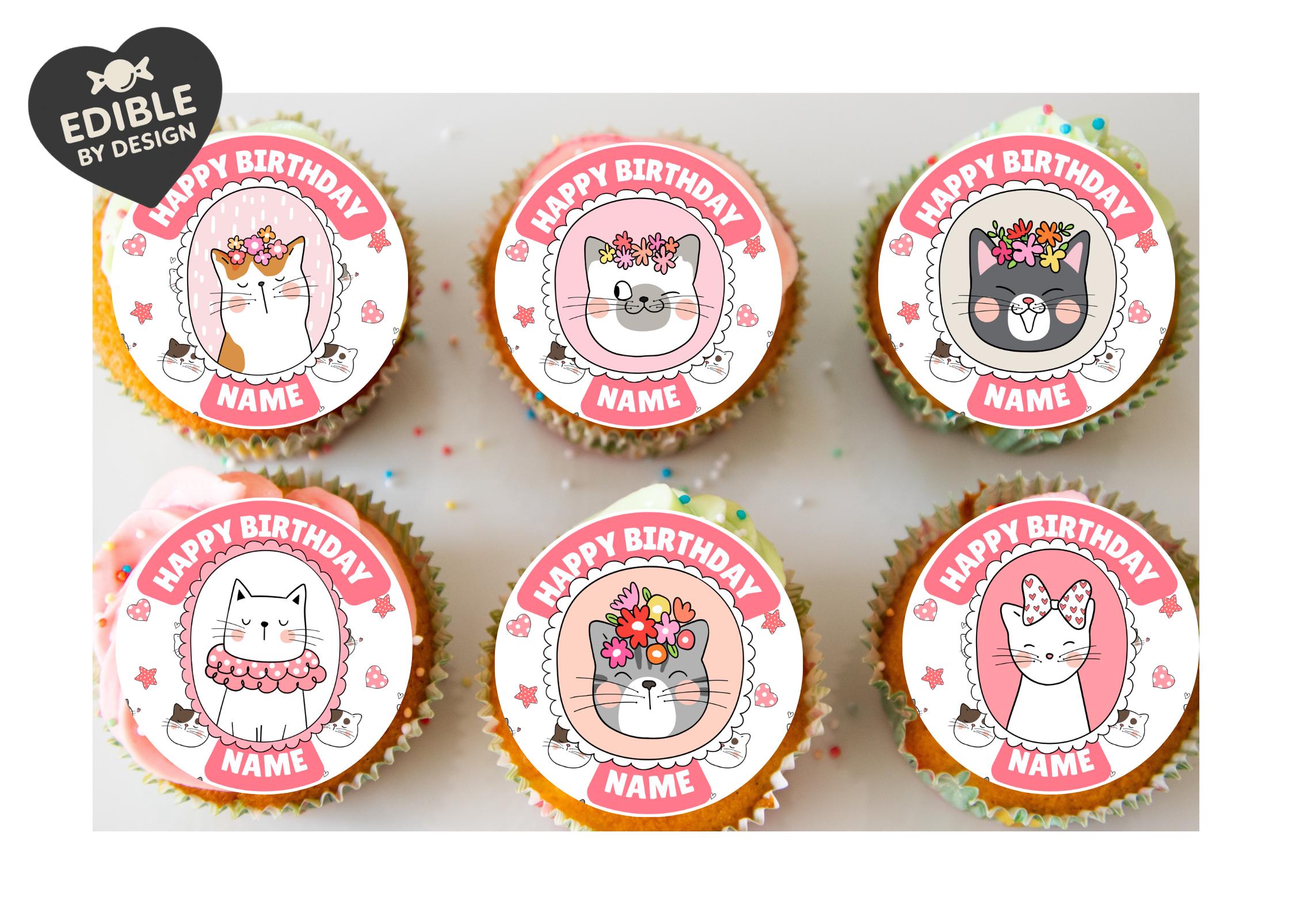Precut Cupcake Toppers with edible ink. Super Cute Kitten Cat Cupcake Toppers. Featuring gorgeous cat designs. Also available matching Invitations, Stickers, Foil Balloon and complete party pack.