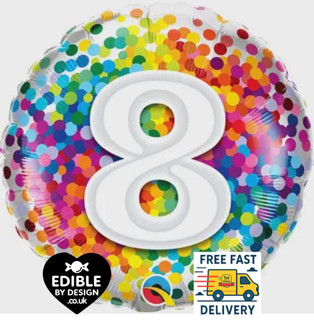 Rainbow Confetti Foil Age 8 Balloon