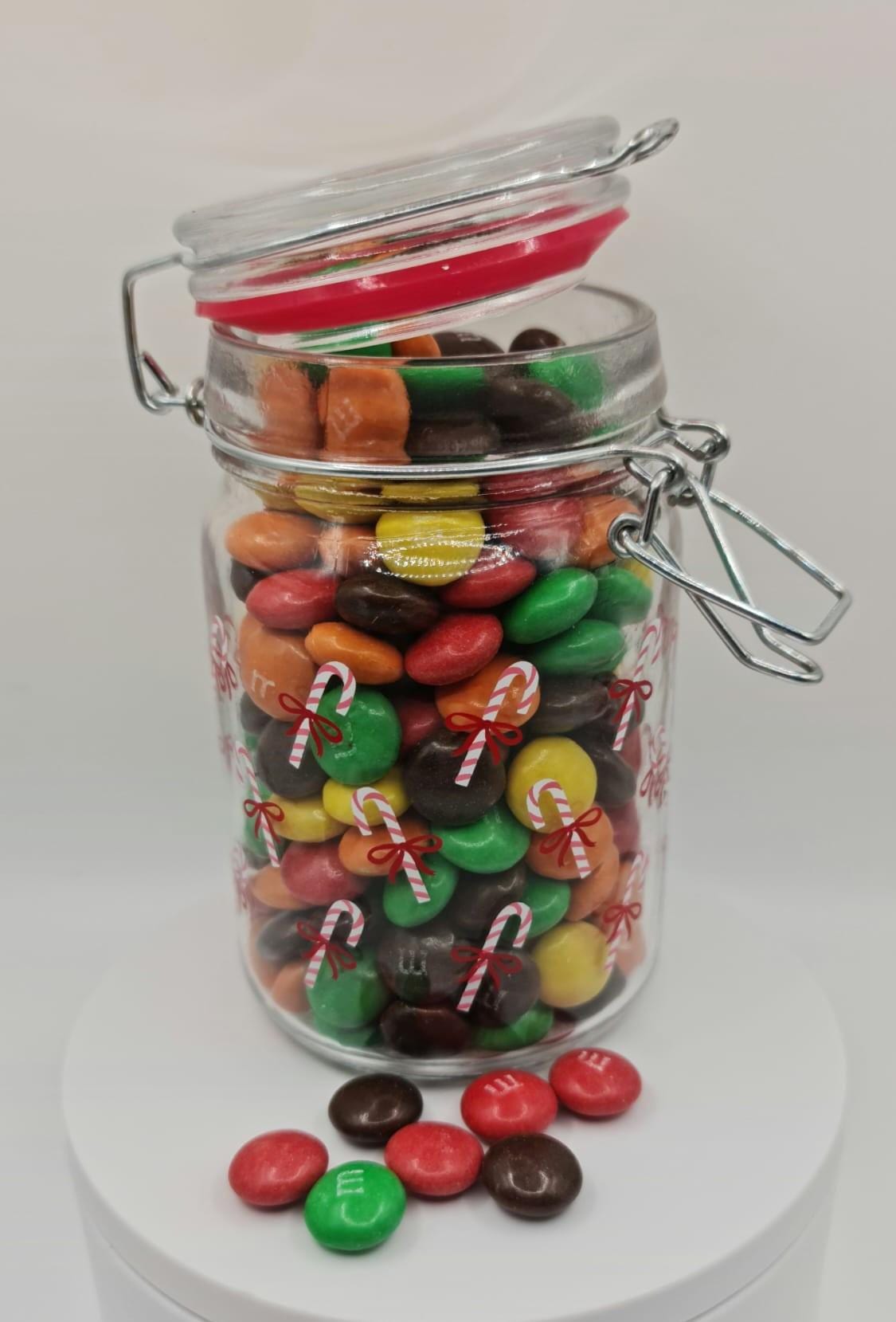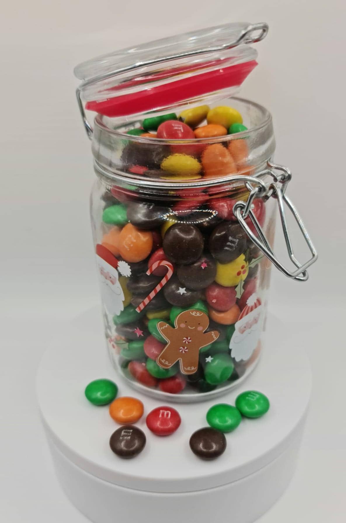 Give a perfect personal gift this Christmas. 220g of M&Ms presented in a Christmas Theme Glass Jar