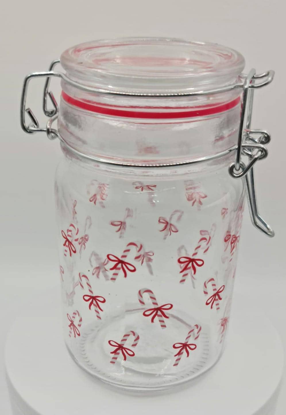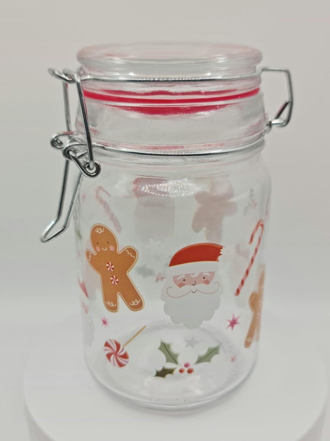 Christmas Theme Glass Jar with Personalised Chocolate M&Ms with the images, photos, logos and text of your choice!