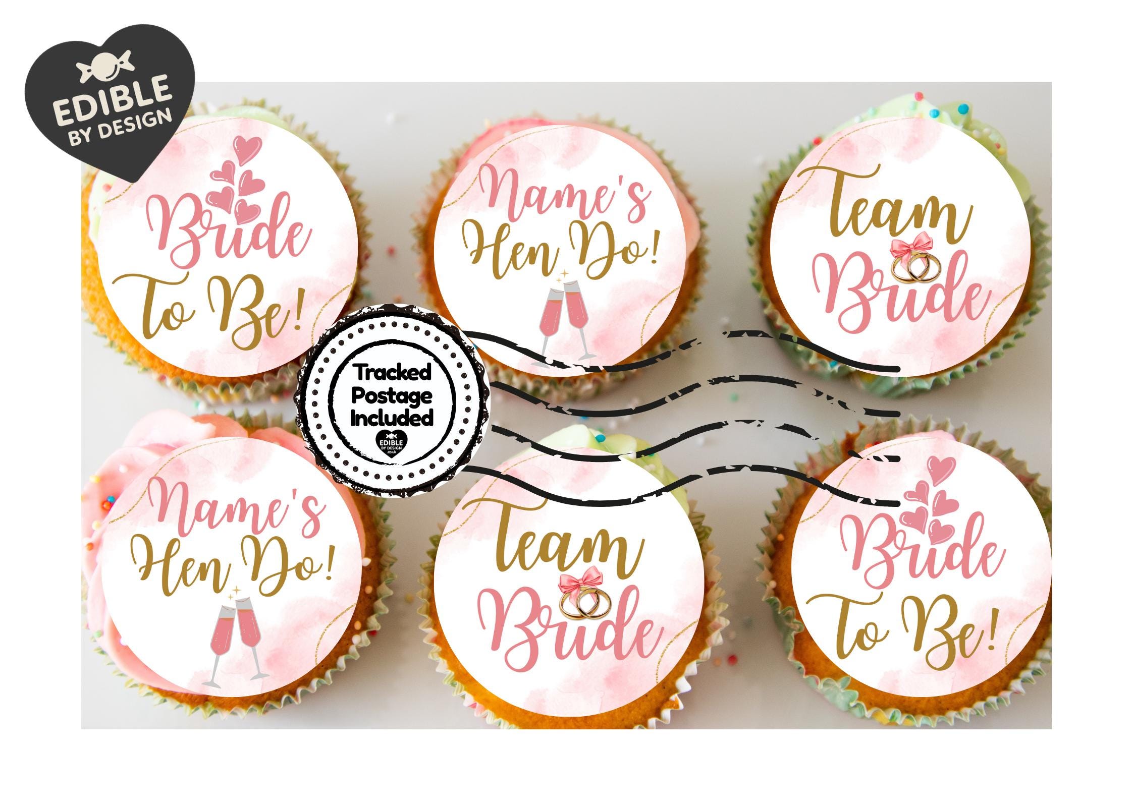 Precut Bride To Be, Hen Do Party Cake Toppers with edible ink, personalised with Brides name. Matching Stickers or Foil Balloon available.