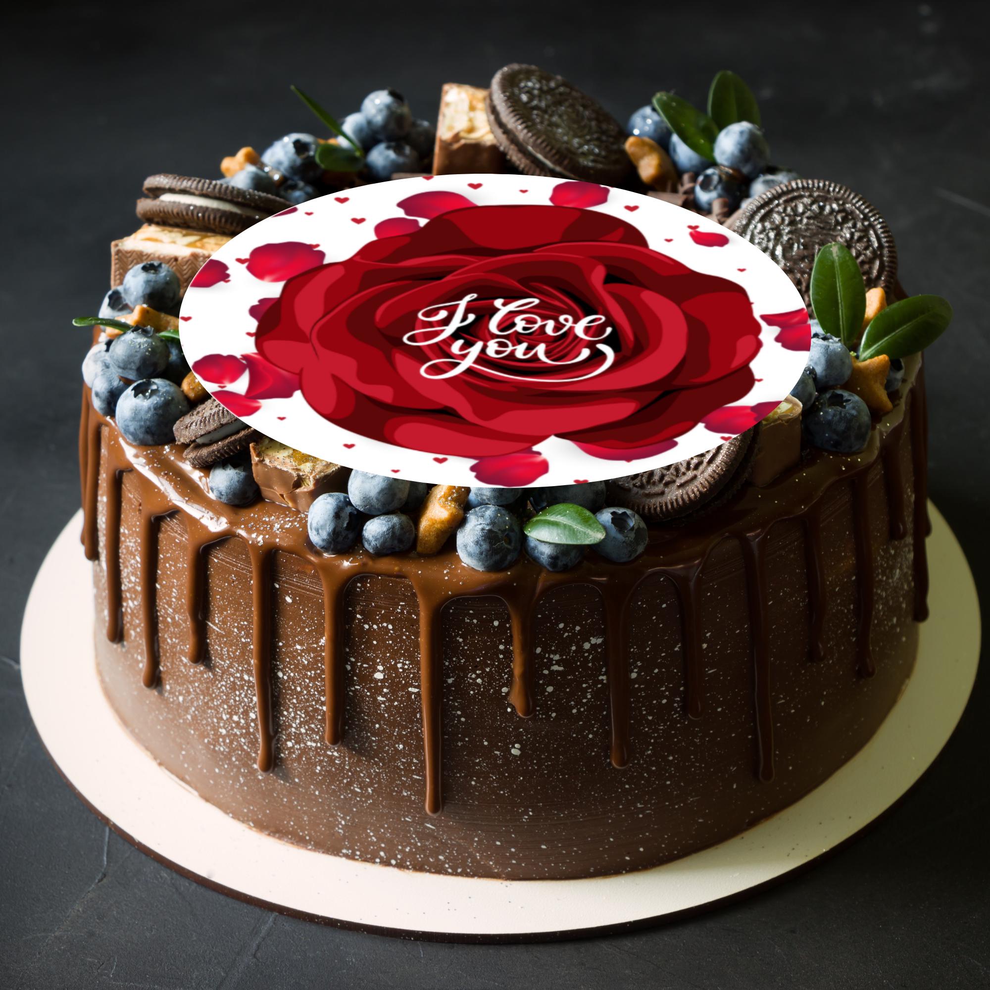 I Love You Valentines Red Rose Cake Topper with edible ink.