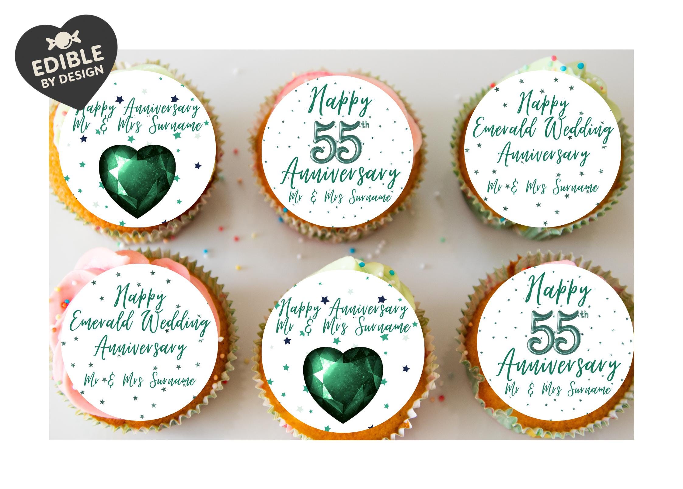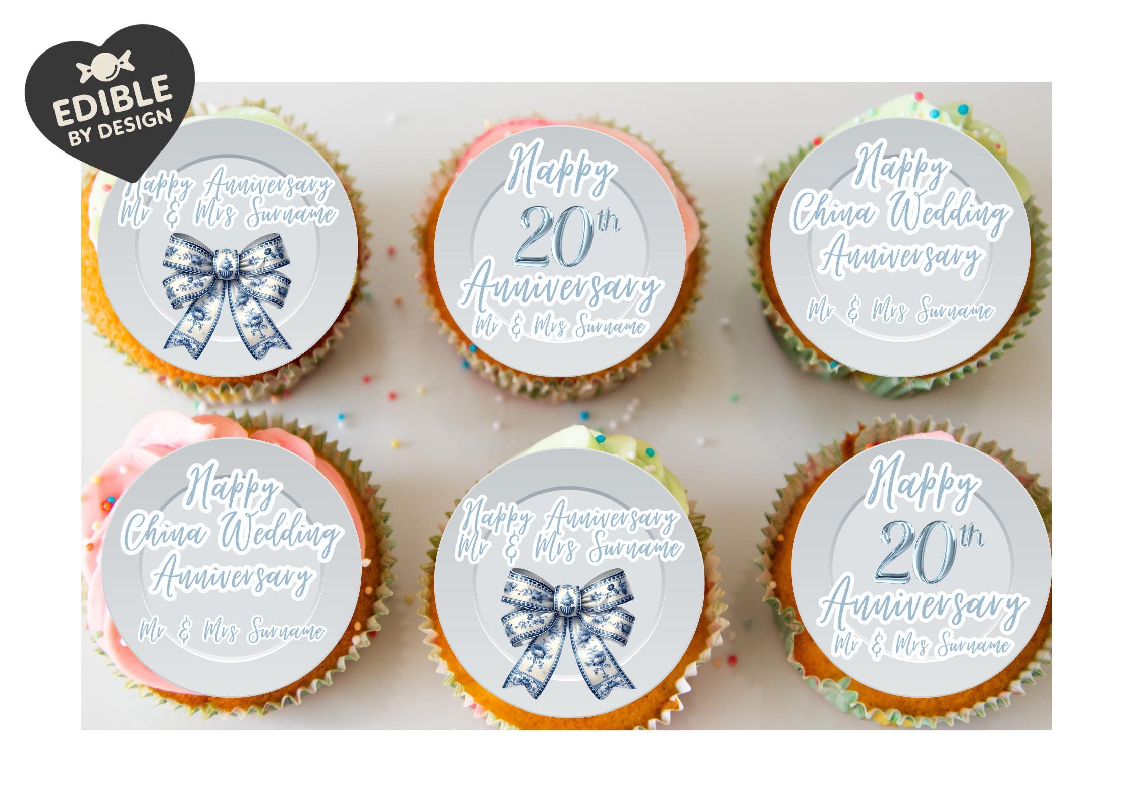 Precut Personalised Cake Toppers with edible ink. Gorgeous Traditional Wedding Themes for anniversaries 20 years through to 60 years. Any design can be amended as required.