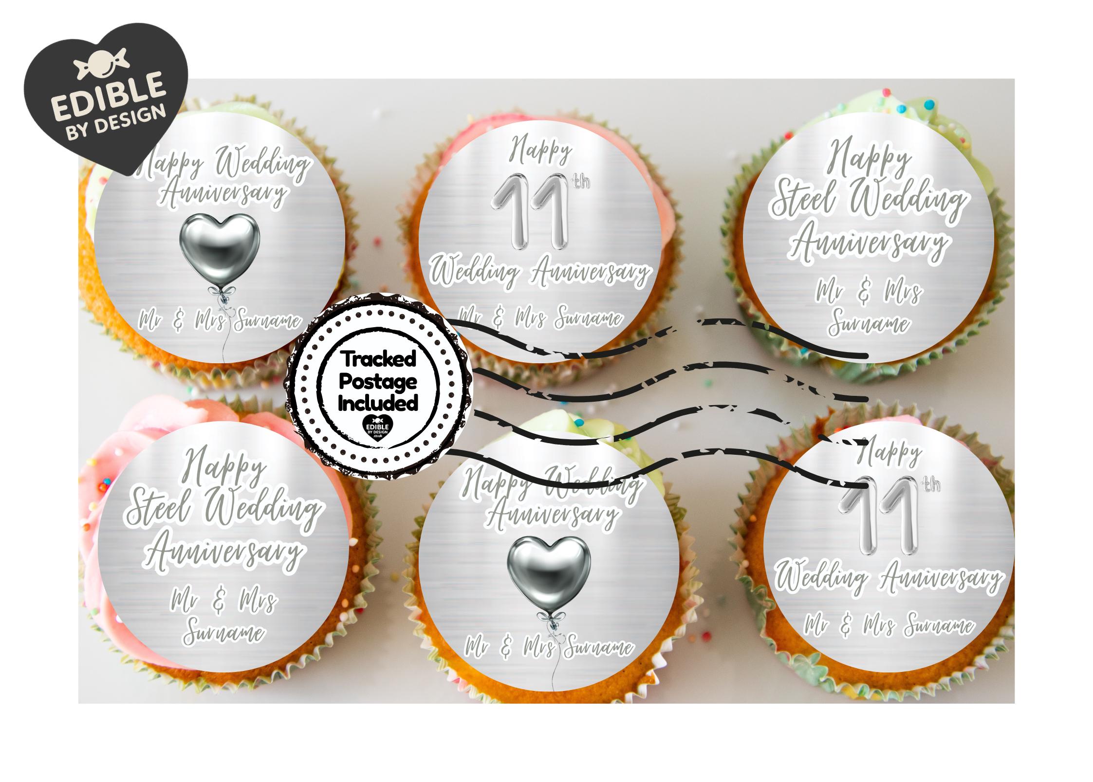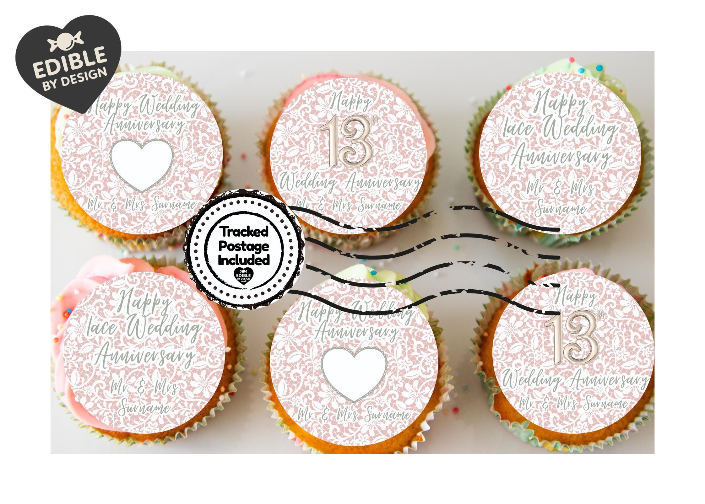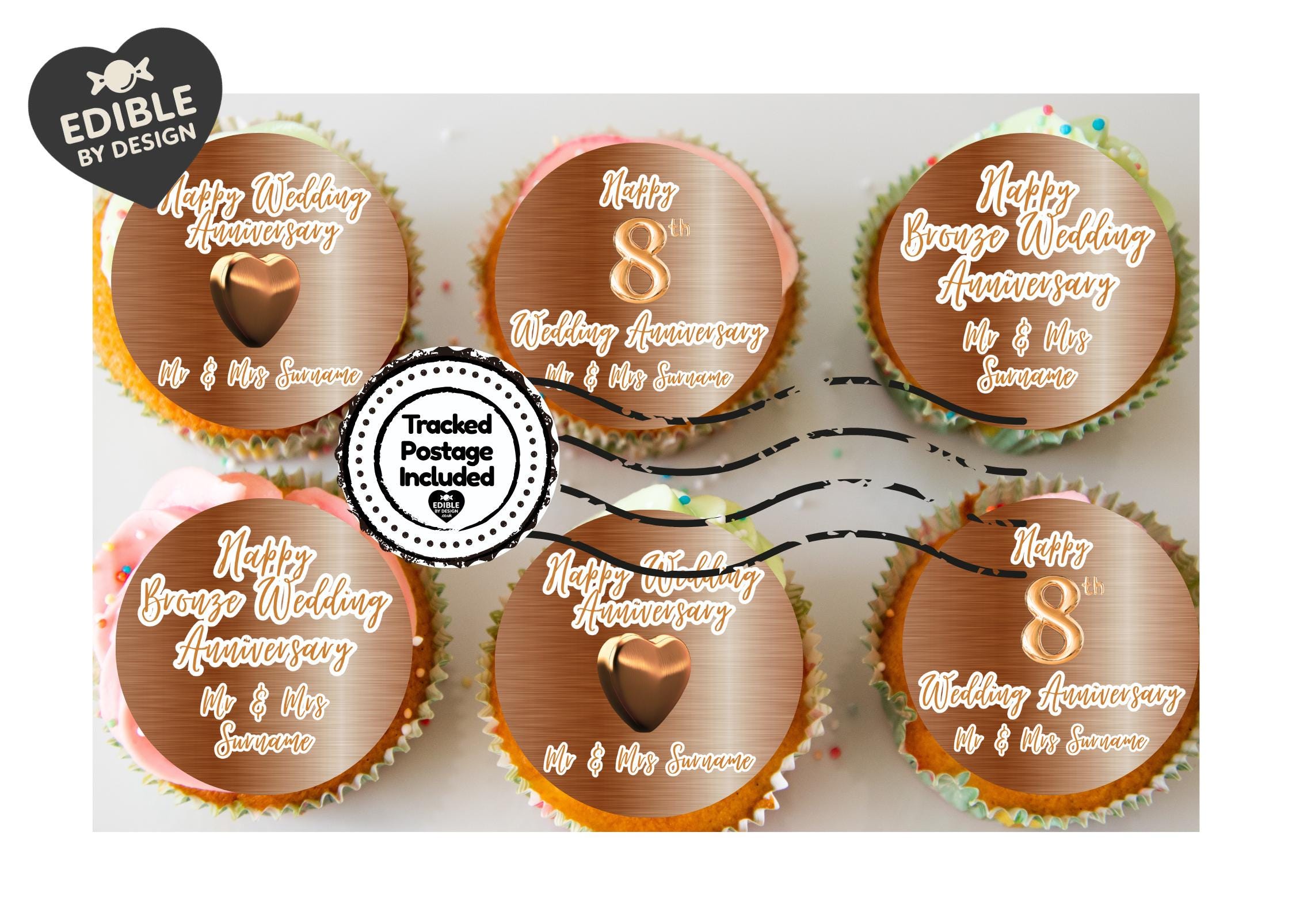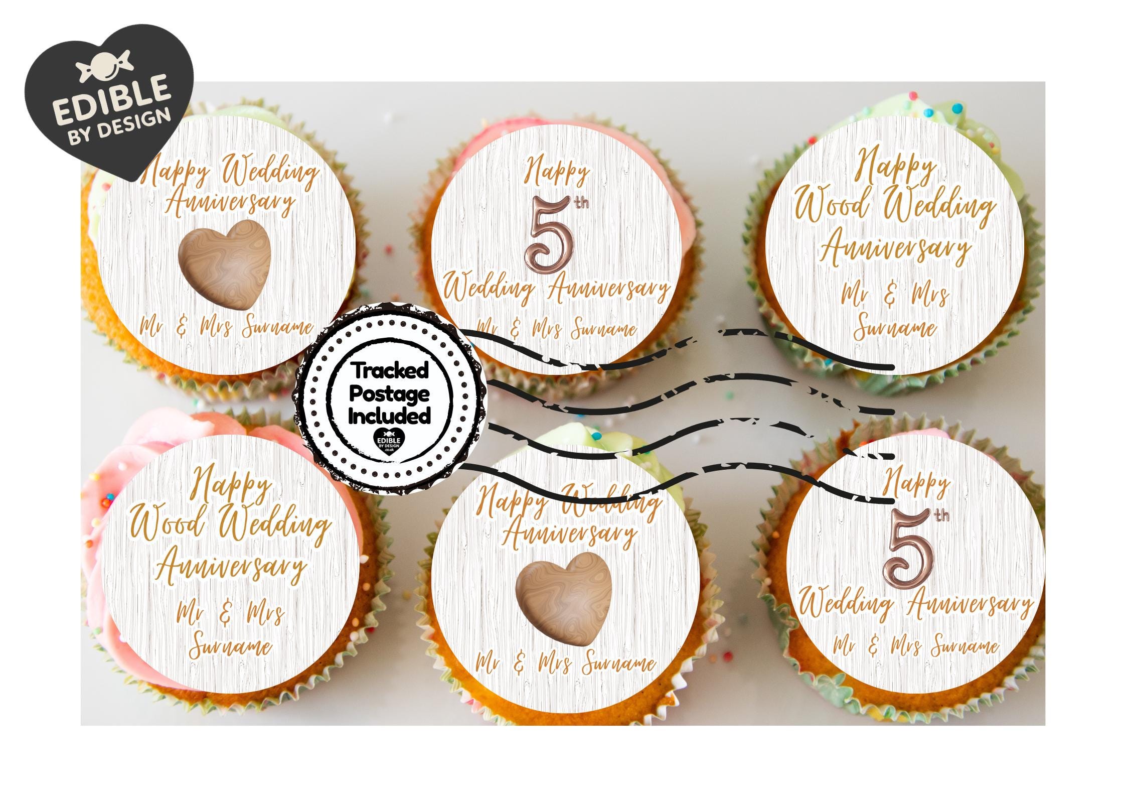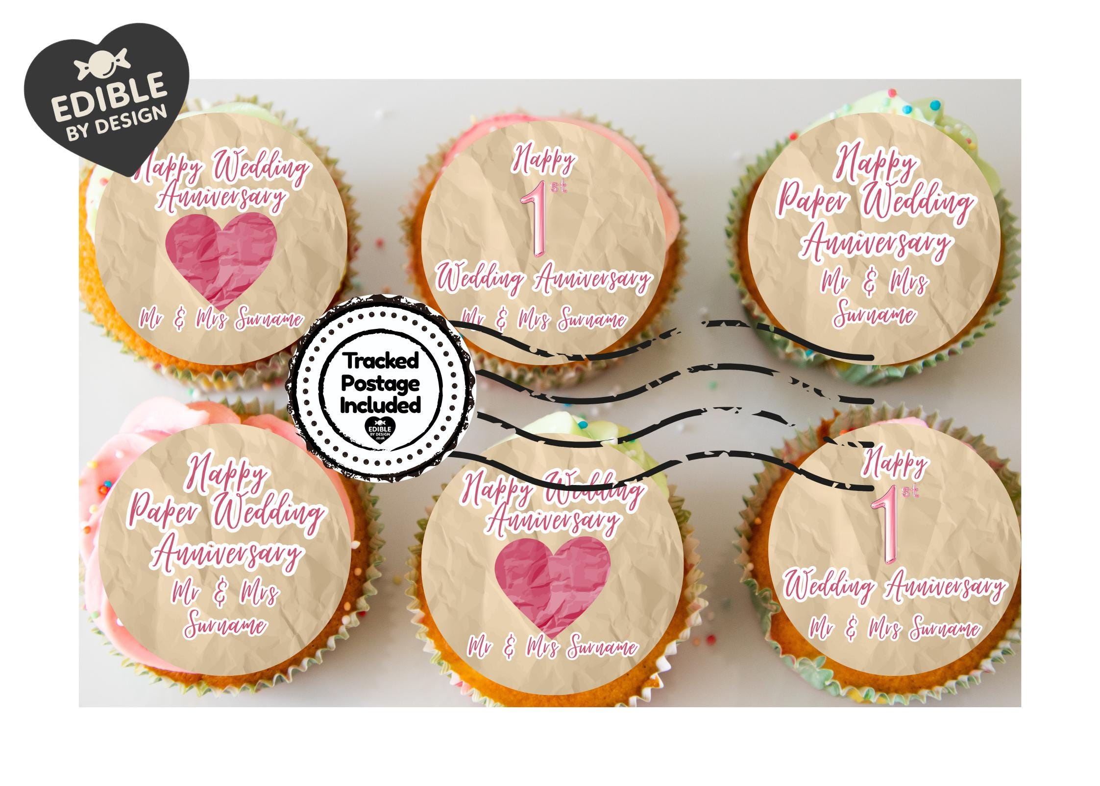 Precut Personalised Cake Toppers with edible ink. Gorgeous Traditional Wedding Themes for anniversaries 1 year through to 15 plus a no years option. Any design can be amended as required.