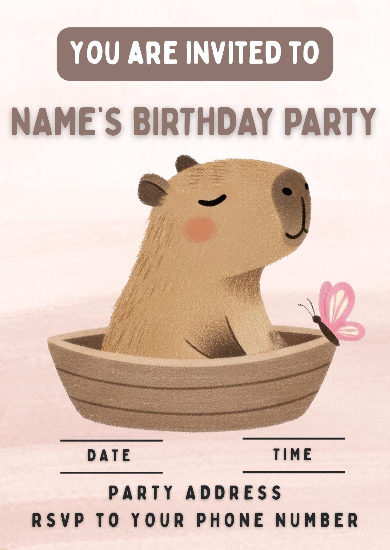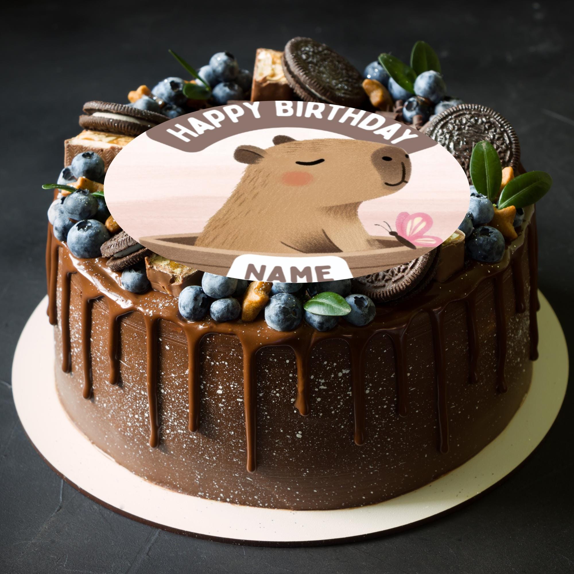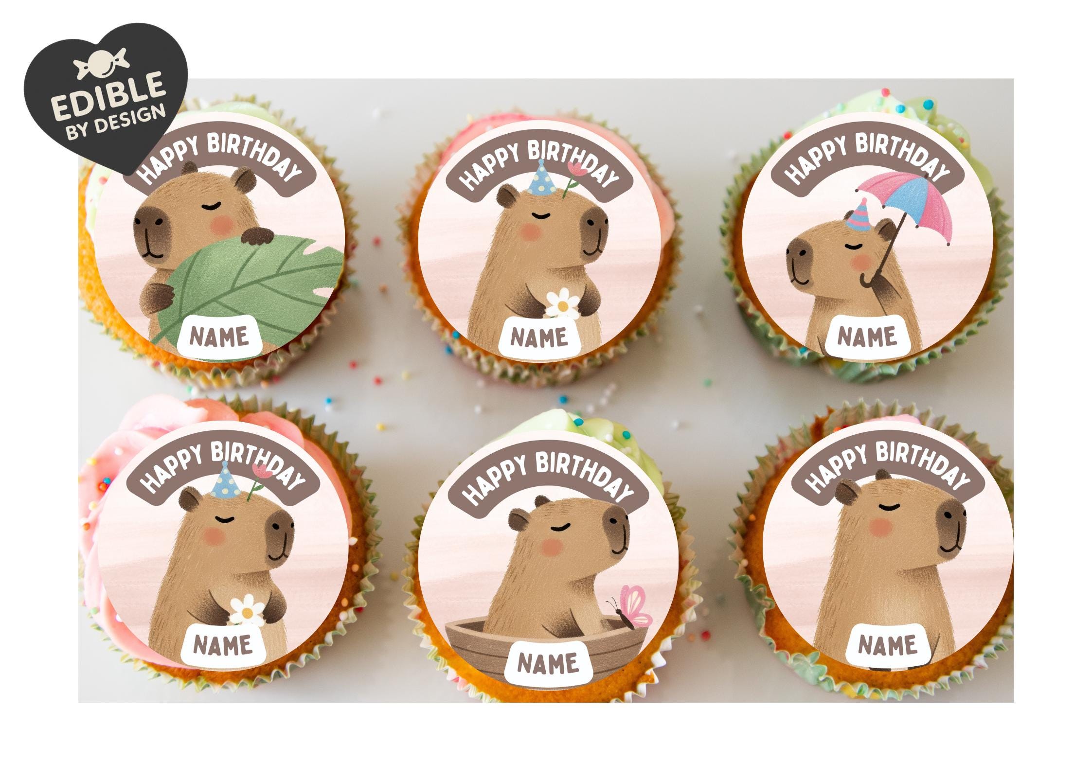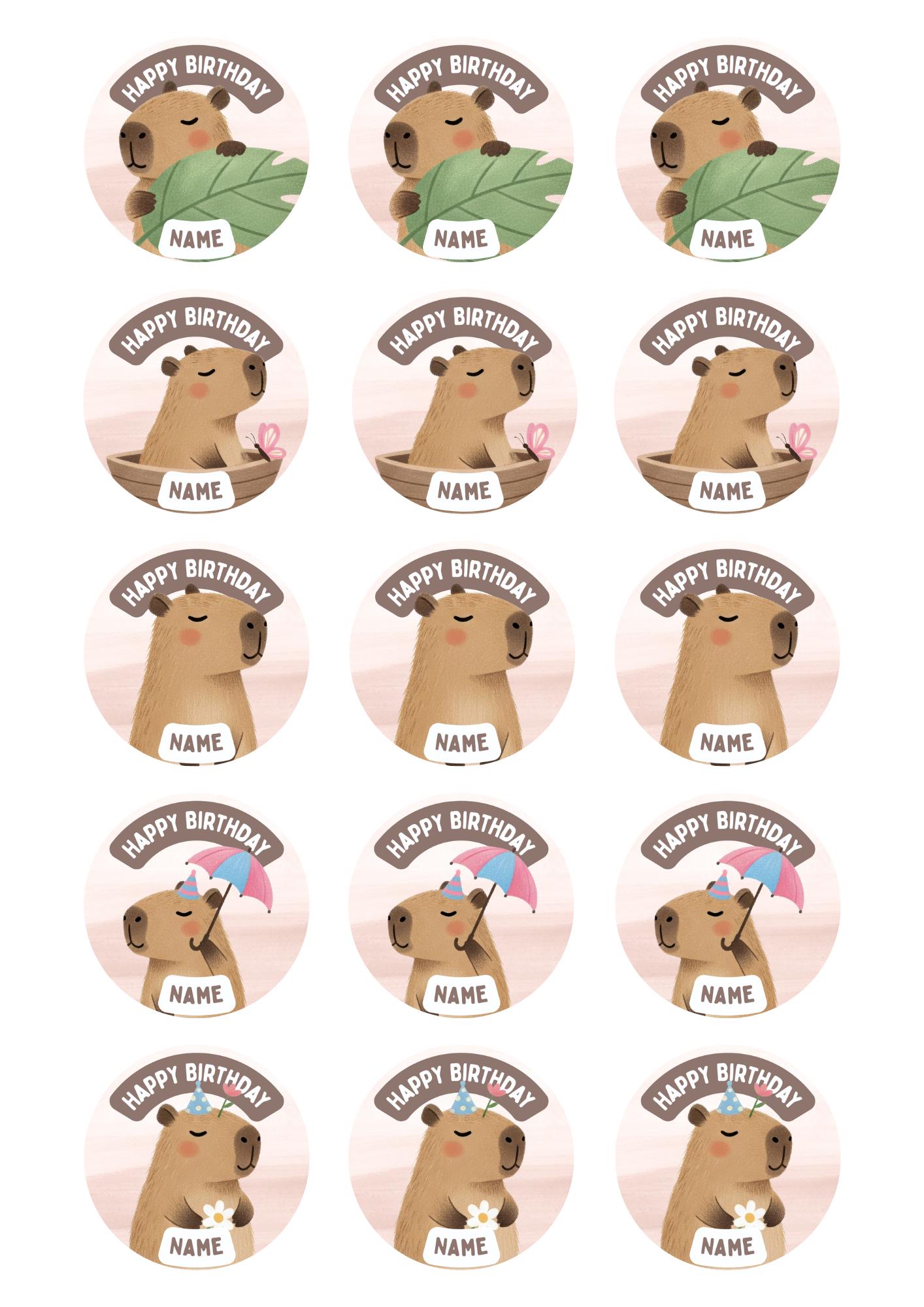 Cute Capybara Theme Cupcake Toppers. Personalised with your choice of name and age.