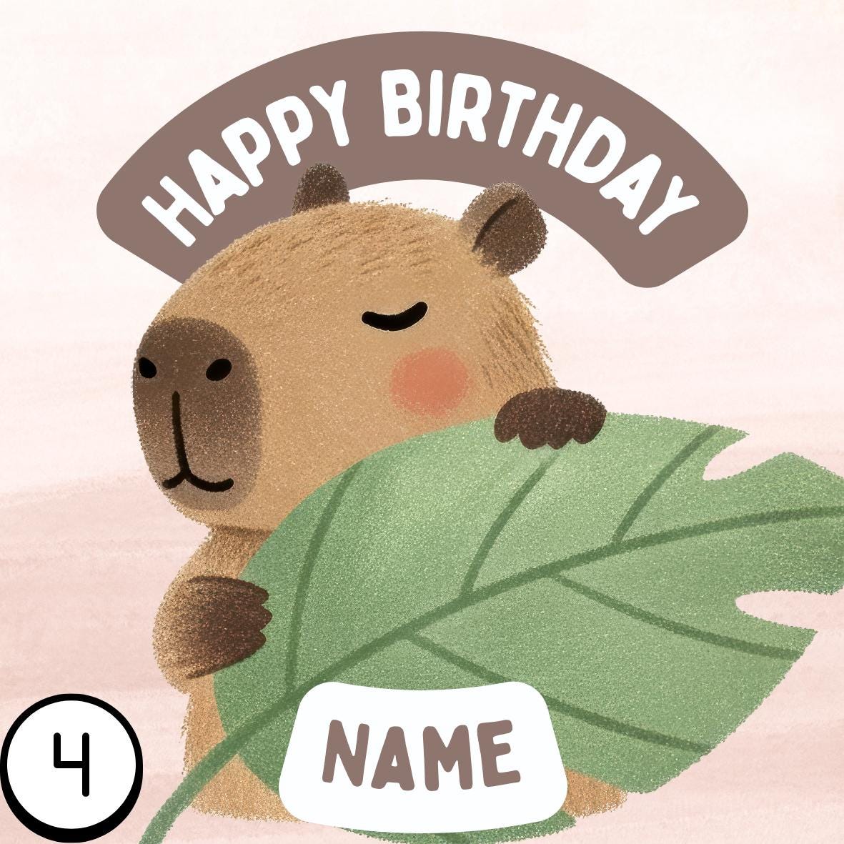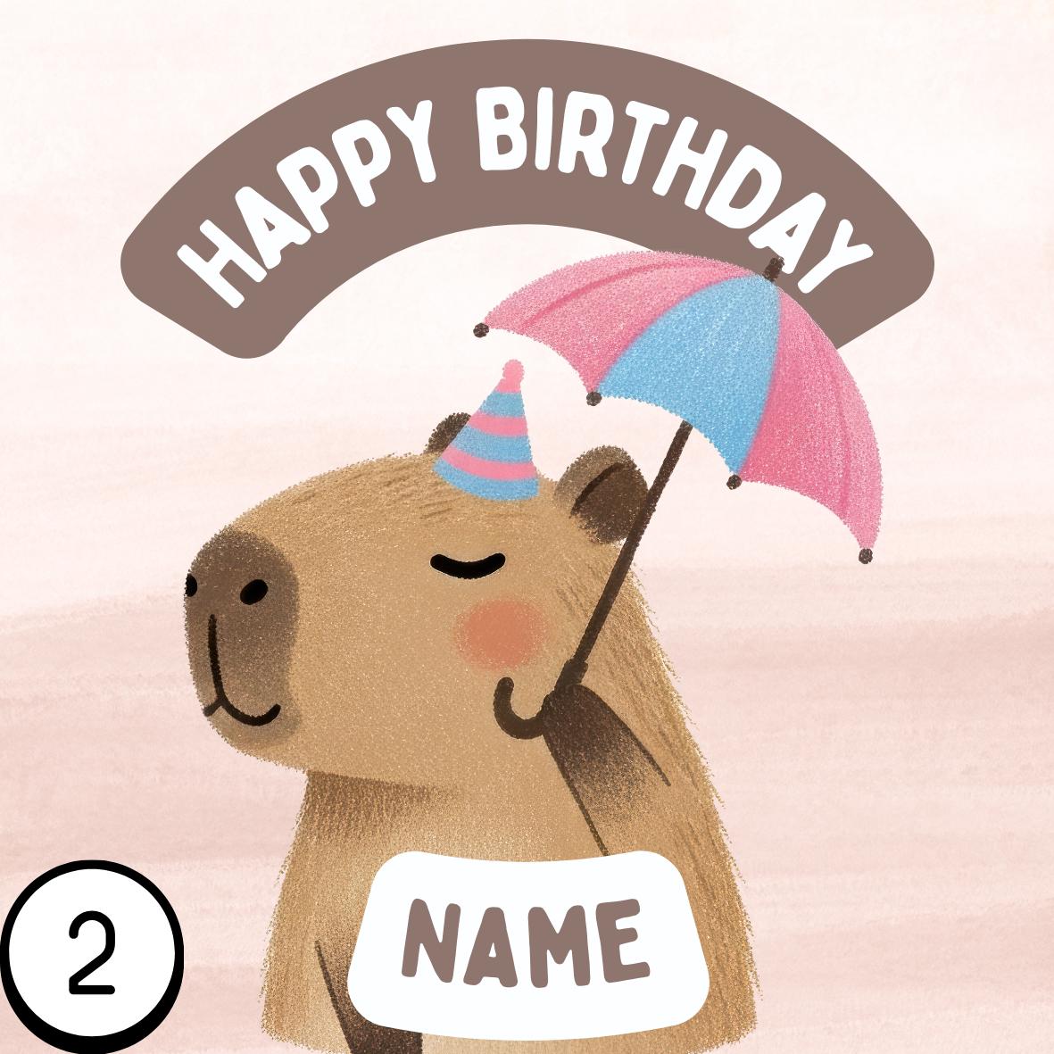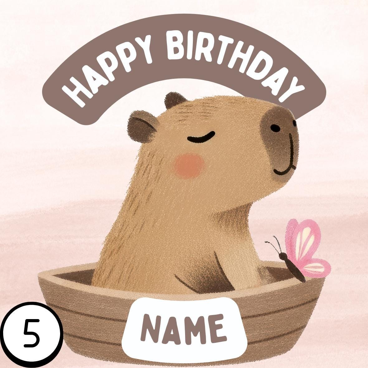 Cute Capybara Birthday Party Theme Large Round Cake Topper/s. Personalised with your choice of name and age.