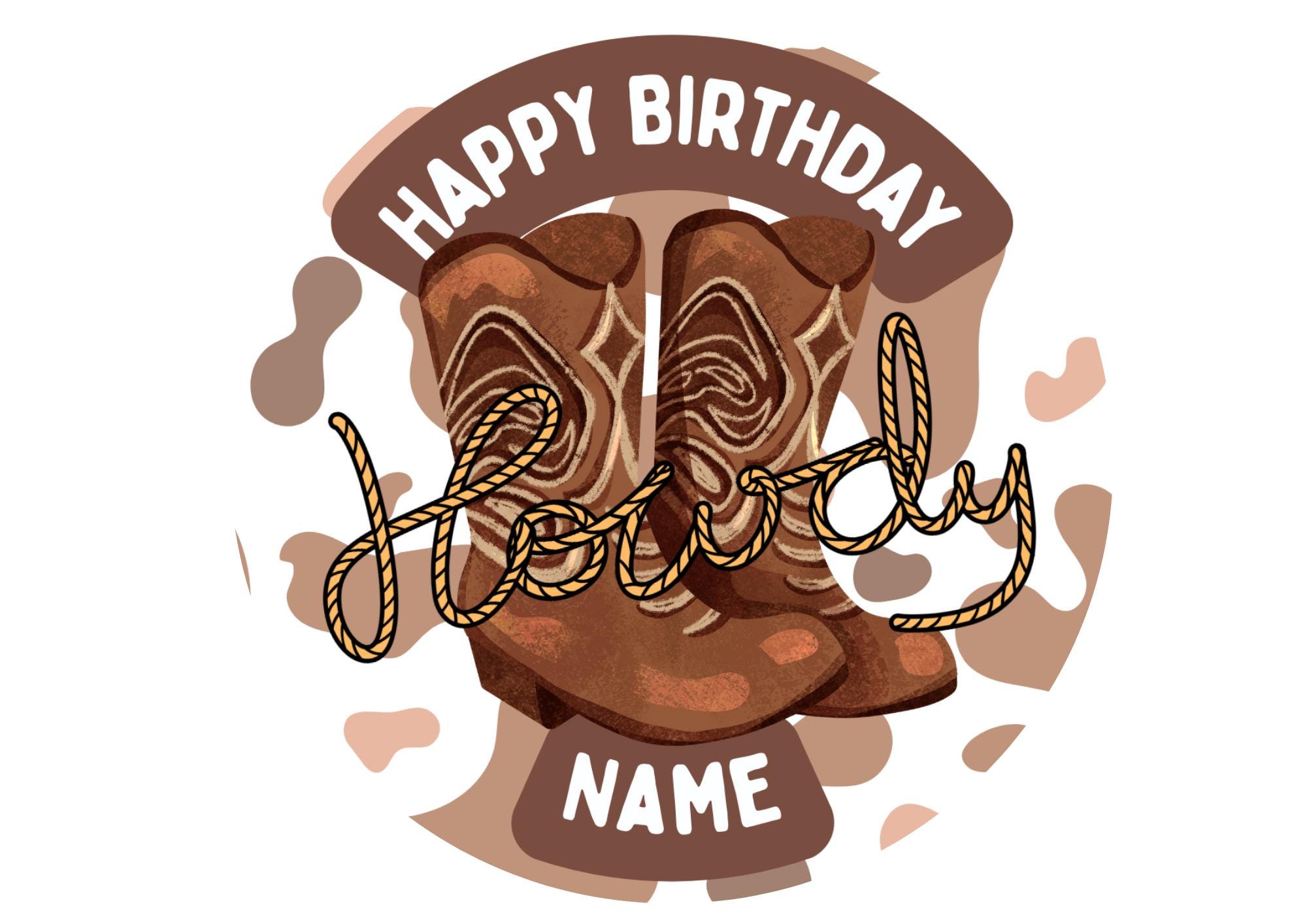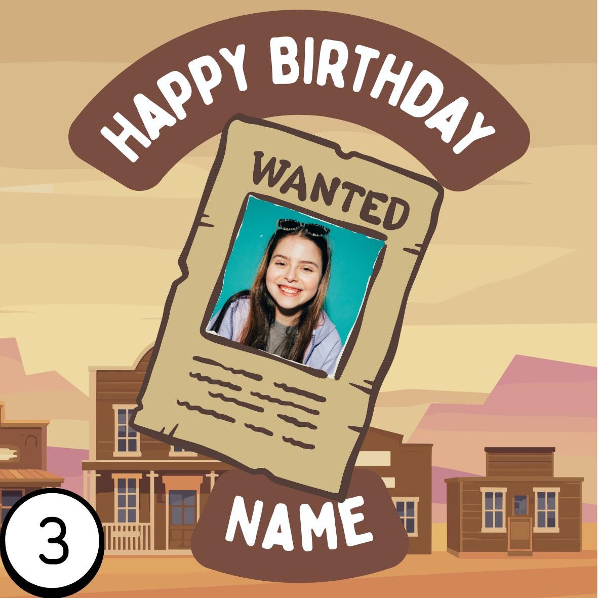 Wild West Rodeo Birthday Party Theme Large Round Cake Topper/s. Personalised with photo, name and age.