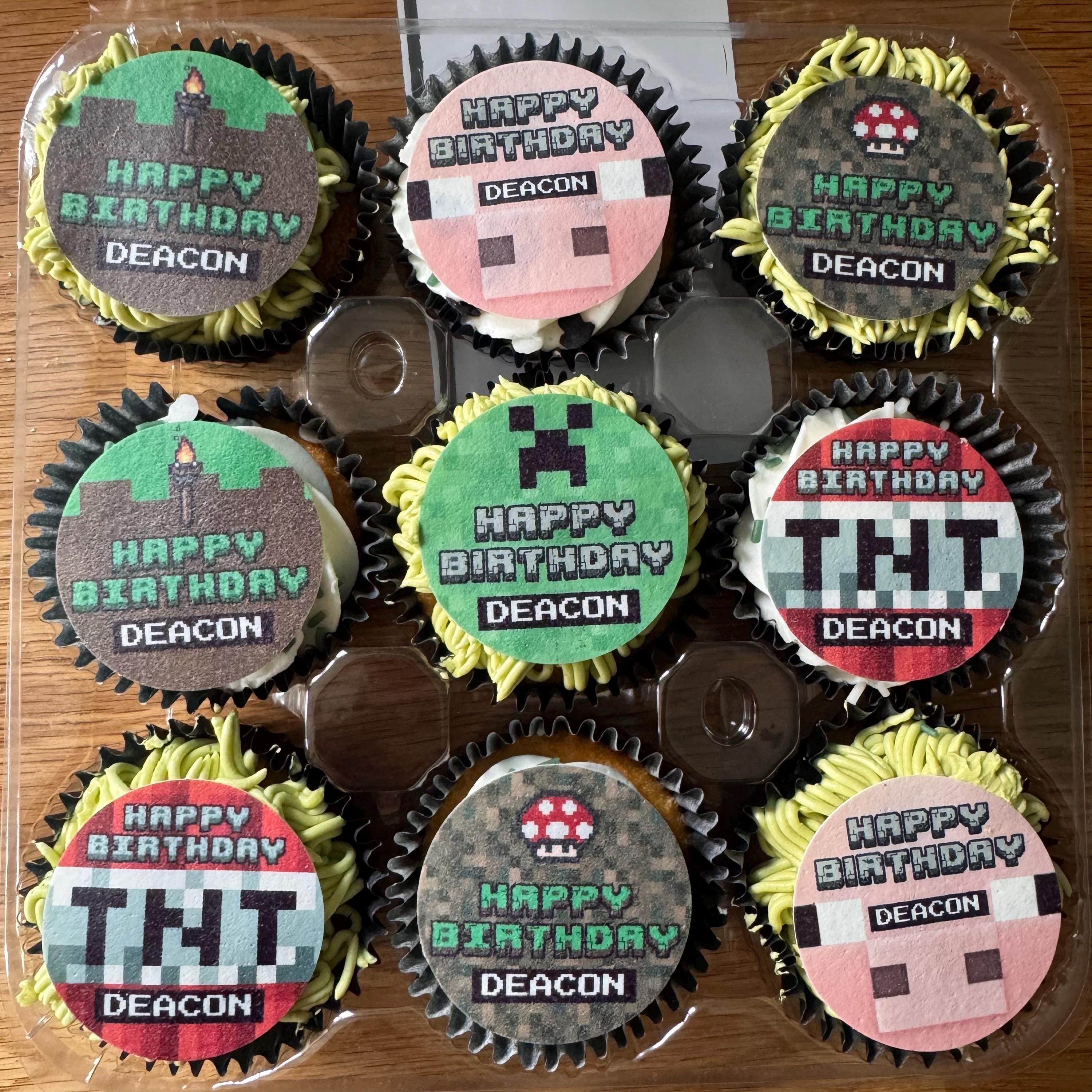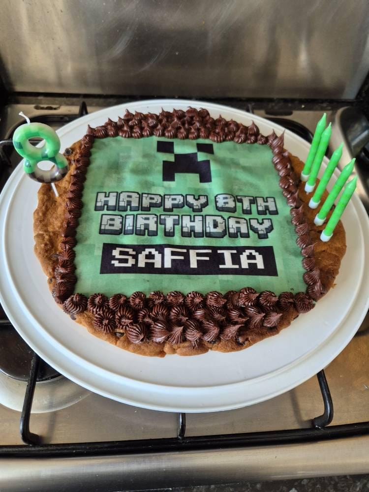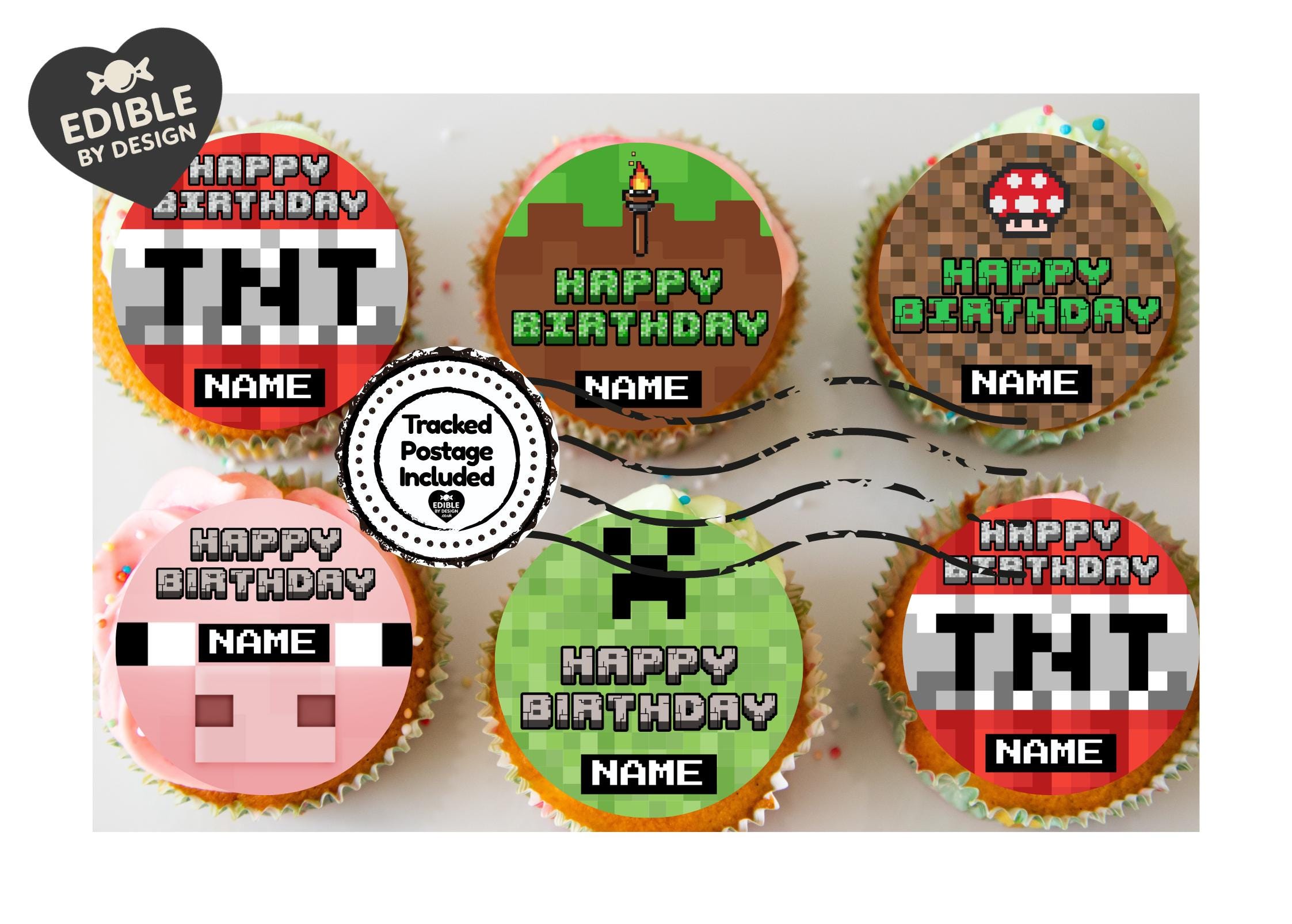 Pixel Gamer Mine Craft theme, personalised with your choice of name and age.