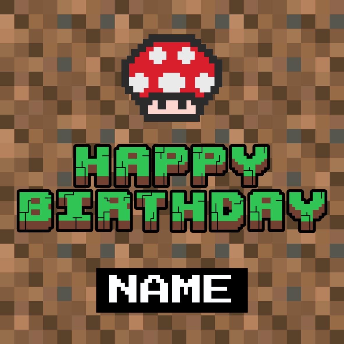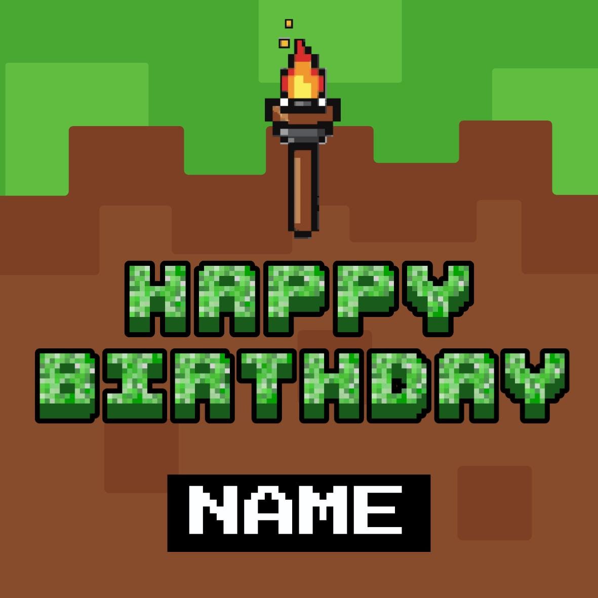 Pixel Gamer Mine Craft theme, personalised with your choice of name and age.