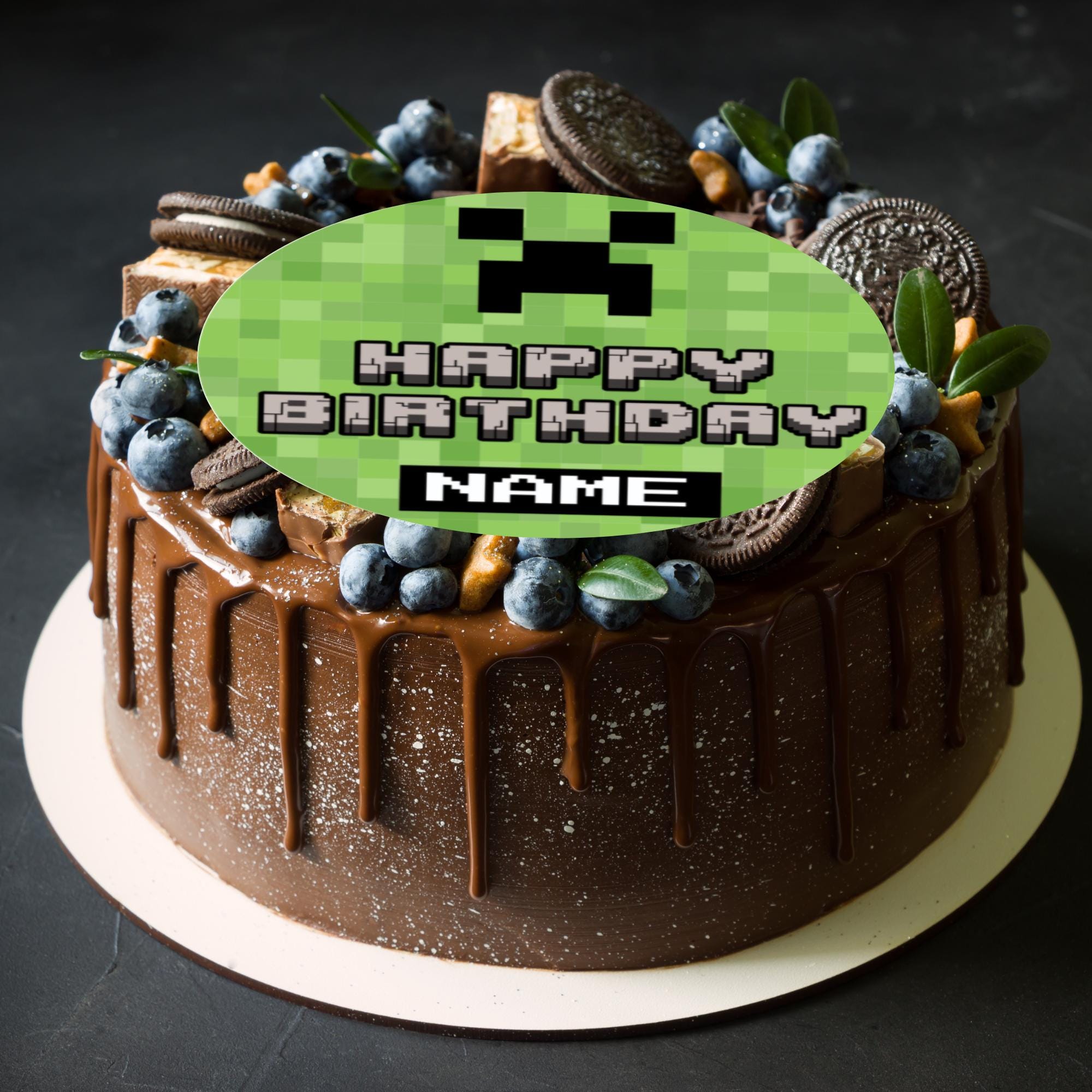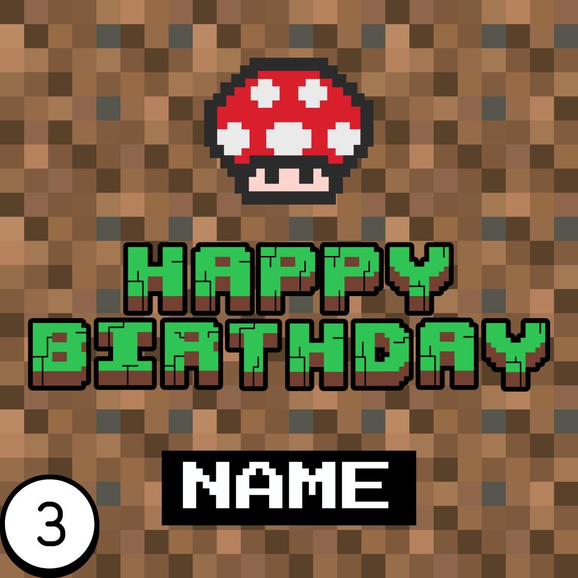 Pixel Gamer Theme Cake Topper personalised with your choice of name.