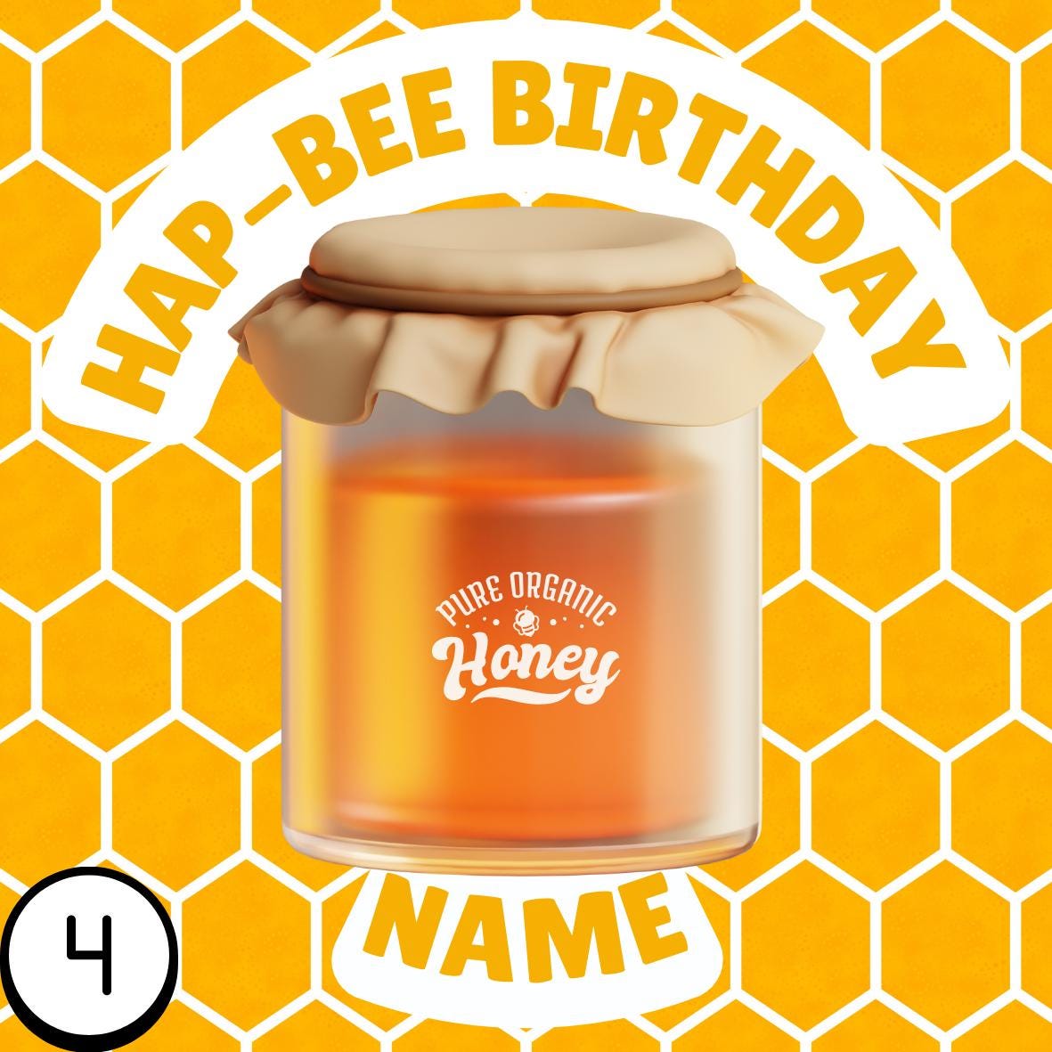 Honey Bee Round Birthday Party Theme Cake Topper. Personalised with your choice of name and age.