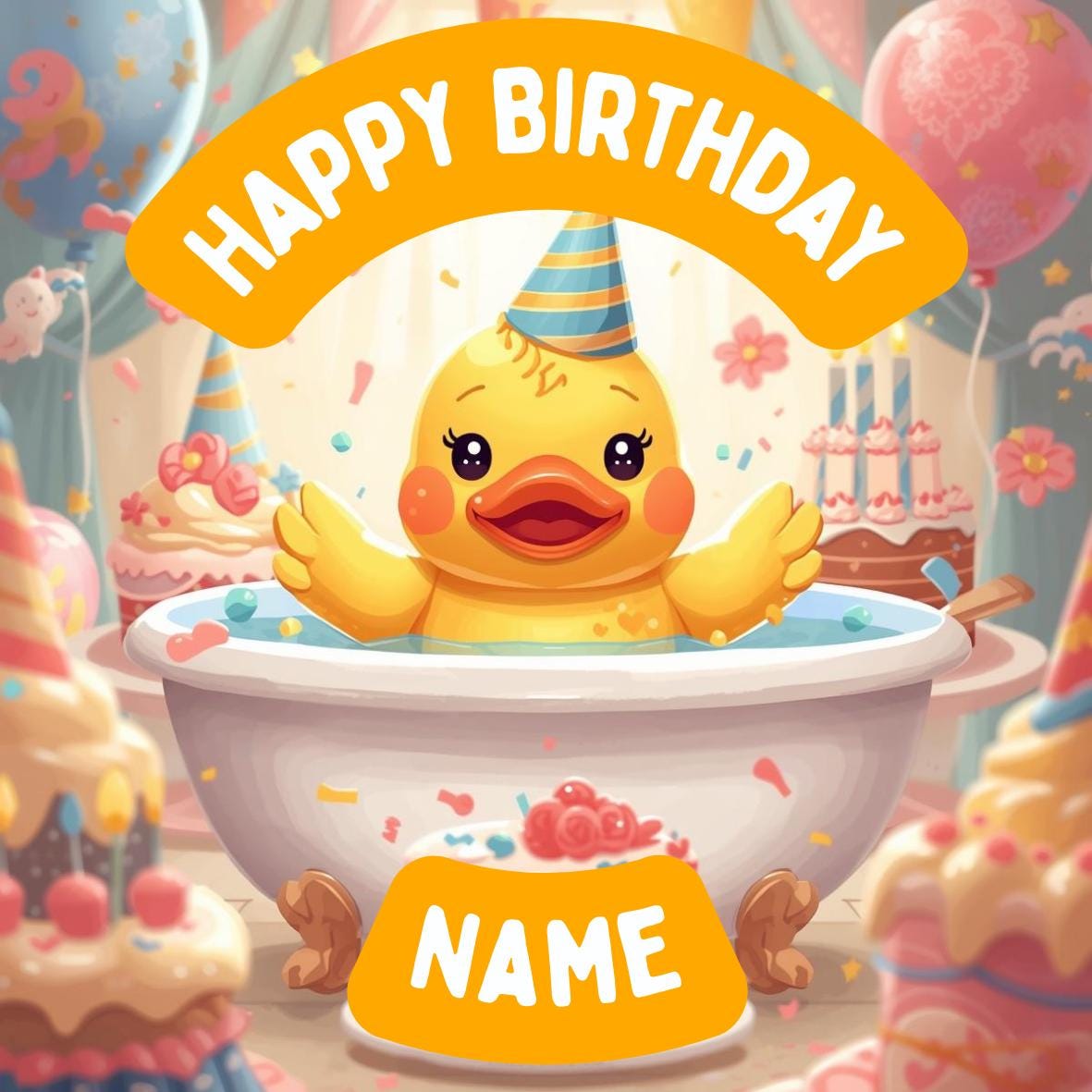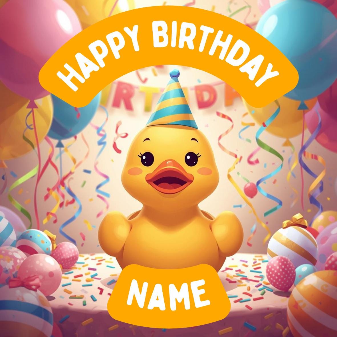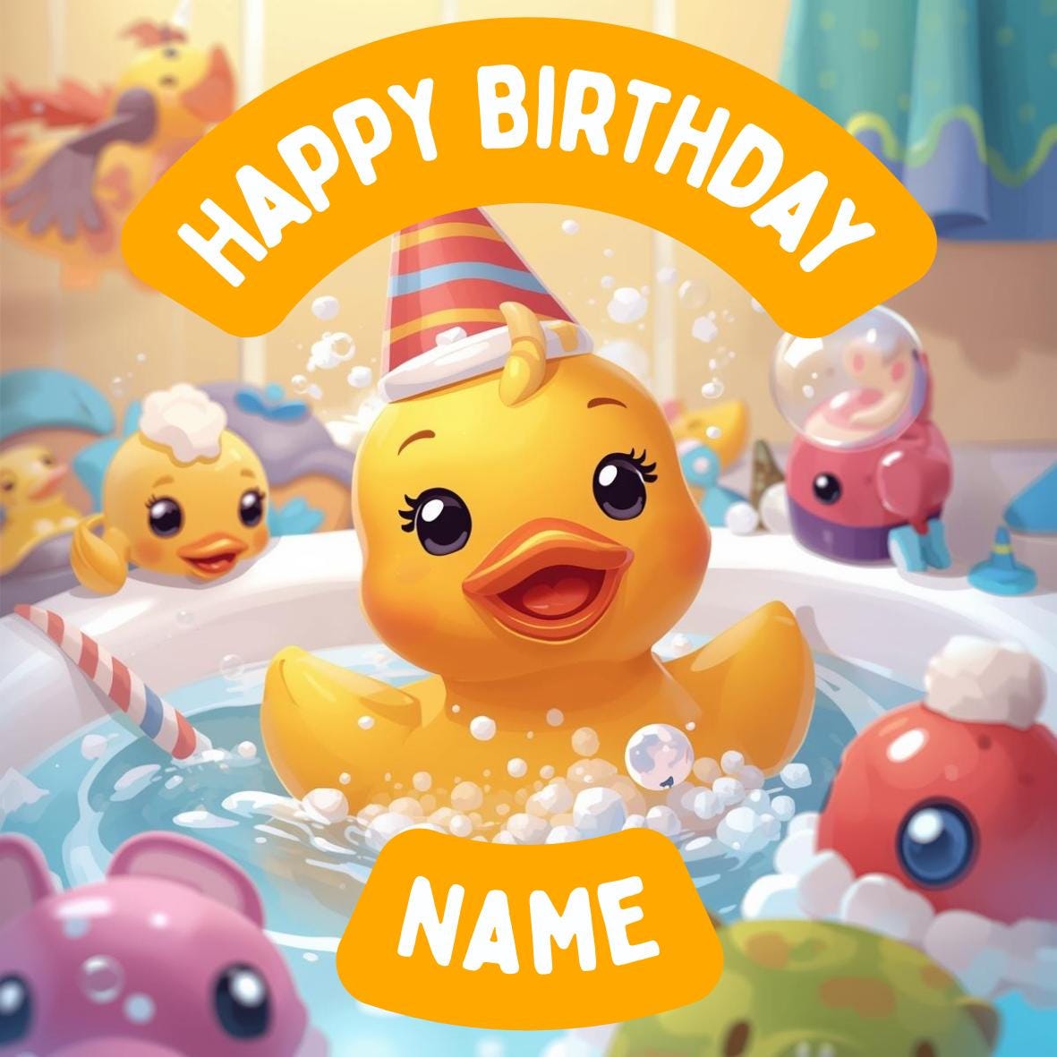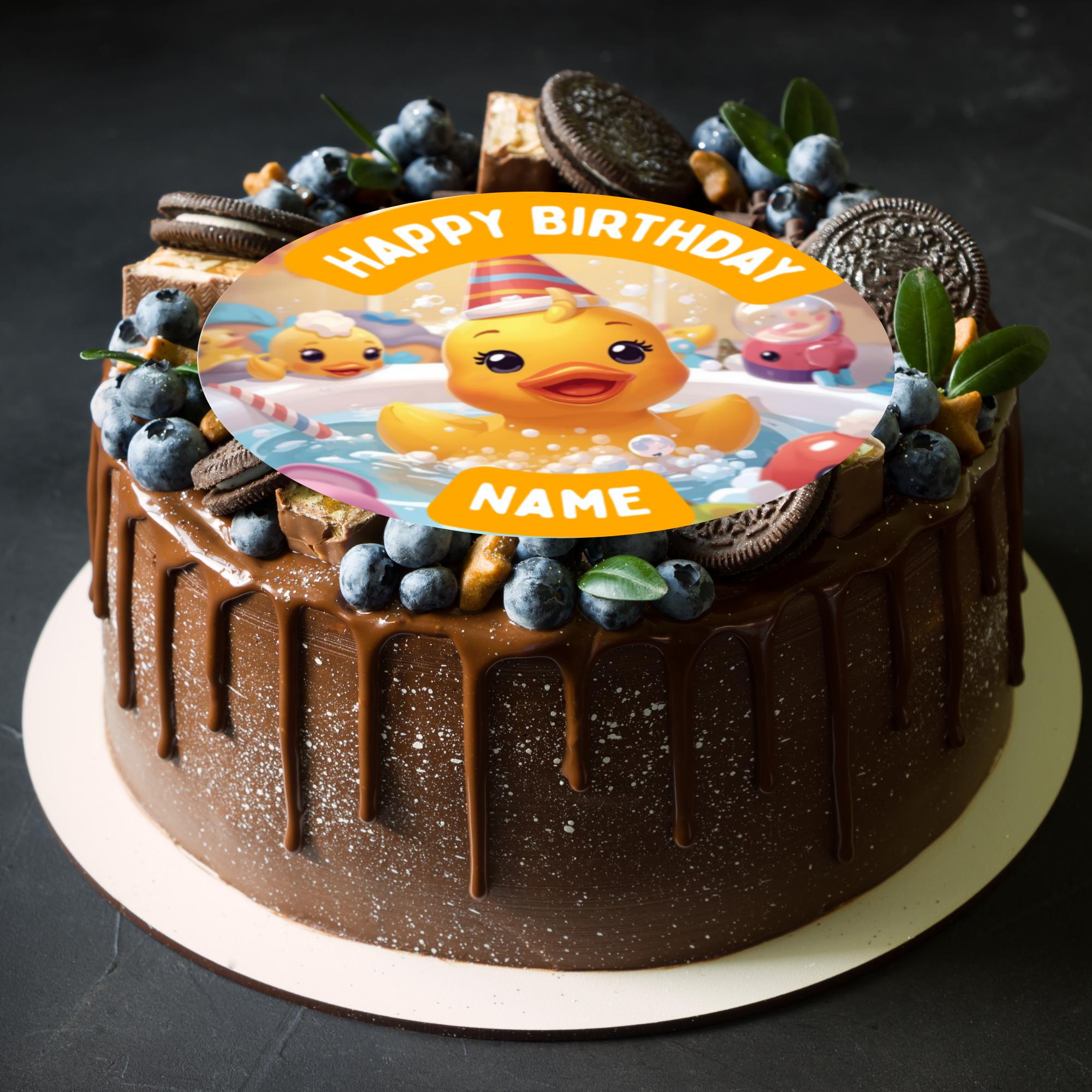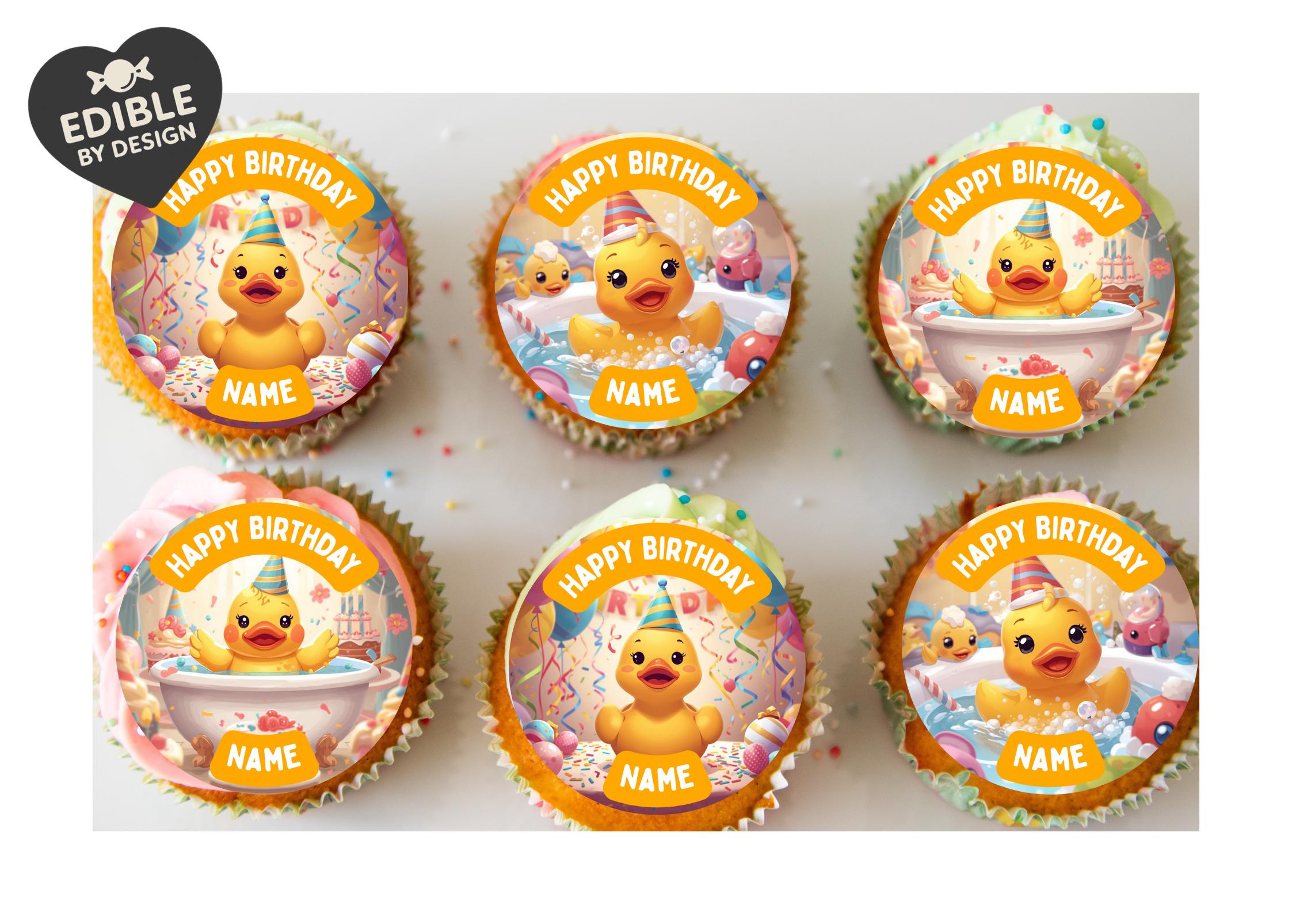 Cute Rubber Duck Birthday Party Theme Cake Toppers. Personalised with your choice of name and age.
