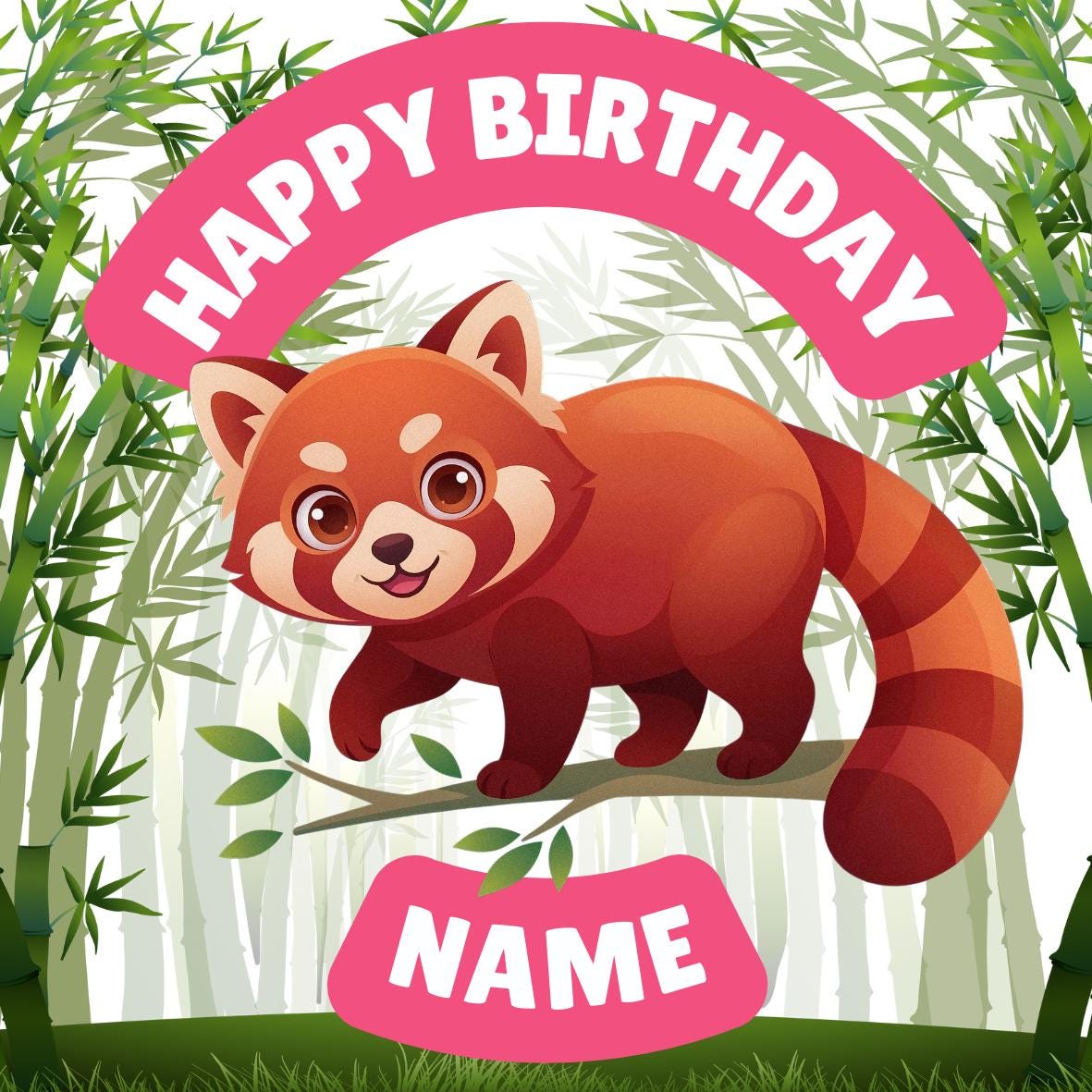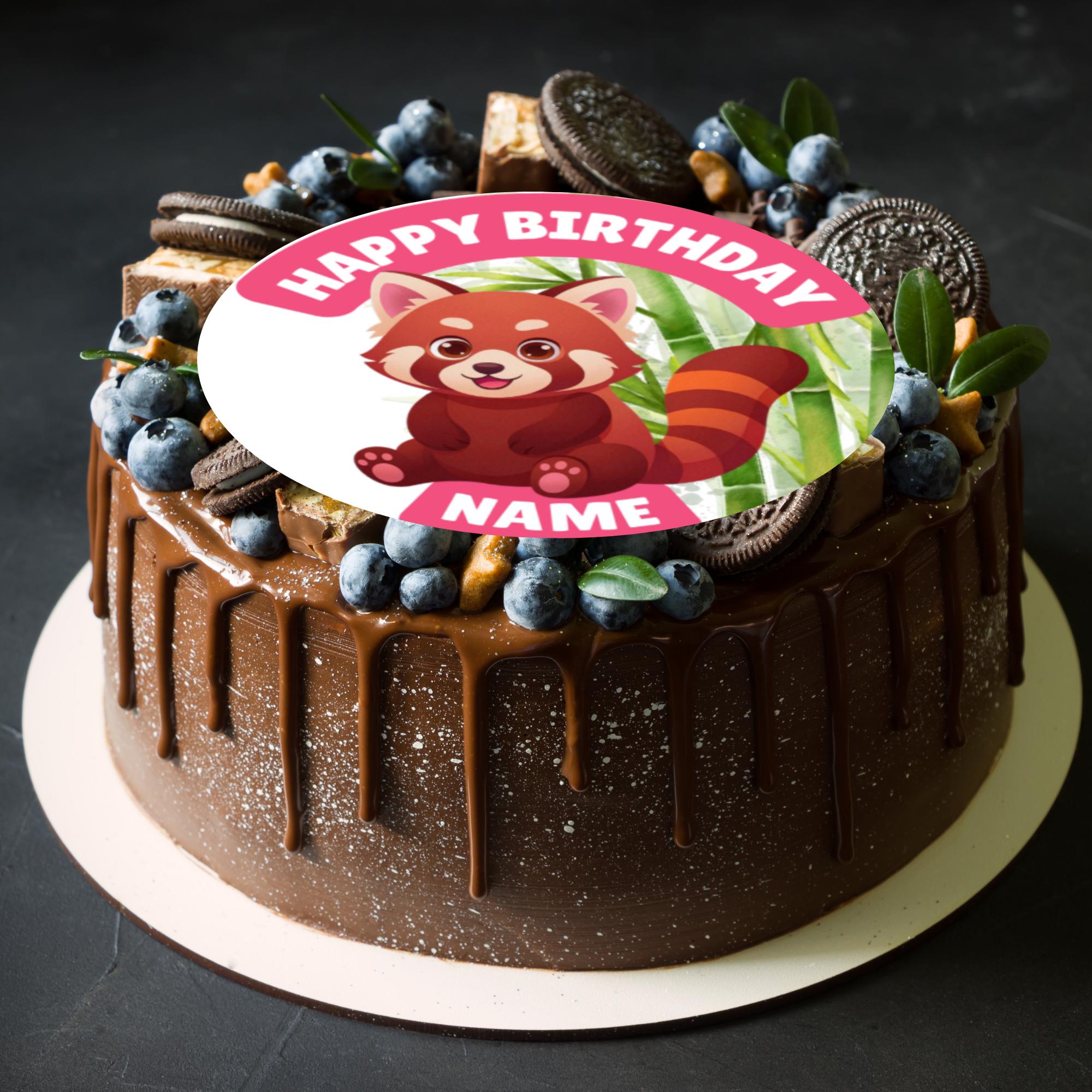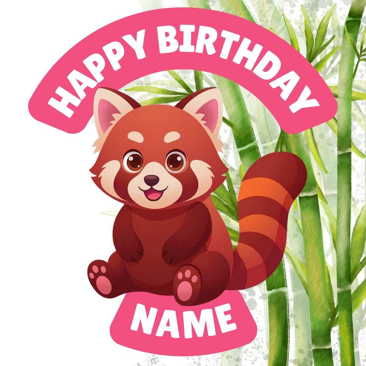 Red Panda Bamboo theme, personalised with your choice of name and age. Precut Personalised Cake Toppers with edible ink. Also available matching Invitations, Stickers, Foil Balloon and complete party pack.