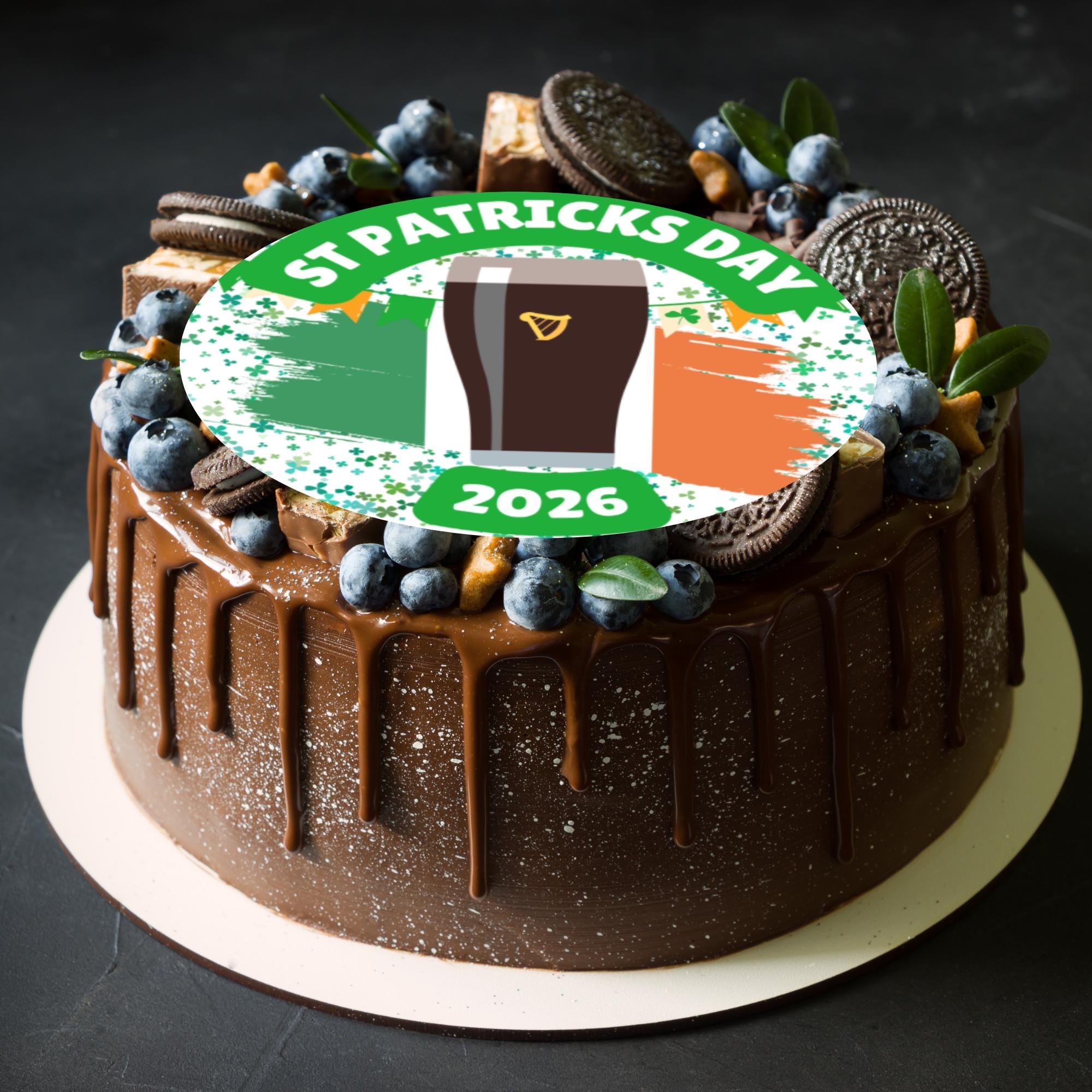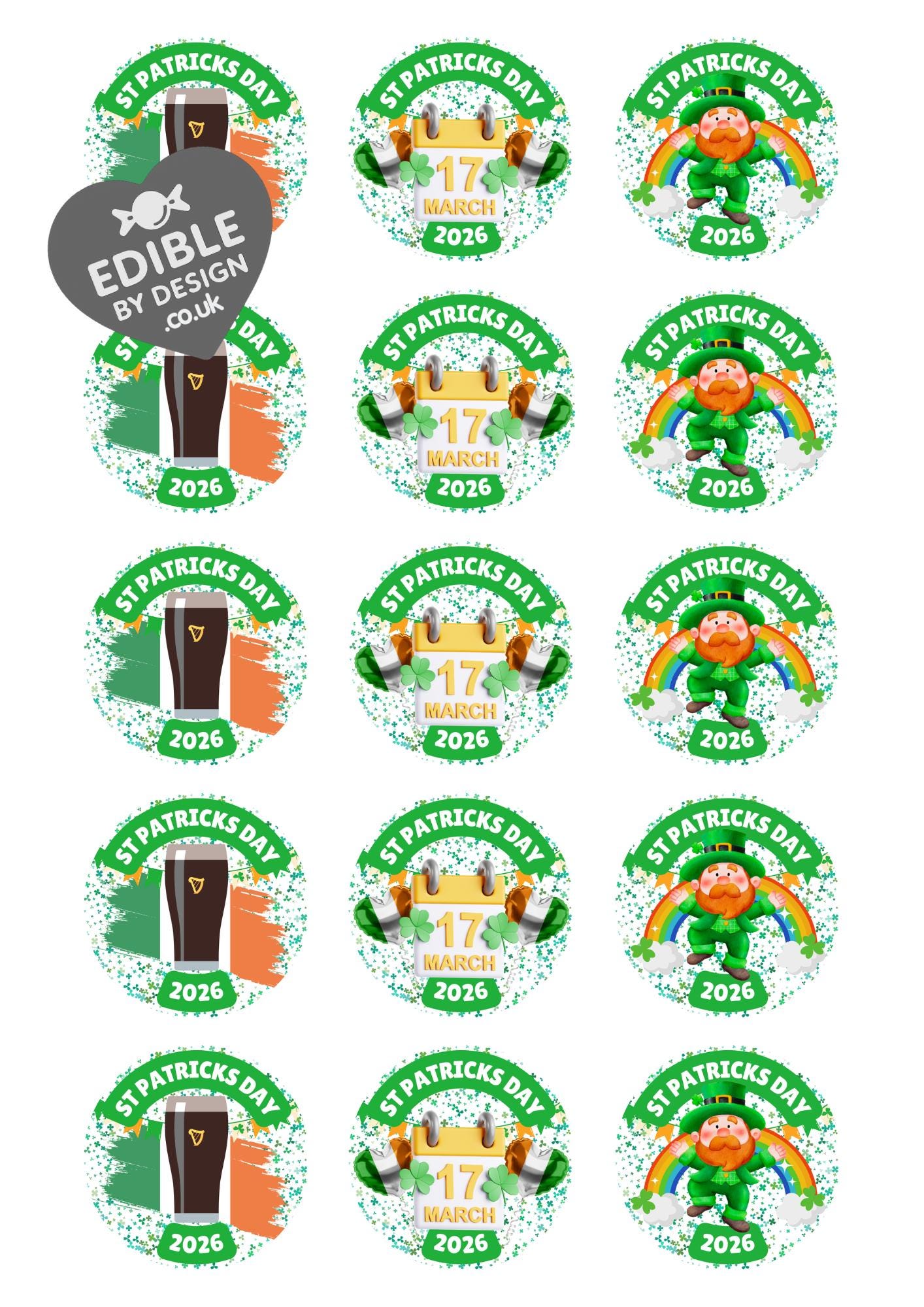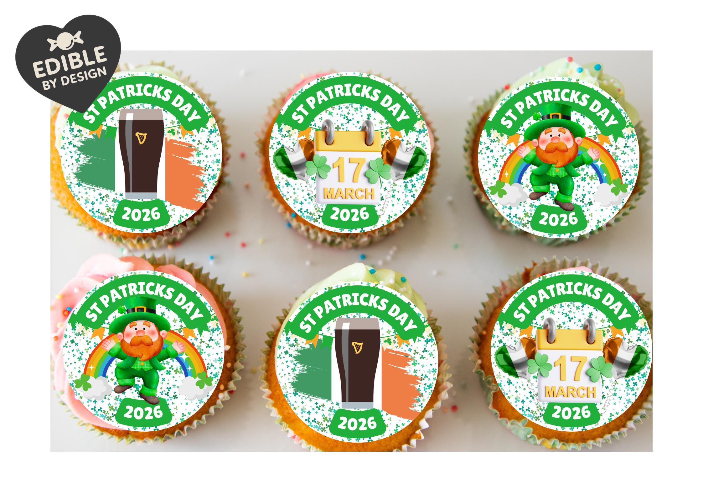 Pre-cut Cake Toppers with edible ink. St Patricks Day theme Cake Toppers. Matching Balloon and Stickers available.