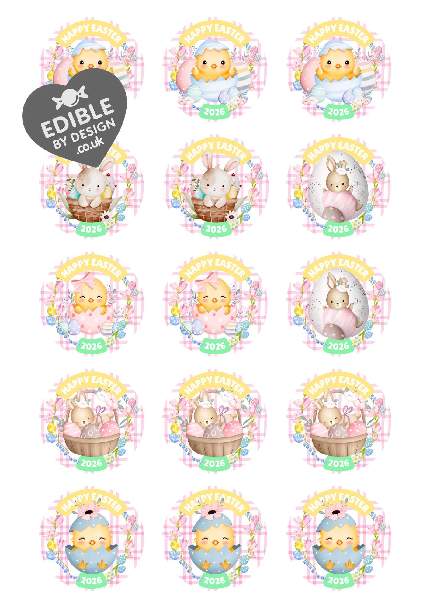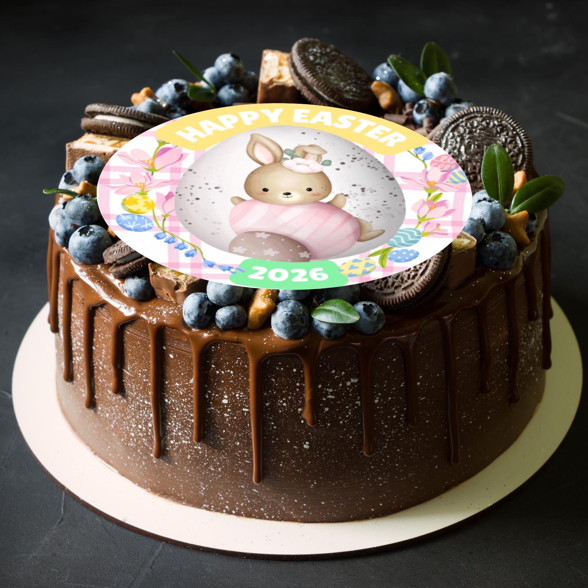 Pre-cut Cake Toppers with edible ink. Choice of 3 different Easter theme Cake Toppers. Matching Balloon and Stickers available.