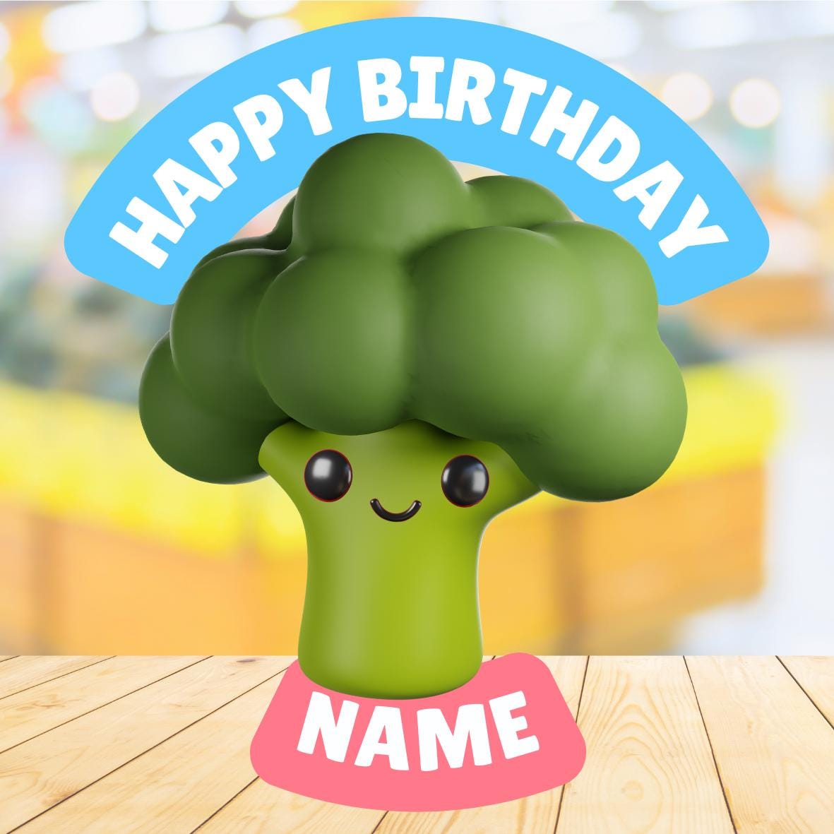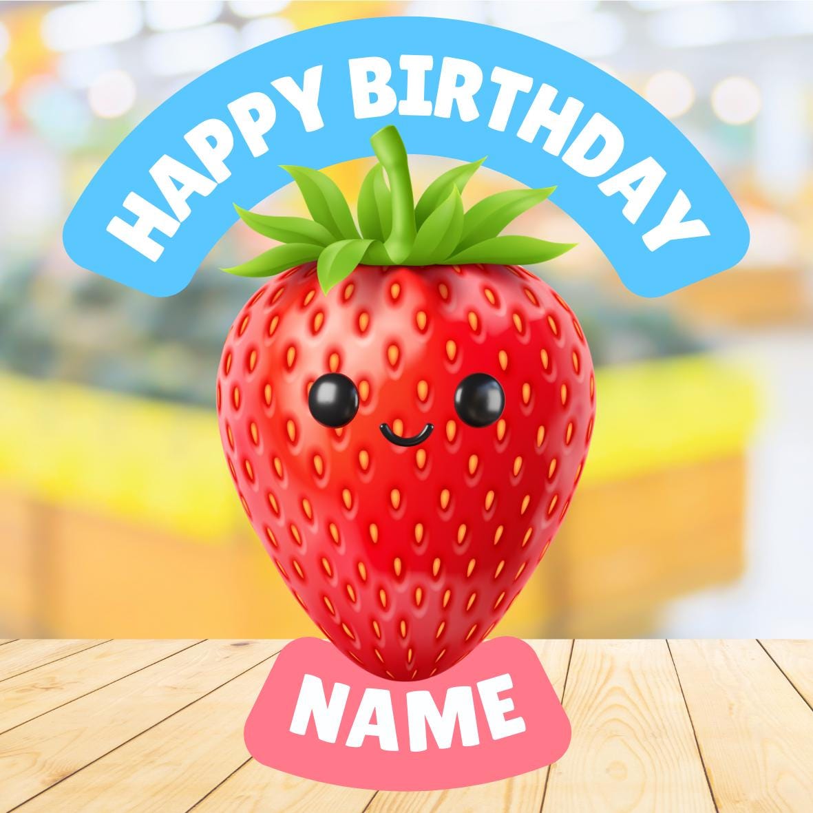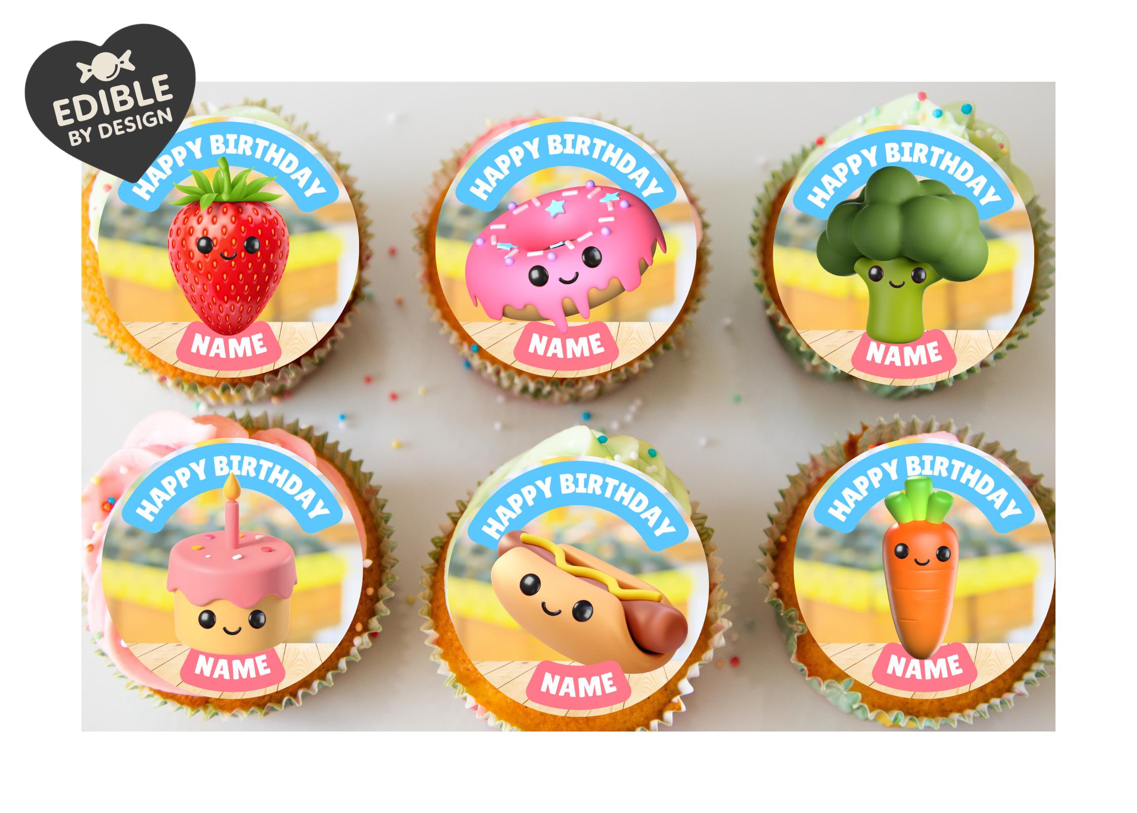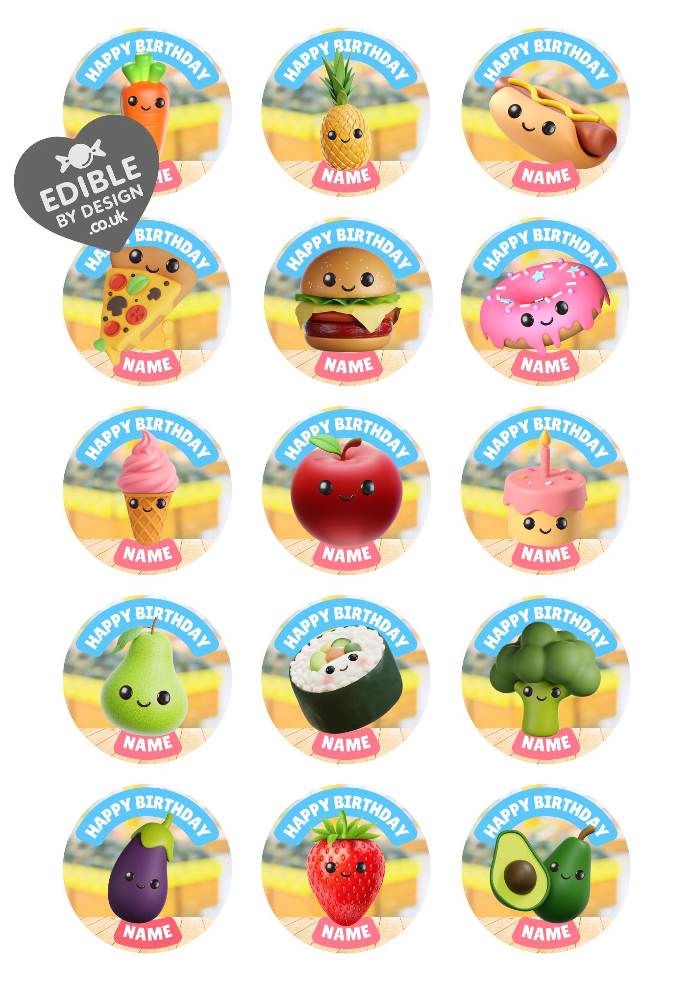 Cute Food - Fruit, Veg, Cake, Fast Food Theme Cake Toppers. Features your choice of age and name.
