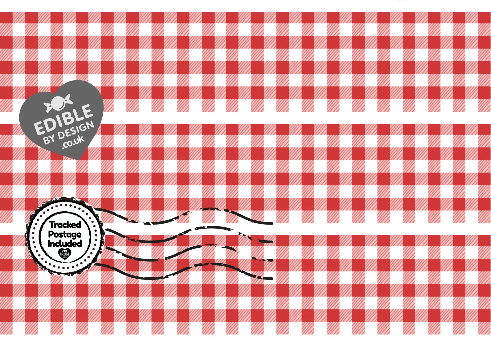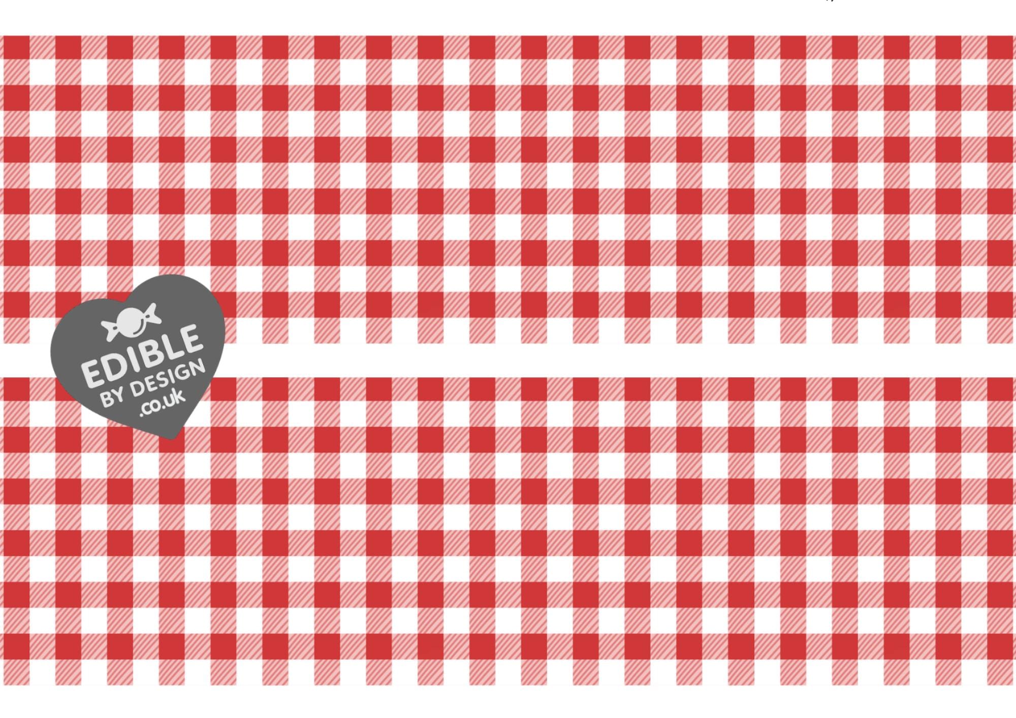 Gingham Check Ribbon Border Edging for Cakes printed with edible ink on a flexible Icing or Premium (Smoother, Whiter) Icing Sheet.