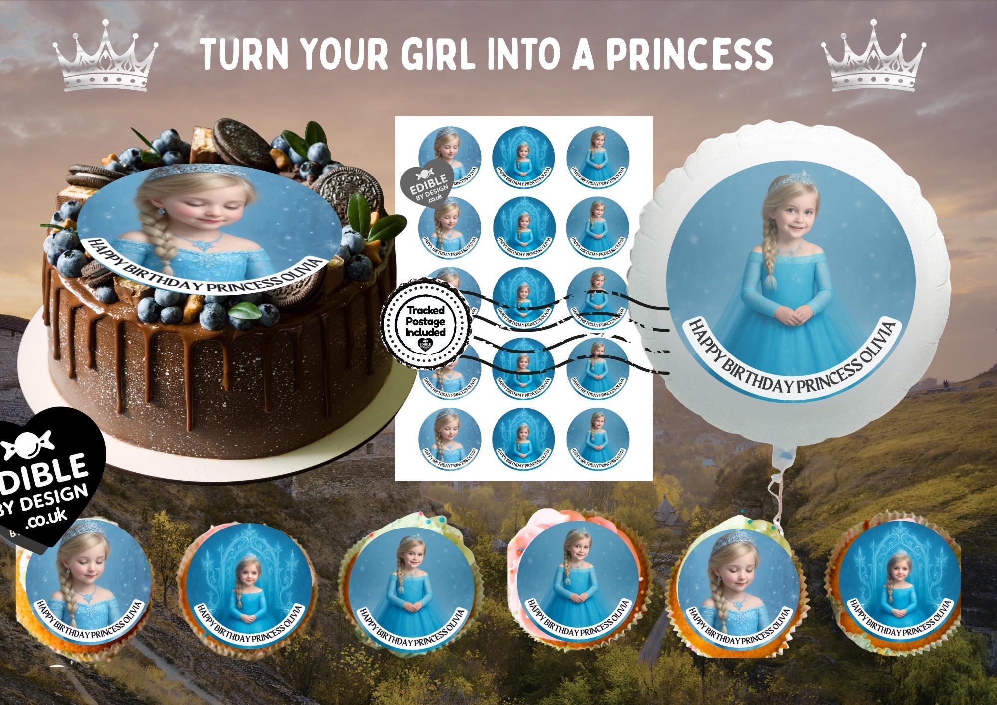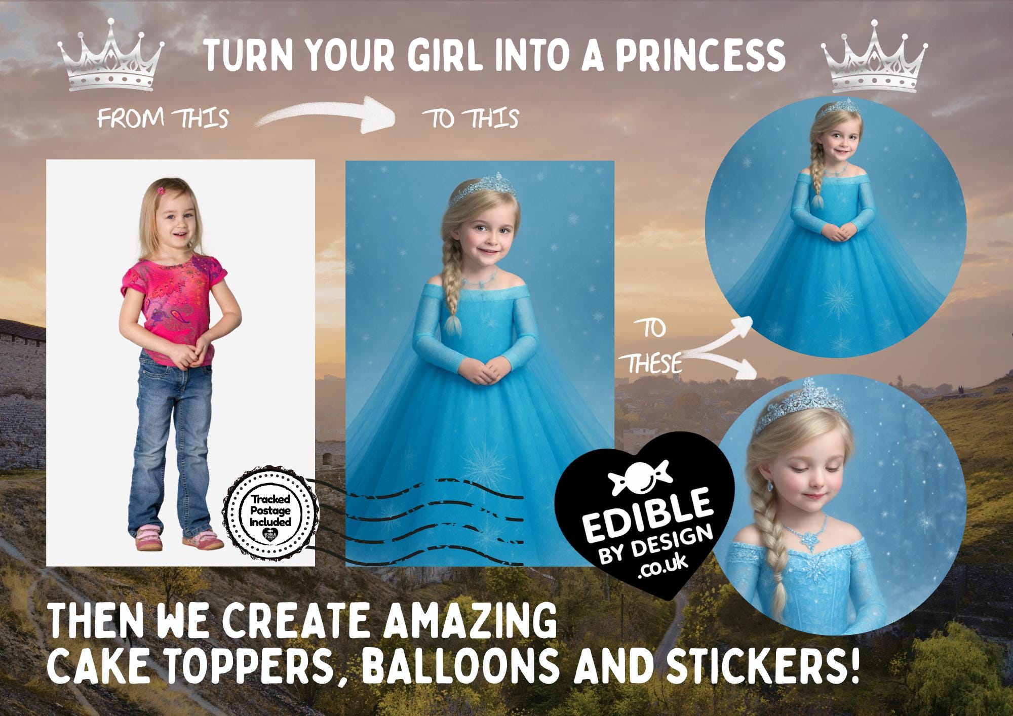 Photo Transformation to Ice Princess Cake Toppers. Personalised with your photo transformed into an Ice Princess, name and age. Send your photo via message to the seller.