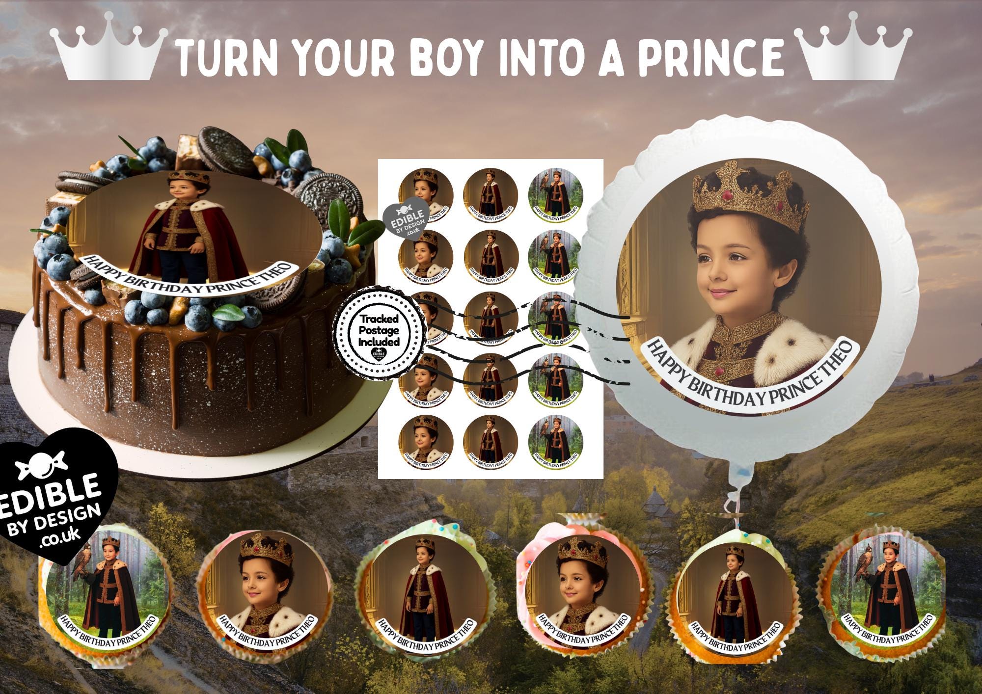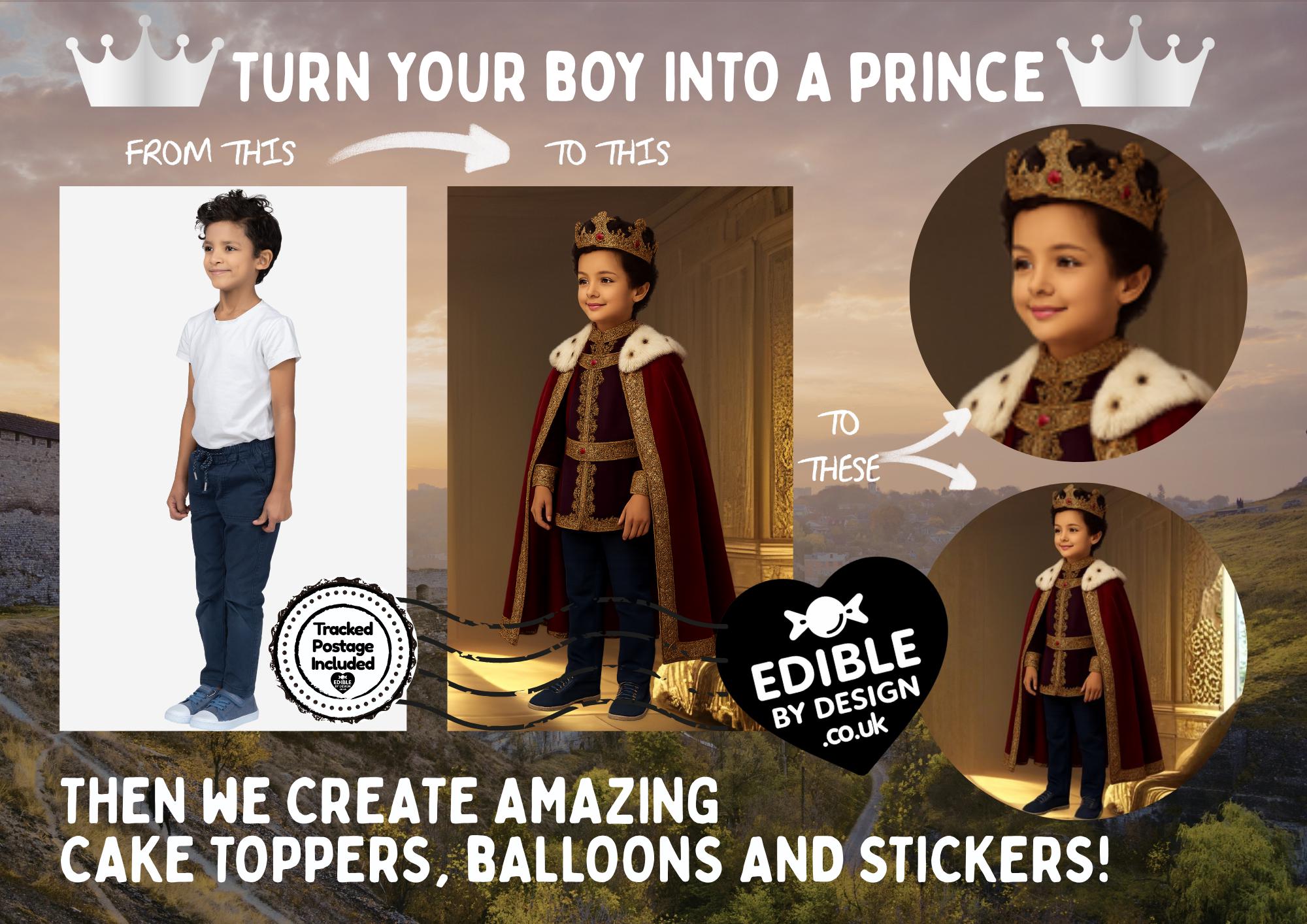 Photo Transformation Boy to Prince Cake Toppers. Personalised with your photo transformed into an Prince, name and age. Send your photo via message to the seller.