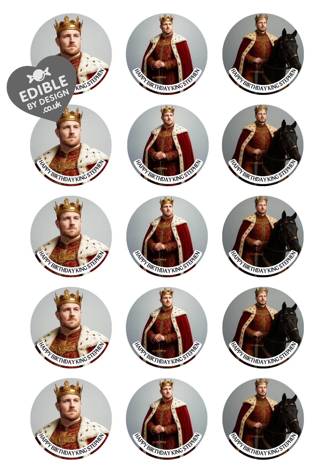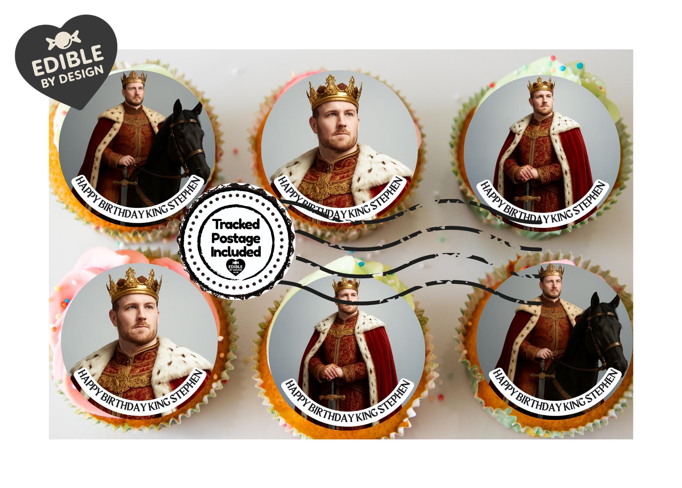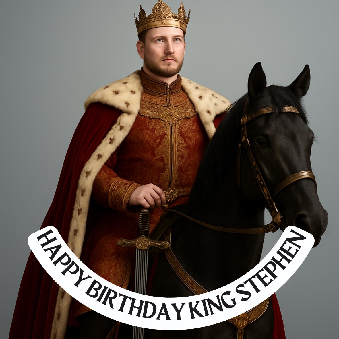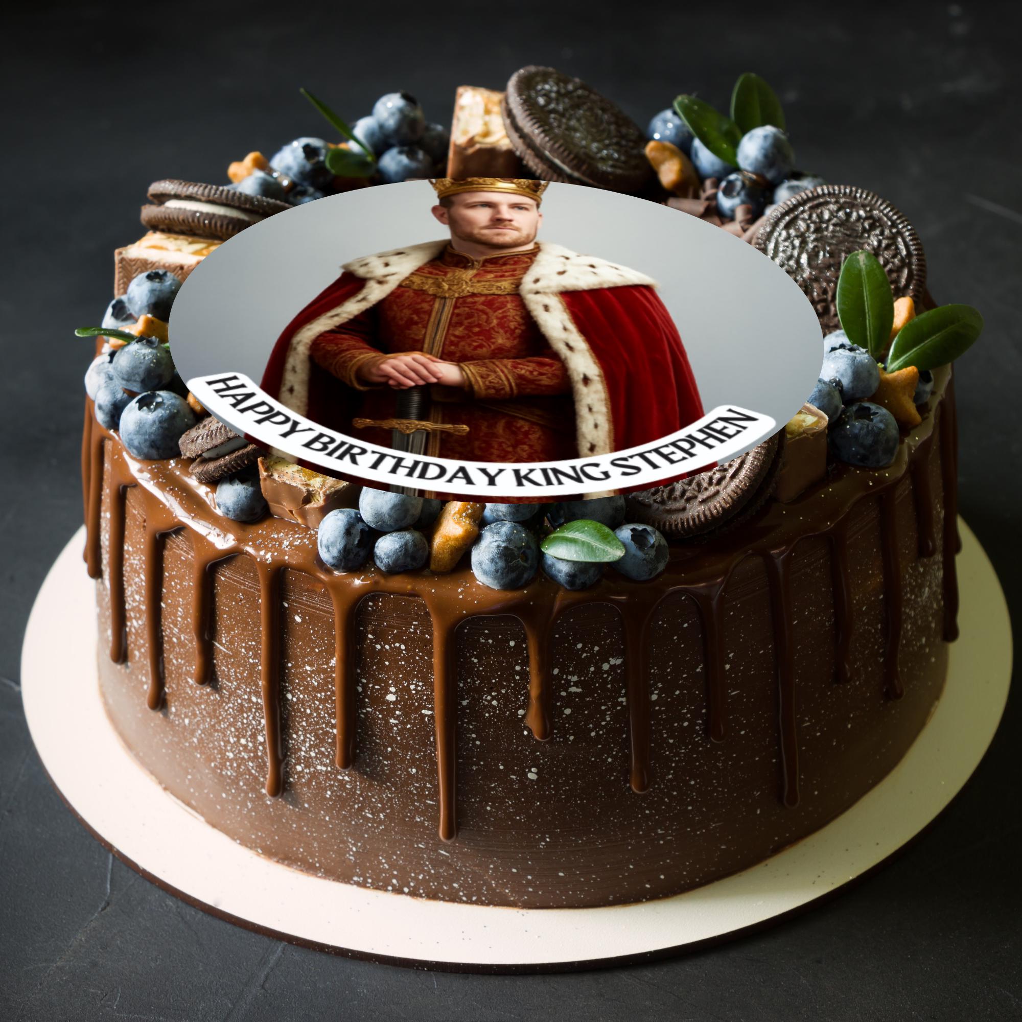 Photo Transformation Man to King Cake Toppers. Personalised with your photo transformed into an King, name and age. Send your photo via message to the seller.
