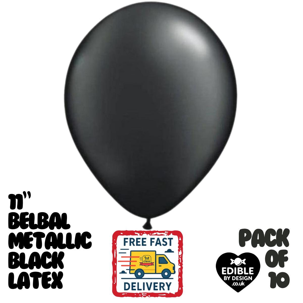 Pack of 10 Metallic Black Latex Balloon from Belbal.