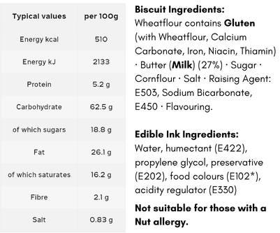 Biscuits are prepared and printed in a 5 star Food Hygiene rated premises in Shropshire UK.